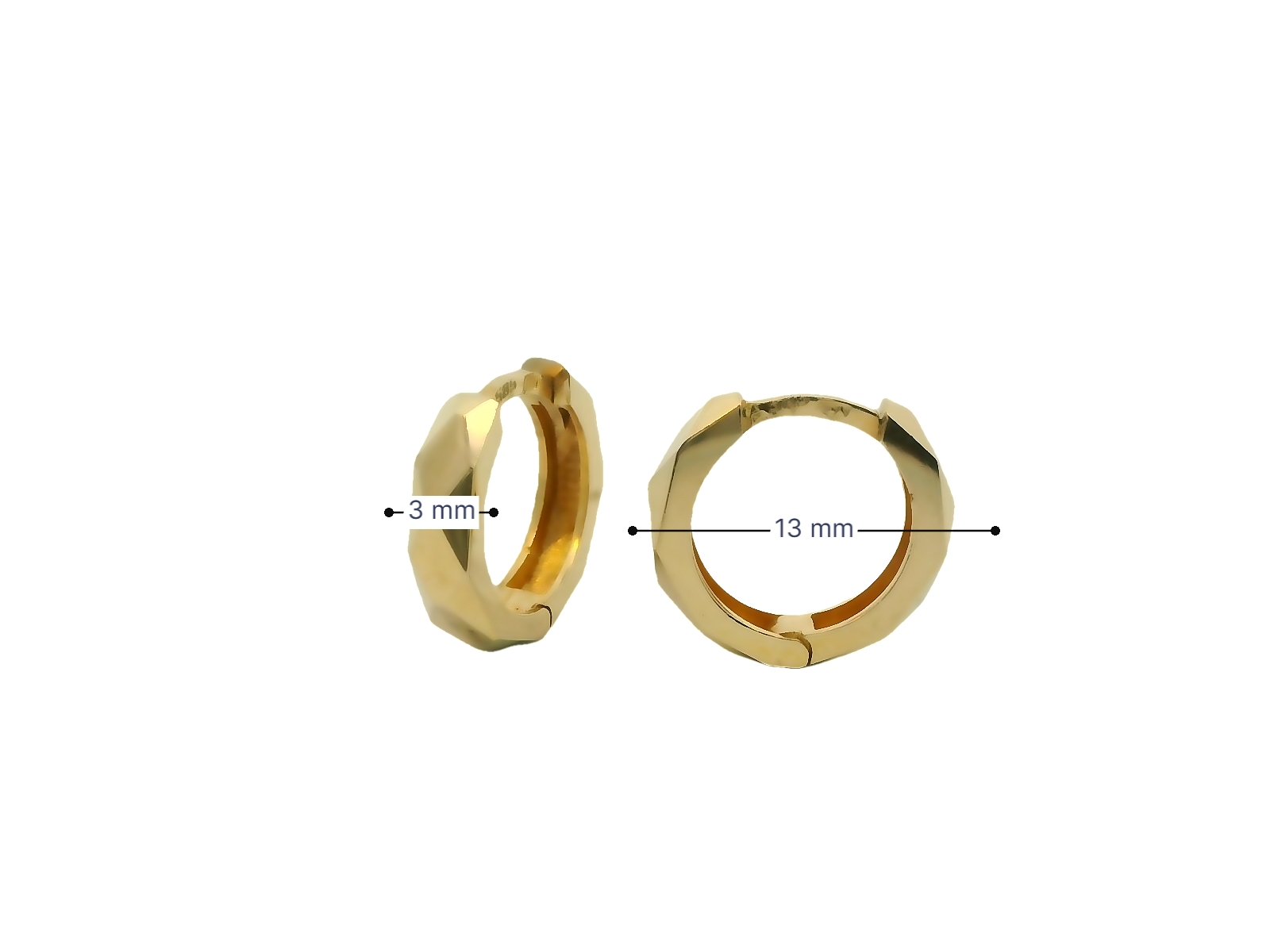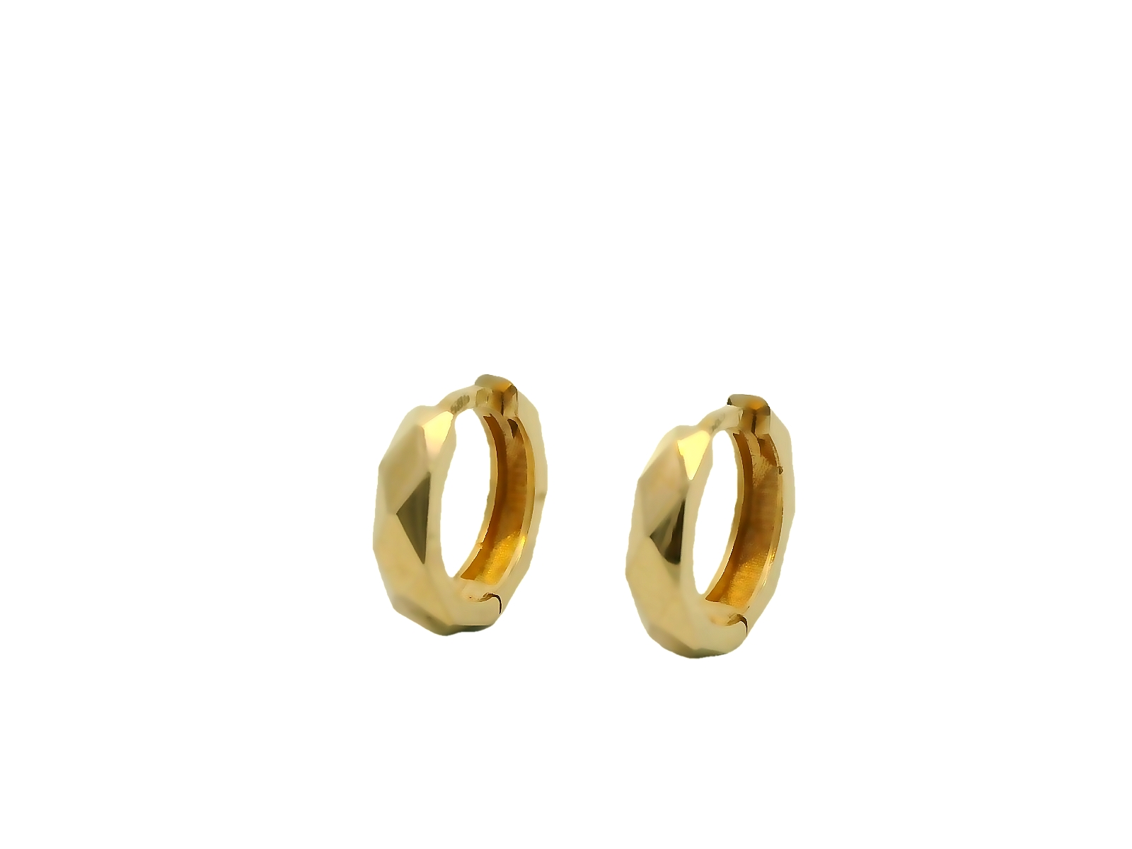 Deze prachtige 14 karaat geelgouden (2. gr ) huggie-oorringen hebben een elegant en tijdloos ontwerp. De oorringen kenmerken zich door hun unieke facetgeslepen afwerking, waardoor ze een speelse schittering krijgen bij elke beweging.