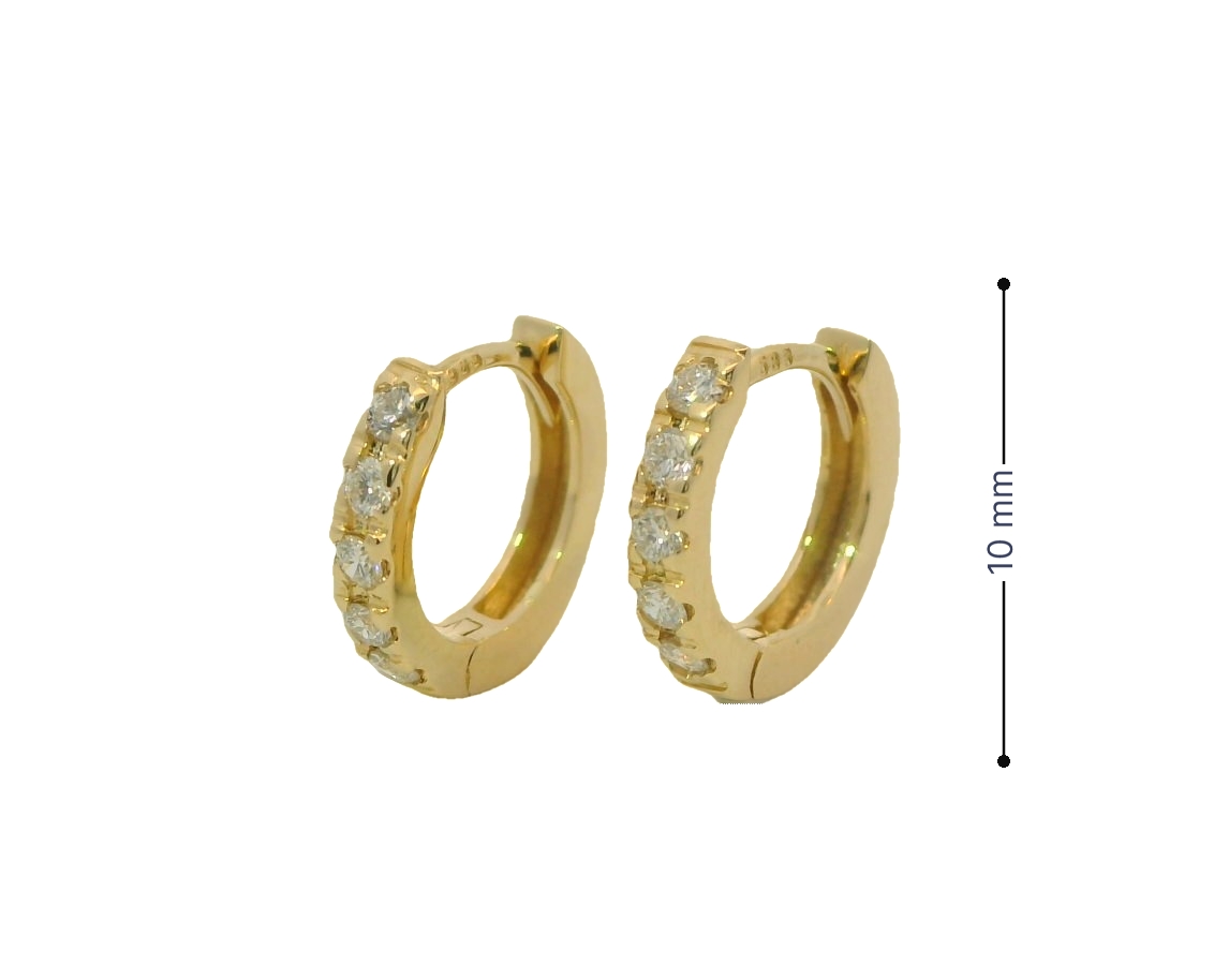 Deze prachtige geelgouden oorringen van 14 karaat zijn verfraaid met schitterende diamanten. De oorringen stralen luxe en elegantie uit en zijn perfect om elke outfit compleet te maken. Draag ze overdag voor een subtiele glans of combineer ze 's avonds met een chique jurk voor een glamoureuze look. Deze oorringen zijn een tijdloze toevoeging aan uw sieradencollectie.