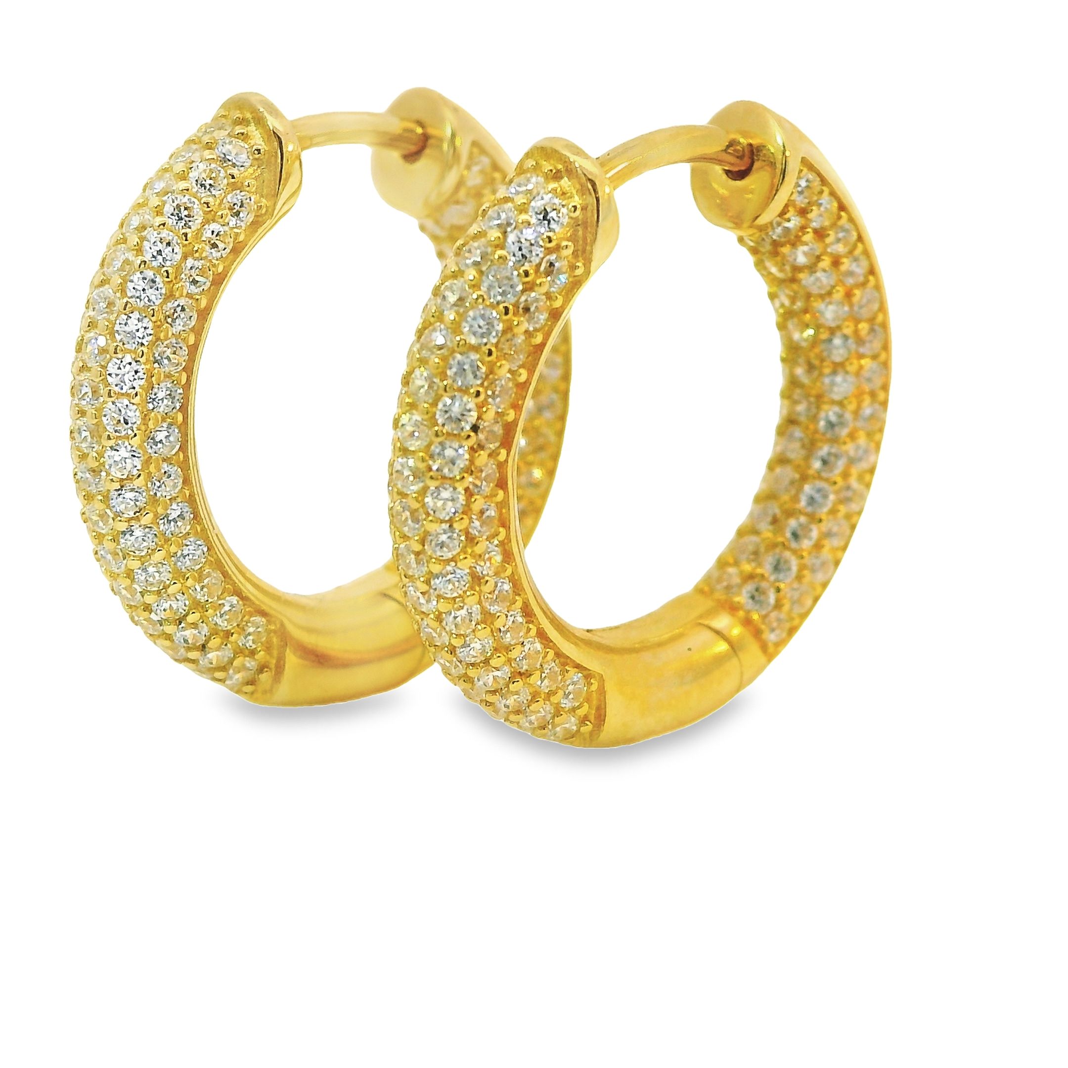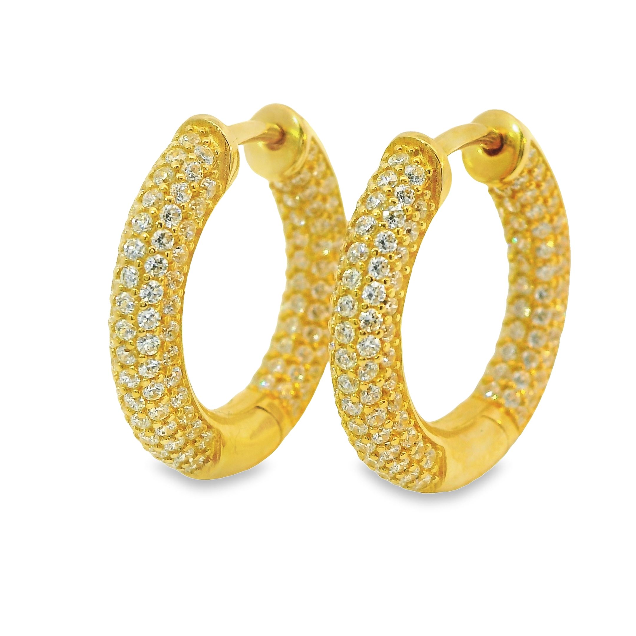 Schitterend in zijn eenvoud, dit prachtige creolen ontwerp straalt met de warmte van geelgoud en de sprankeling van zirkonia. Elk detail is doordrenkt met elegantie, waardoor het een tijdloos stuk is dat elke gelegenheid verheft.