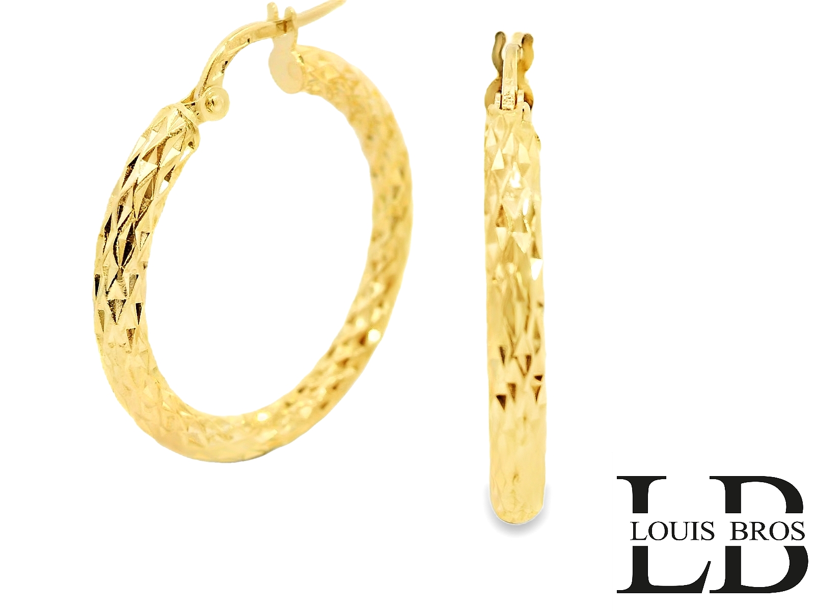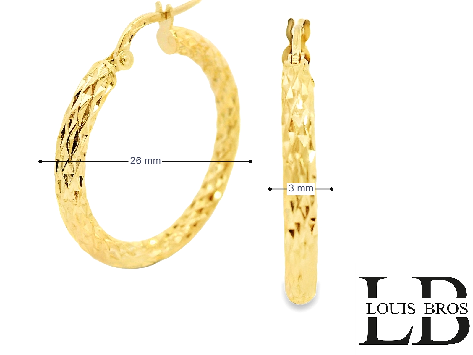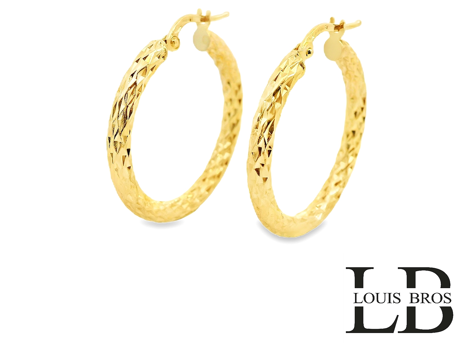 Deze schitterende 18-karaats geelgouden oorringen (2.51 gr) stralen pure elegantie uit. De klassieke ronde vorm wordt verrijkt met een verfijnd geslepen patroon, waardoor het oppervlak een prachtige schittering krijgt bij elke beweging. De oorringen hebben een stevige scharniersluiting, wat zorgt voor een comfortabele en veilige pasvorm. Het tijdloze ontwerp maakt deze oorringen geschikt voor zowel dagelijks gebruik als speciale gelegenheden. Een must-have voor iedereen die houdt van stijlvolle, luxueuze sieraden met een vleugje glamour.