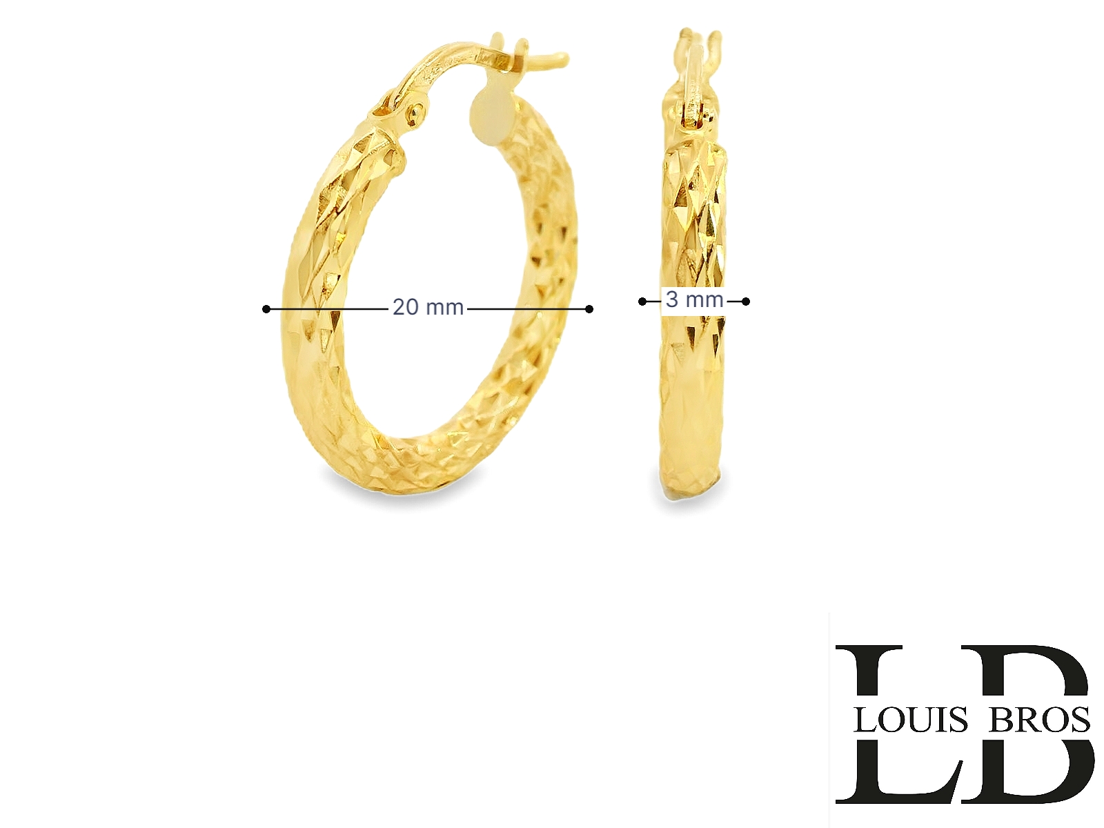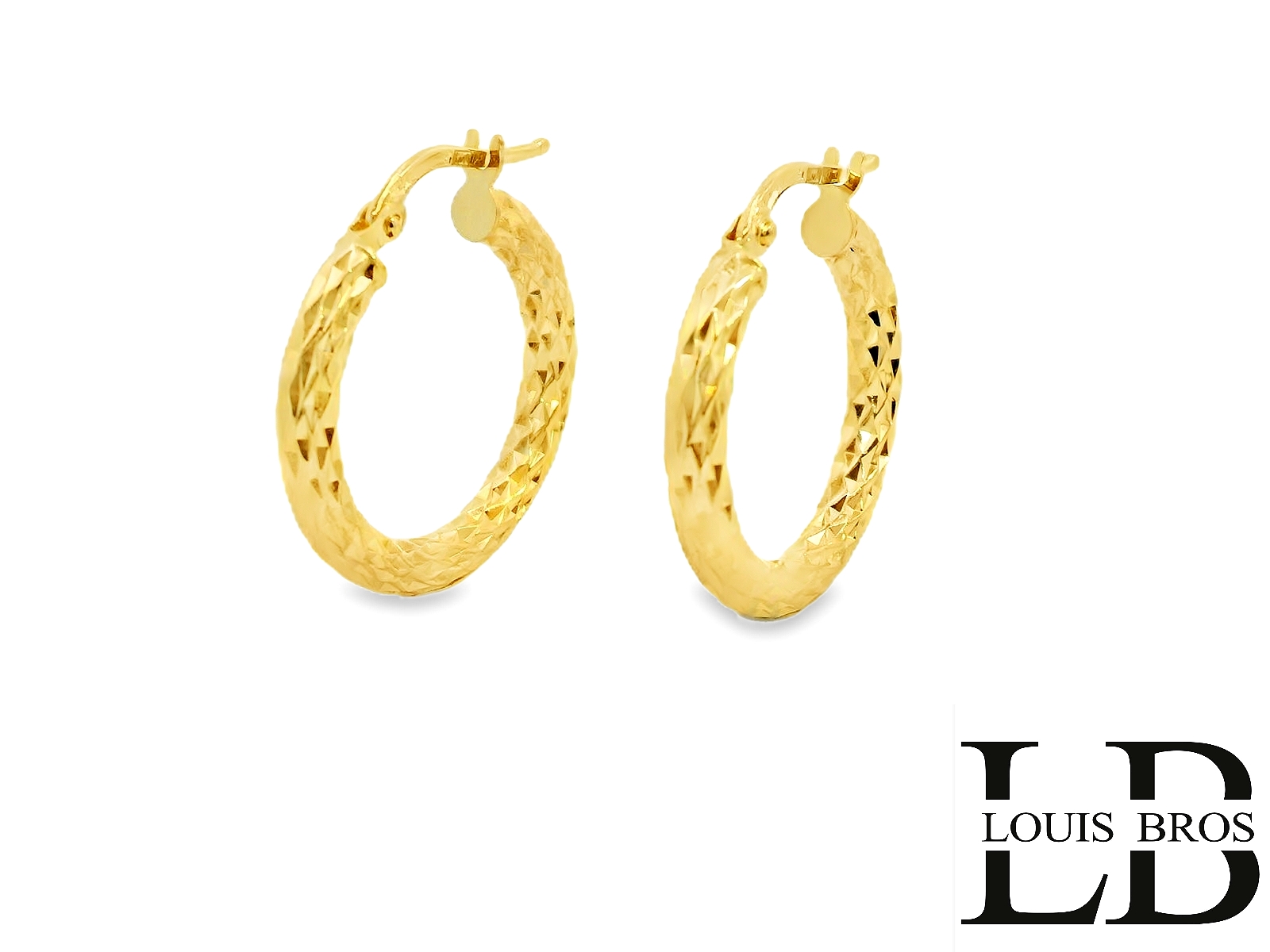 Deze schitterende 18-karaats geelgouden oorringen (2.05 gr) stralen pure elegantie uit. De klassieke ronde vorm wordt verrijkt met een verfijnd geslepen patroon, waardoor het oppervlak een prachtige schittering krijgt bij elke beweging. De oorringen hebben een stevige scharniersluiting, wat zorgt voor een comfortabele en veilige pasvorm. Het tijdloze ontwerp maakt deze oorringen geschikt voor zowel dagelijks gebruik als speciale gelegenheden. Een must-have voor iedereen die houdt van stijlvolle, luxueuze sieraden met een vleugje glamour.