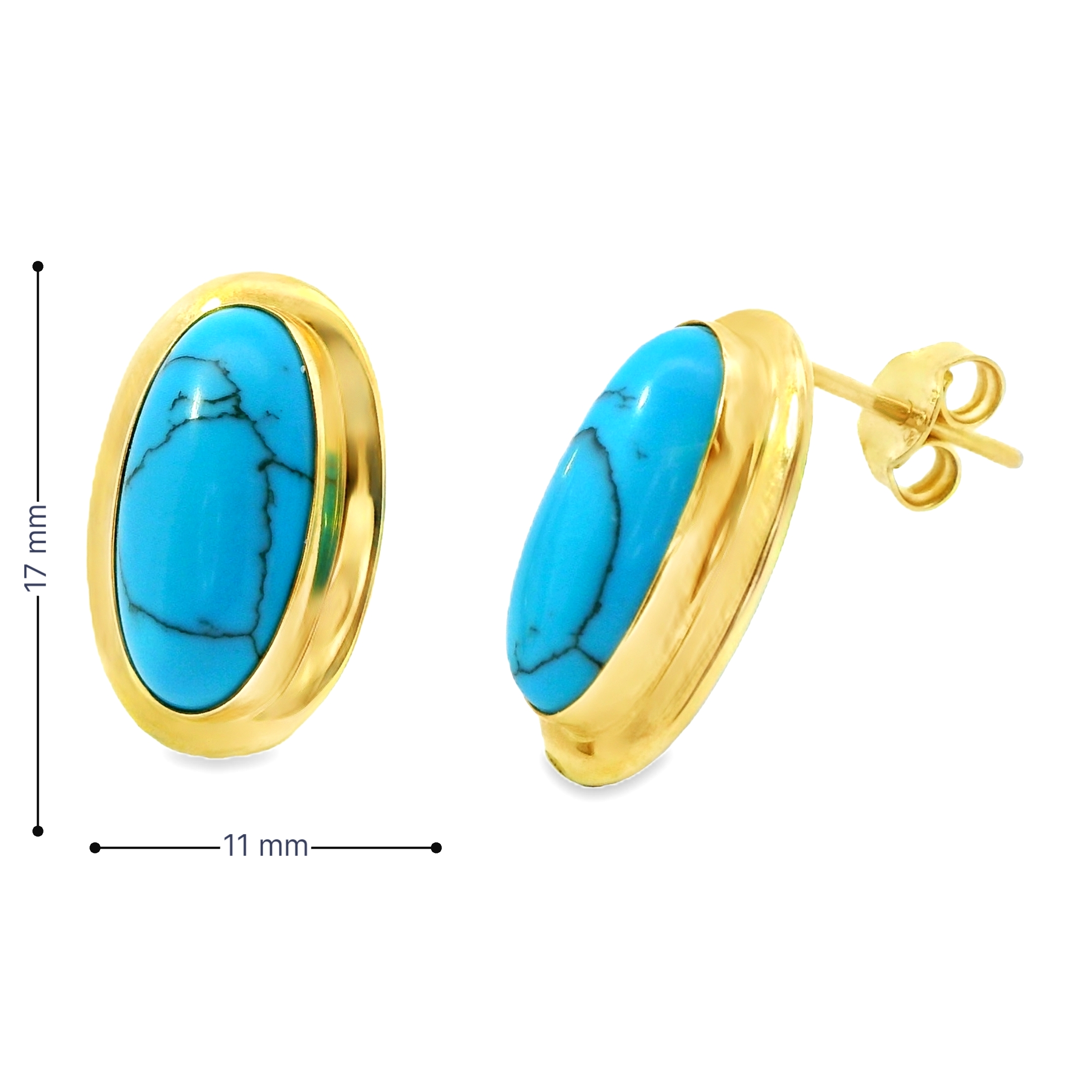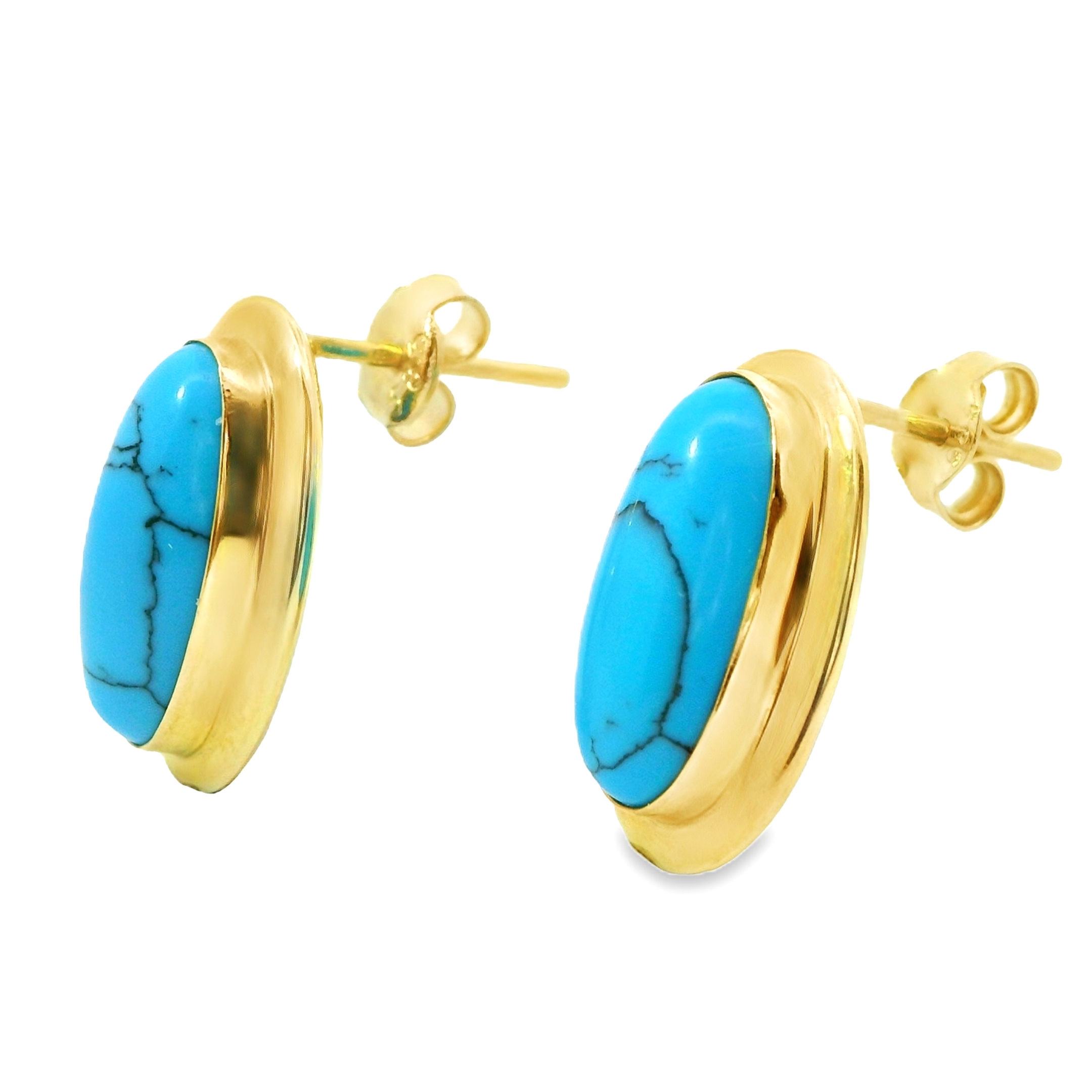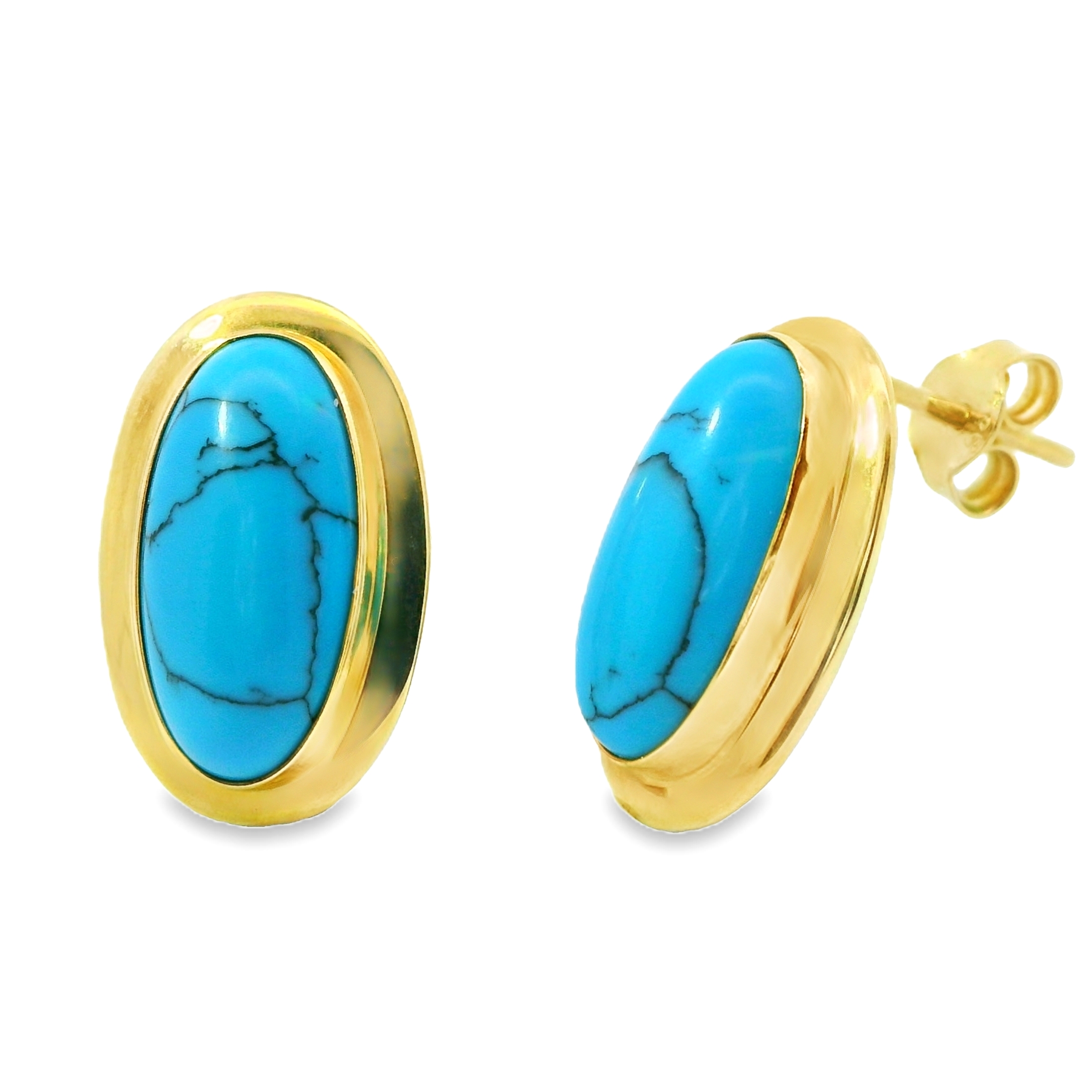 Deze prachtige oorstekers zijn voorzien van een ovale turquoise steen, die opvalt door zijn levendige blauwe kleur. De warme gloed van het geelgoud vormt een perfect contrast met de frisse tint van de turquoise, waardoor de oorstekers een elegante en opvallende uitstraling krijgen. Deze tijdloze oorbellen voegen een vleugje kleur en verfijning toe aan elke look, ideaal voor zowel dagelijks gebruik als speciale gelegenheden.