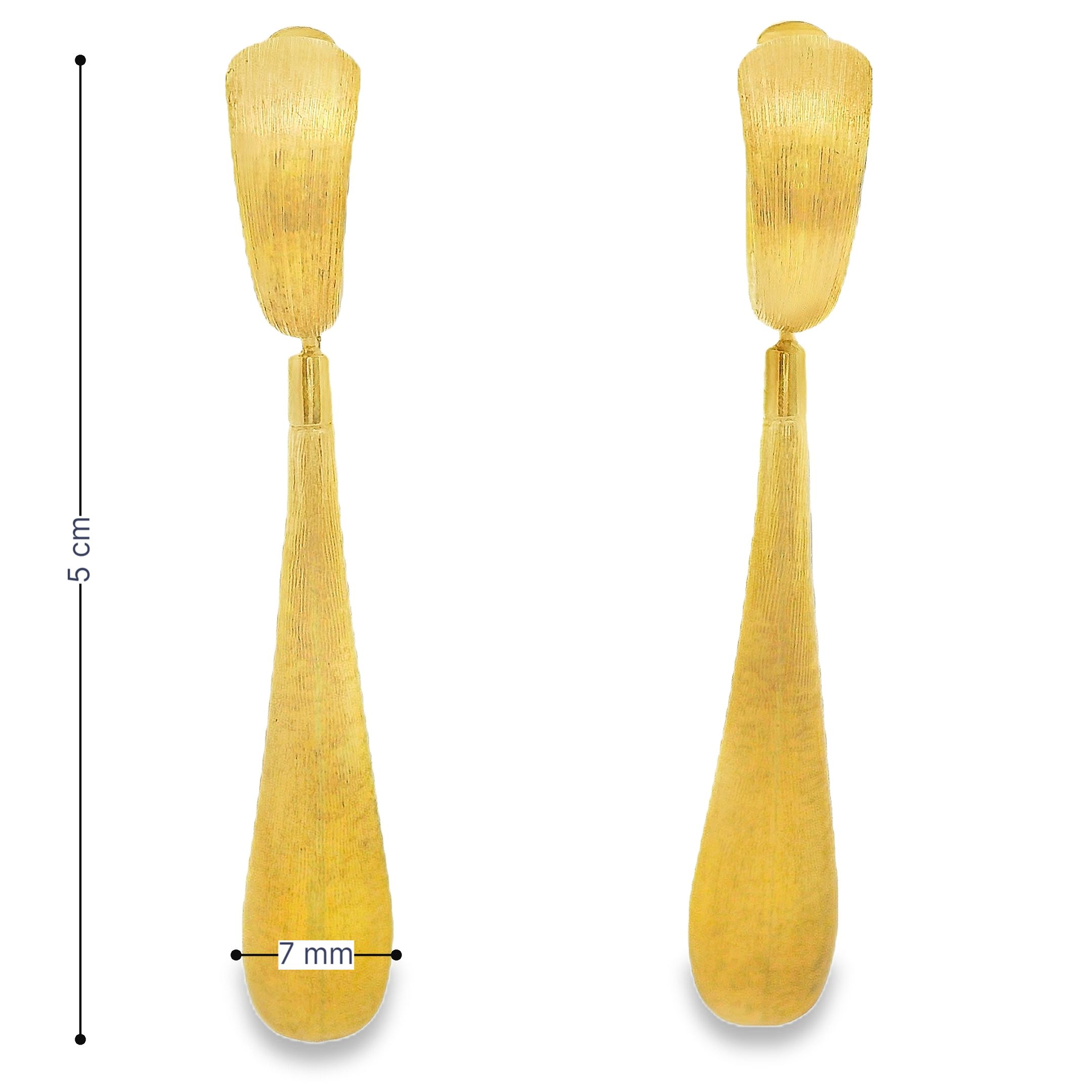 Deze oorsieraden van Louis Bros zijn vervaardigd uit 14 karaat geelgoud (10.63 gr.). De Oorsieraden hebben een lengte van 5 cm, en breedte van 7 mm. Deze verfijnde oorbellen combineren de tijdloze elegantie van geelgoud met een moderne, matte afwerking, waardoor ze een subtiel doch opvallend statement maken. Ideaal voor zowel dagelijks gebruik als speciale gelegenheden, voegen ze een vleugje verfijning en luxe toe aan elke outfit. De hoogwaardige 14 karaat goud garandeert niet alleen duurzaamheid, maar ook een blijvende glans, waardoor deze oorsieraden een waardevolle toevoeging zijn aan elke sieradencollectie.