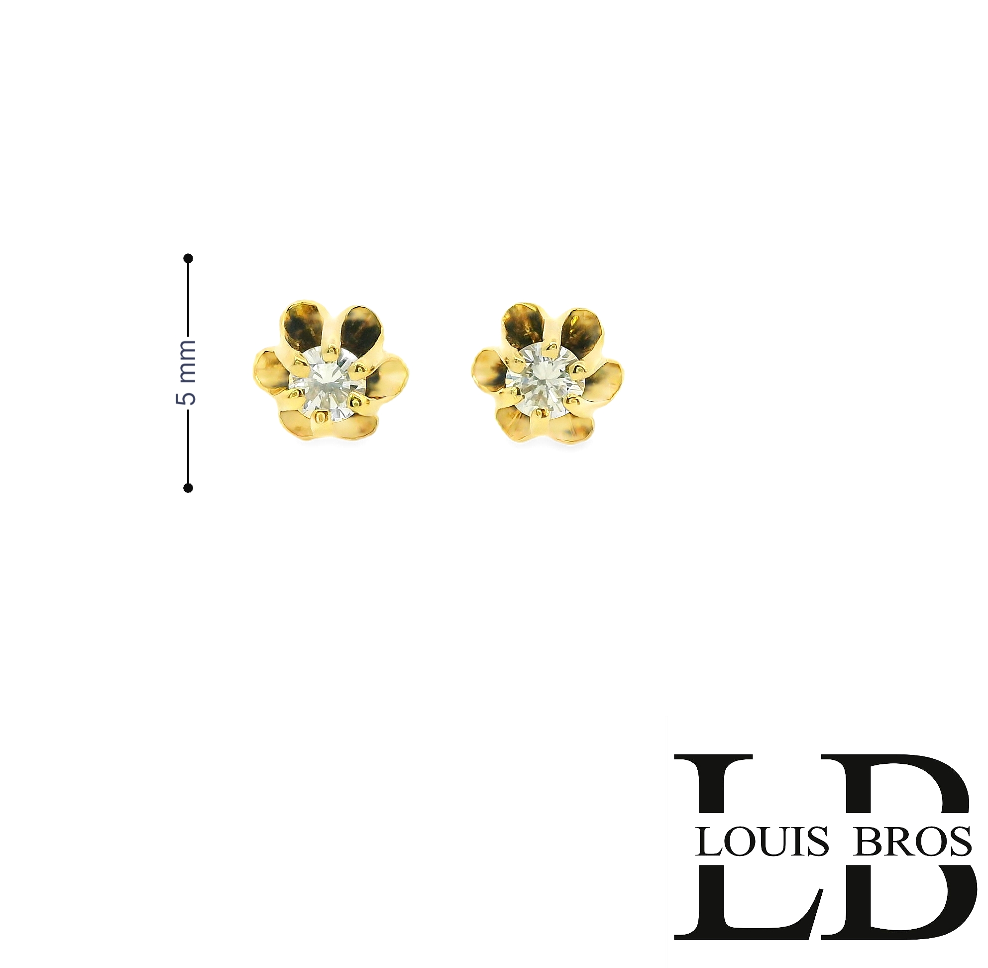 Deze prachtige 14-karaats geelgouden oorstekers (1.5 gr) stralen elegantie en verfijning uit. Elk stekertje heeft een schitterende diamant in een bloemvormige zetting, waardoor een subtiel en stijlvol ontwerp ontstaat. De briljant geslepen diamant wordt stevig vastgehouden door zes gouden blaadjes, wat zorgt voor een speelse en luxe uitstraling. Dankzij de stevige vlindersluiting blijven de oorbellen comfortabel en veilig op hun plaats. Een tijdloos sieraad dat perfect is voor dagelijks gebruik of speciale gelegenheden.