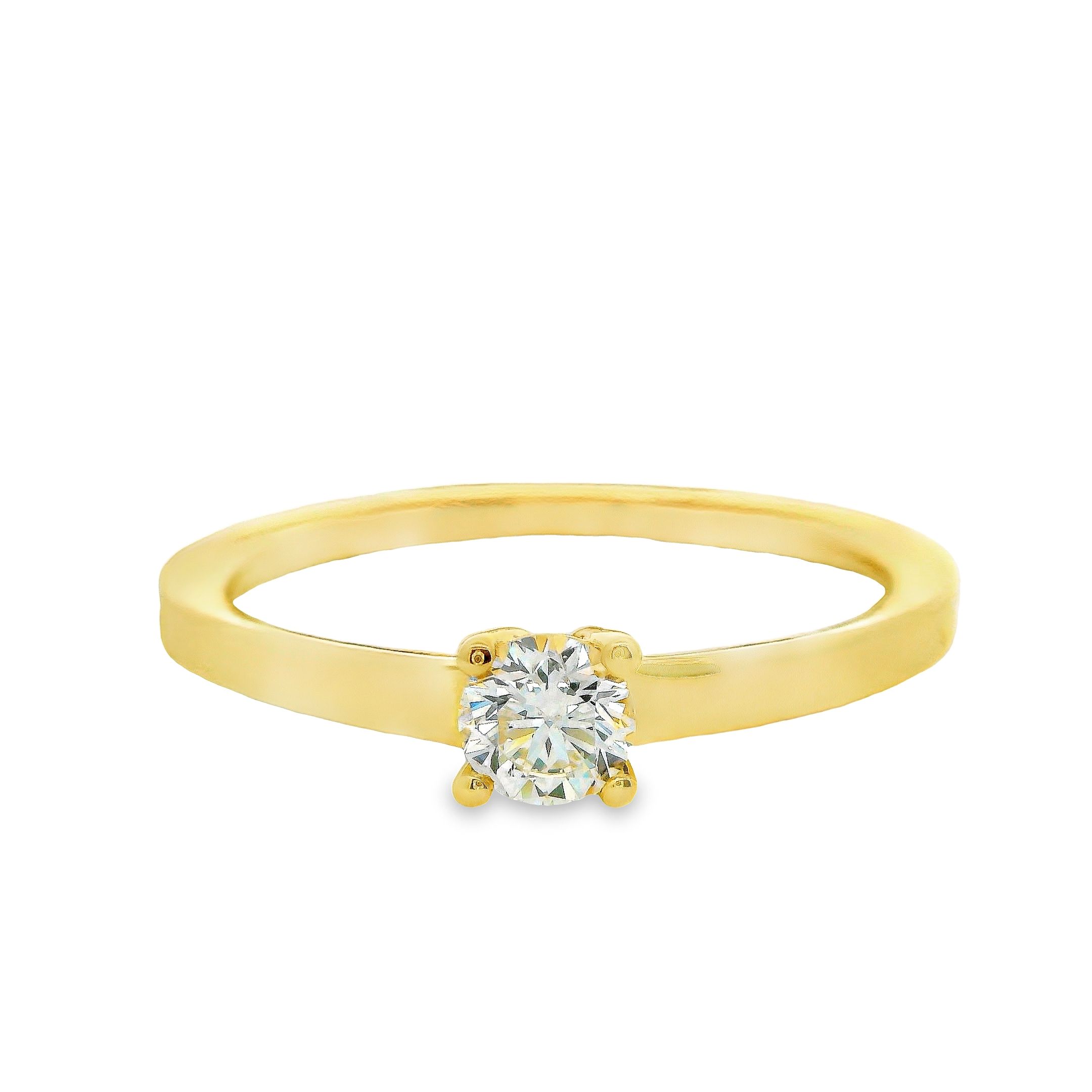 Deze prachtige solitair ring, vervaardigd uit stralend 14-karaats geelgoud, is een tijdloos meesterwerk. In het midden schittert een enkel, schitterend steentje, zorgvuldig geplaatst om maximale schittering en elegantie te bieden. De eenvoud van het solitaire ontwerp benadrukt de pure schoonheid van het steentje, waardoor het de aandacht trekt en bewondering oproept. Deze geelgouden ring is een perfect symbool van verfijnde smaak en blijvende liefde, ideaal voor bijzondere momenten en als een kostbaar geschenk voor een dierbare.