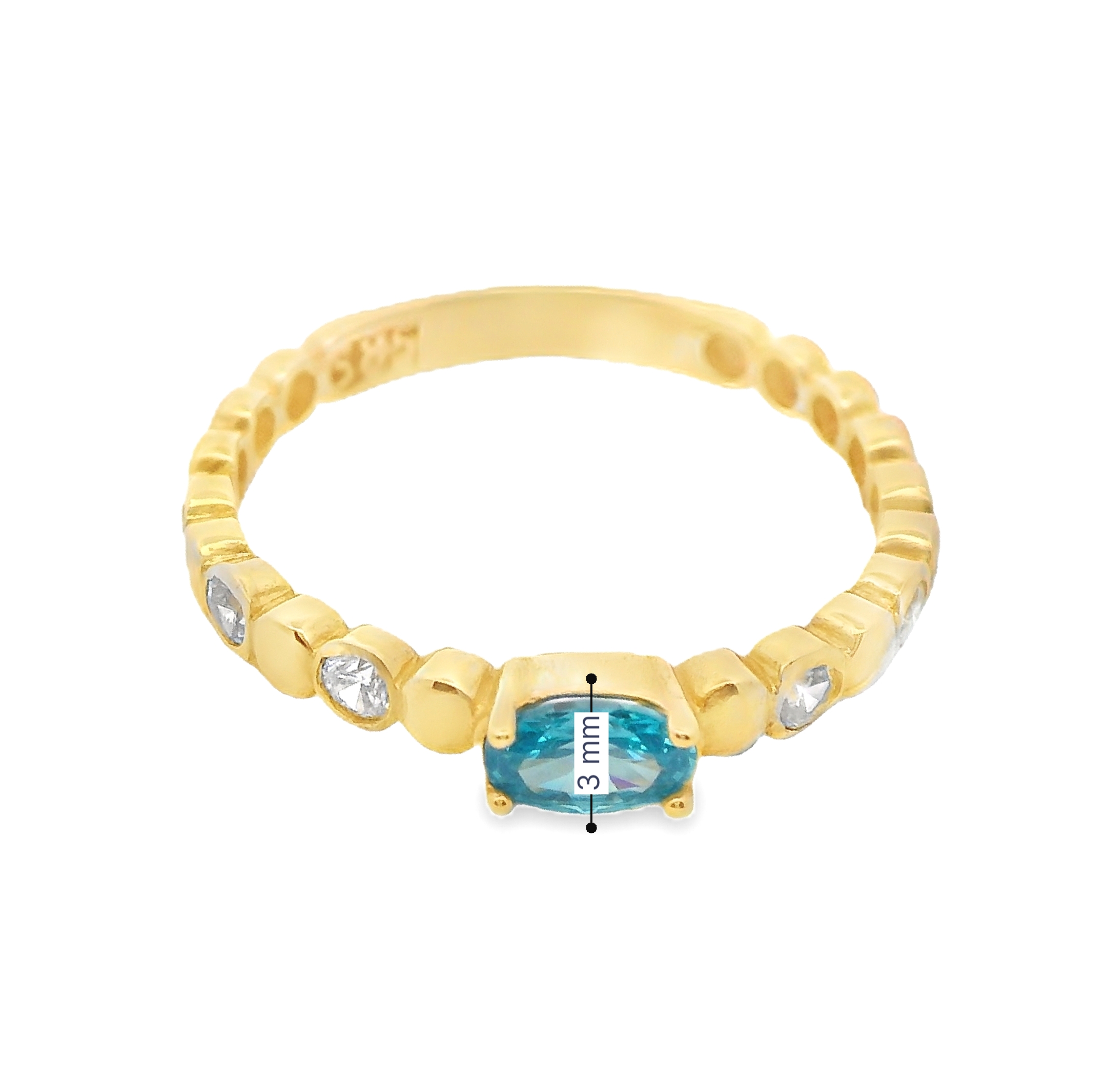 Deze ring met gekleurde zirkonia's is een levendig en sprankelend sieraad. De warme tint van het geelgoud vormt een prachtig contrast met de kleurrijke zirkonia's, die in verschillende tinten fonkelen en de ring een speelse en unieke uitstraling geven. Dit sieraad is perfect voor wie houdt van kleur en elegantie, en het kan zowel bij speciale gelegenheden als dagelijks gedragen worden. Met deze ring voeg je een vrolijke en stijlvolle touch toe aan elke outfit.