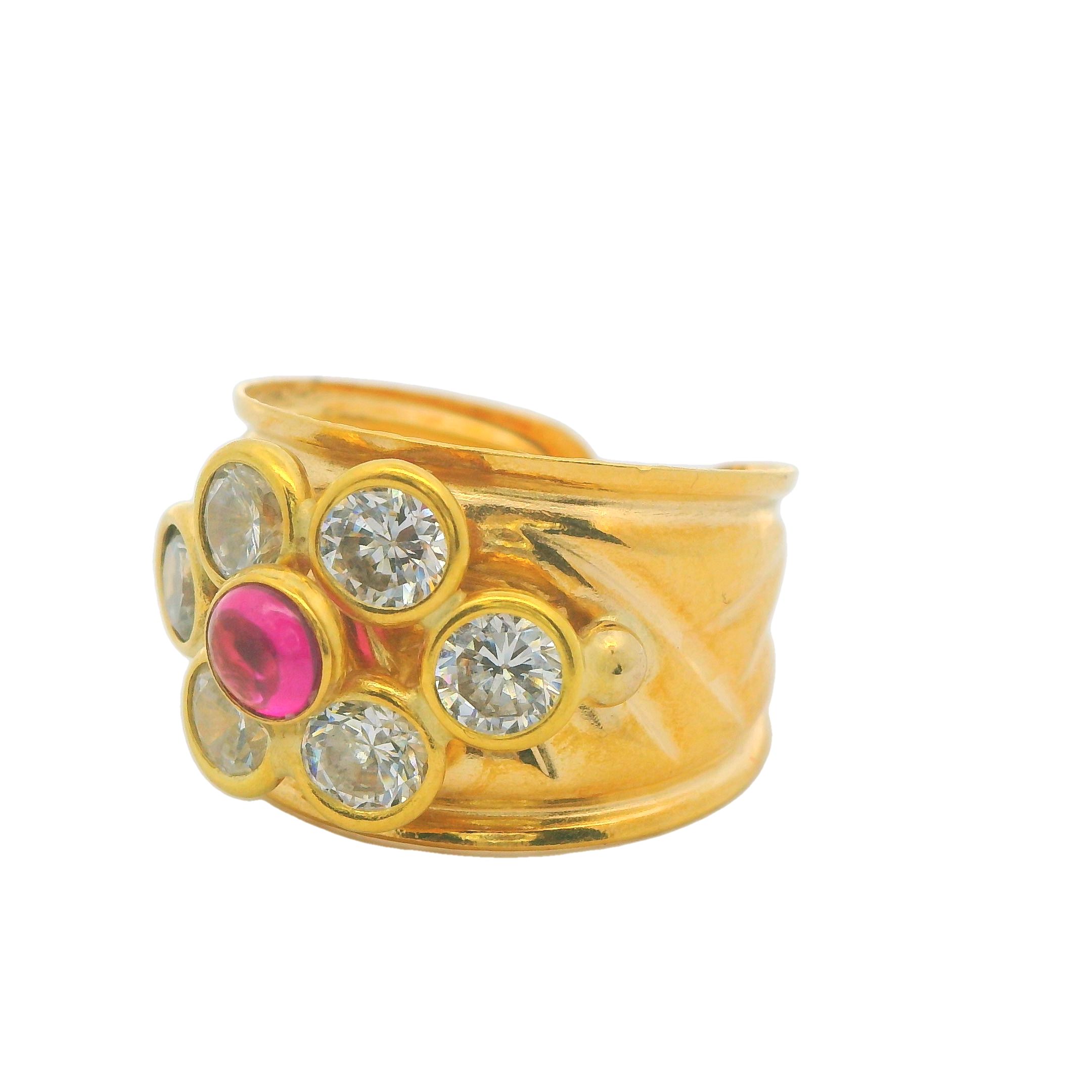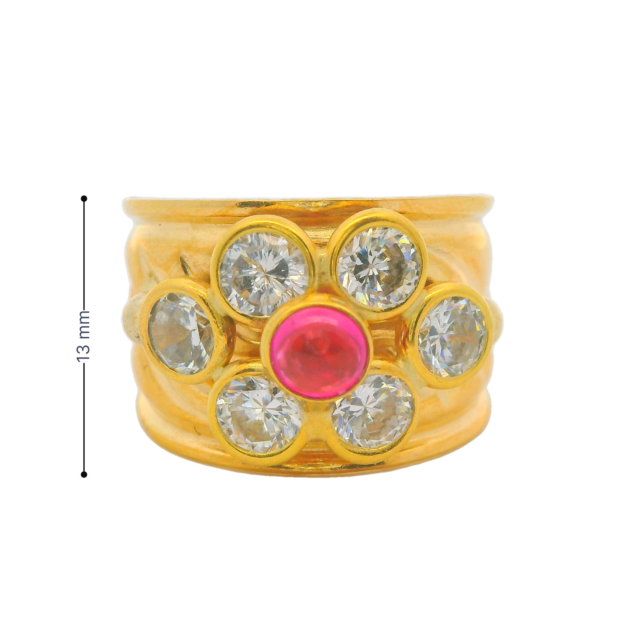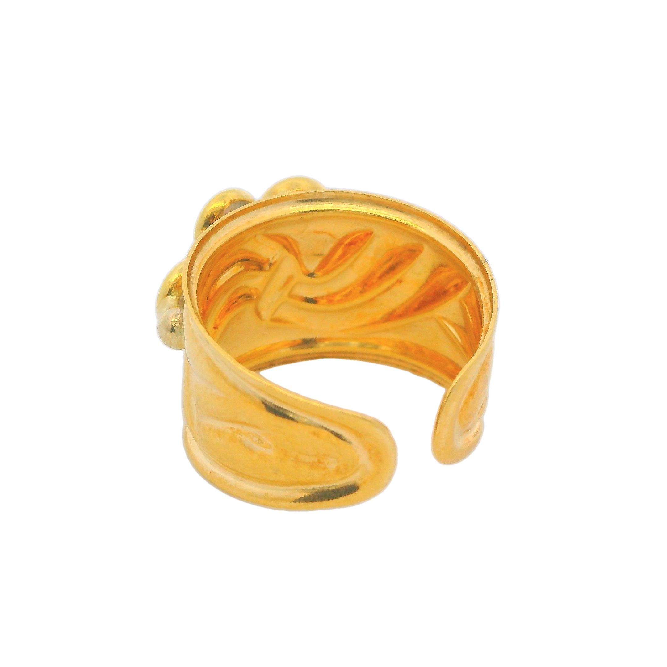 Deze betoverende 14 karaat geelgouden ring (4.66 gr) straalt een vintage allure uit die doet denken aan vervlogen tijden. Het middelpunt van de ring is een schitterende zirkonia, die een verblindende glans geeft en de klassieke elegantie van het ontwerp benadrukt. De combinatie van hoogwaardig goud en de verfijnde afwerking maakt deze ring tot een tijdloos sieraad, perfect voor wie houdt van een stijlvolle en nostalgische look.