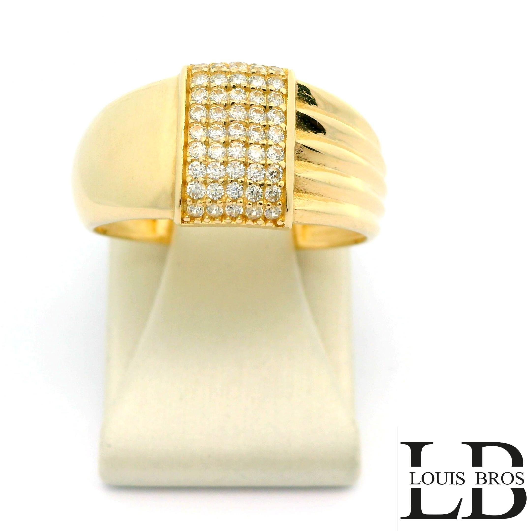 Deze 14 karaat geelgouden ring (2.70.gr) heeft een elegante en tijdloze uitstraling. De ring is bezet met schitterende zirkonia’s die het licht prachtig vangen en zorgen voor een verfijnde glans. Het warme geelgoud vormt een mooi geheel met de heldere stenen, waardoor de ring zowel stijlvol als draagbaar is. Een klassiek sieraad dat geschikt is voor dagelijks gebruik en voor bijzondere momenten.
