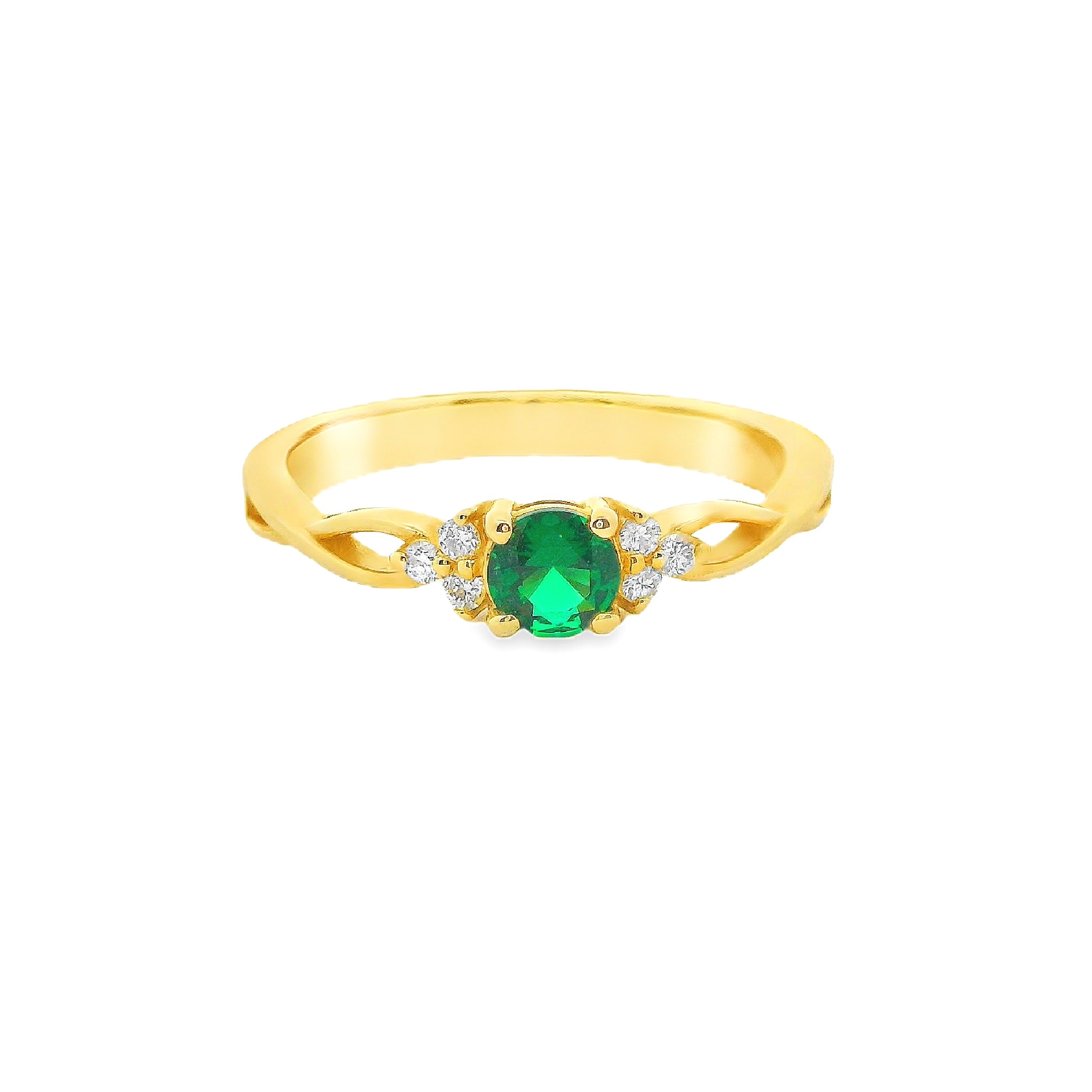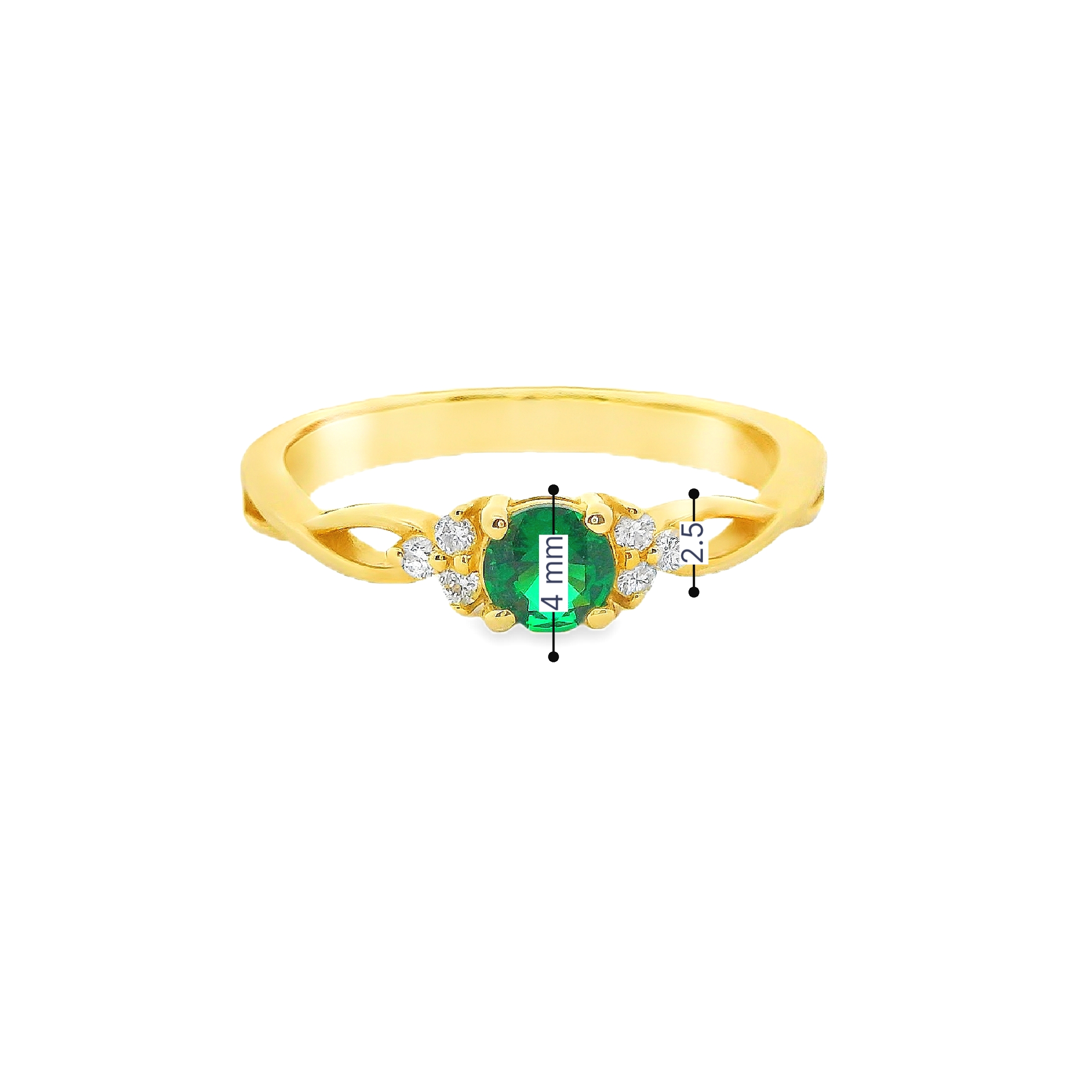 Deze ring van Louis Bros is vervaardigd uit 14 karaat geelgoud (2.26gr.) en is gezet met 6 briljant geslepen diamanten met een totaalgewicht van 0.12ct. En 1 smaragd 0.25ct. De ring heeft een diameter van 4 mm en een dikte van 2 mm.