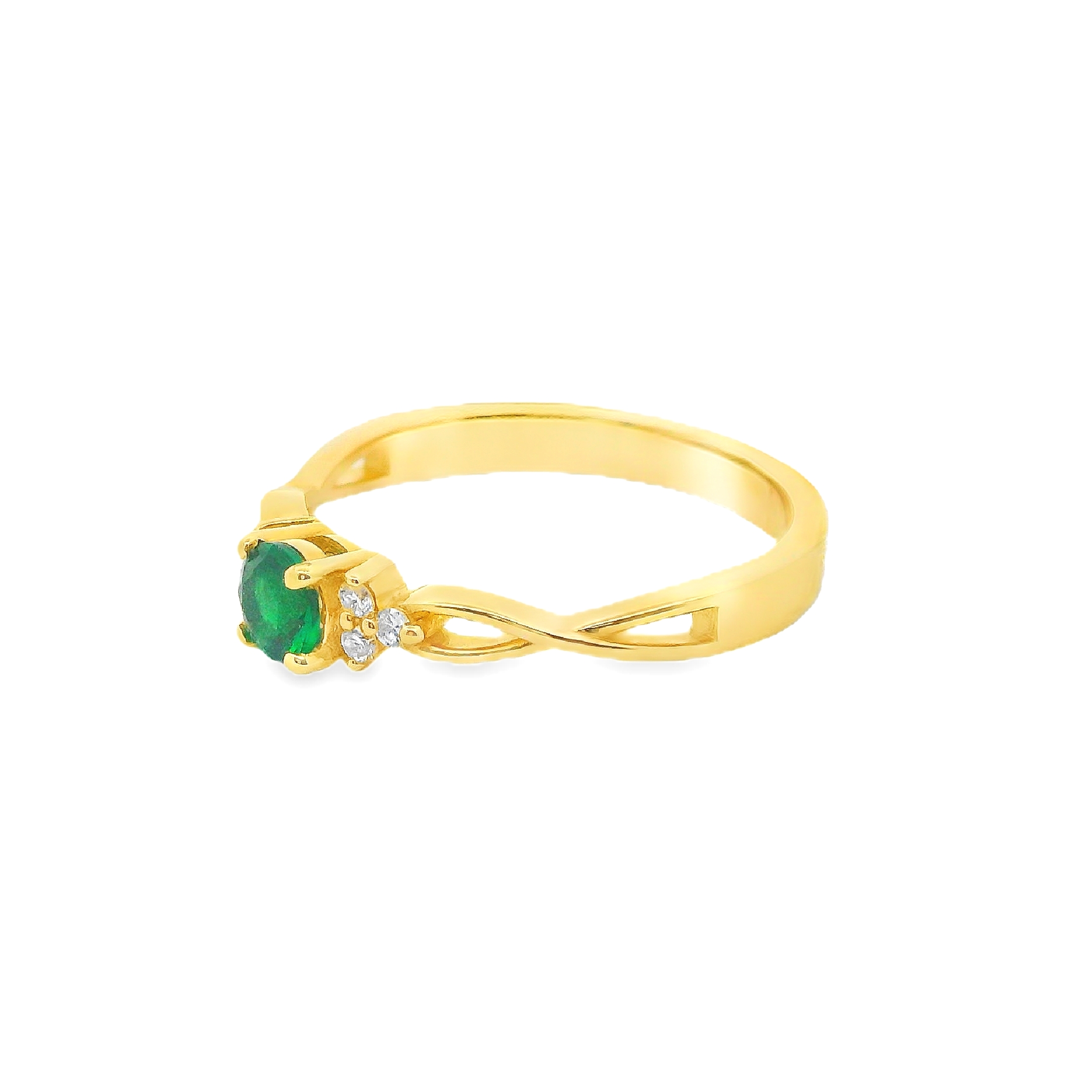 Deze ring met een smaragd en diamanten aan de zijkanten is een prachtig sieraad met een verfijnd design. Het warme geelgoud vormt de perfecte basis voor de intens groene smaragd die centraal in de ring schittert. Aan weerszijden van de smaragd zijn fonkelende diamanten geplaatst, die de ring een extra vleugje luxe en elegantie geven. Het verfijnde design van de ring maakt het tot een uniek en opvallend juweel. Deze combinatie van geelgoud, smaragd en diamant zorgt voor een tijdloze schoonheid, ideaal voor speciale gelegenheden of als een bijzonder cadeau. Een geelgouden ring met smaragd en diamanten is een sieraad dat klasse en stijl uitstraalt.