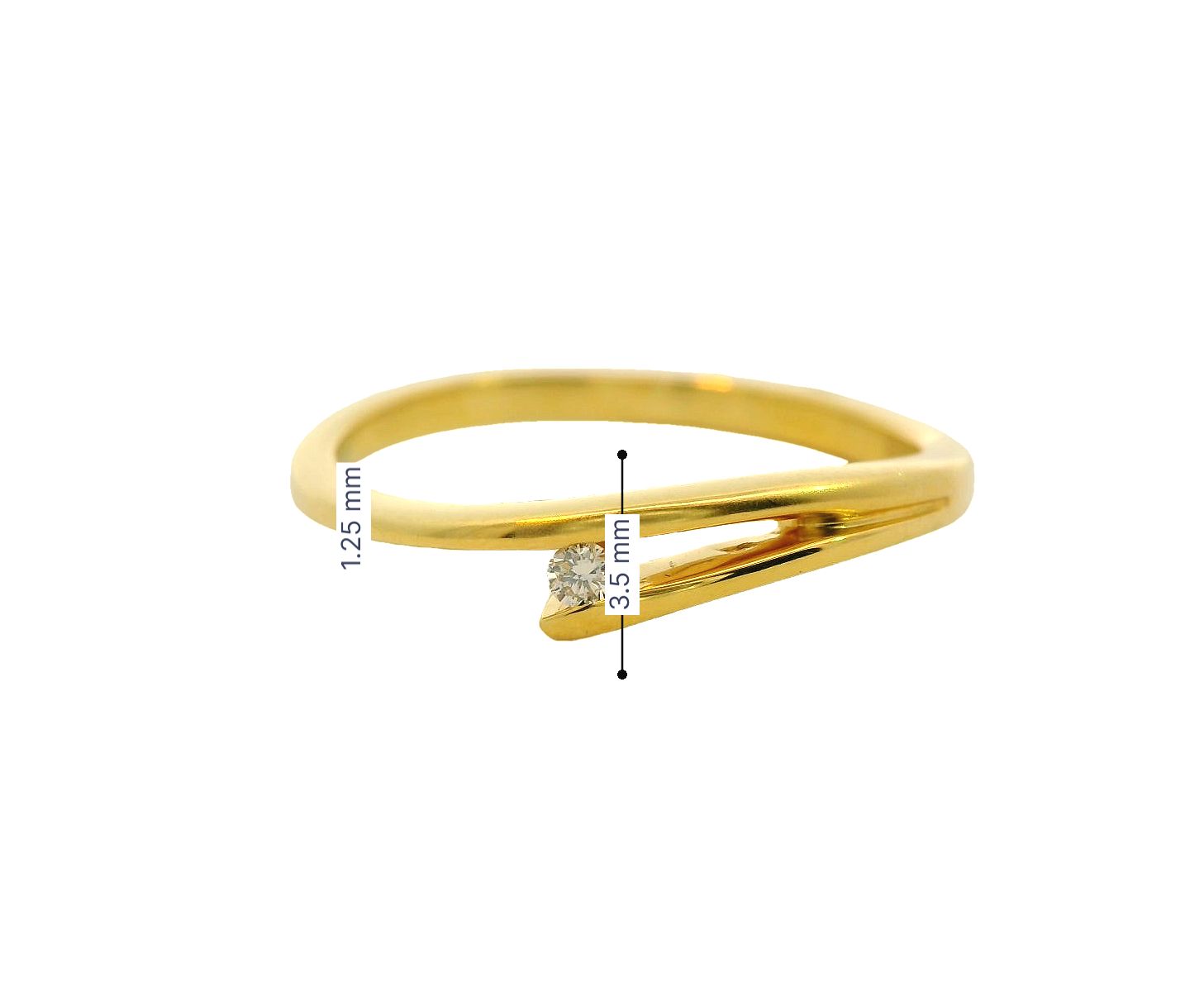 Deze geelgouden ring van 18 karaat met een diamant van 0,03 karaat heeft een simpel design dat perfect past bij elke outfit. De ring kan zowel solo gedragen worden voor een minimalistische look, als gestapeld met andere ringen voor een chique uitstraling. Voeg dit tijdloze stuk toe aan je sieradencollectie voor een vleugje elegantie en stijl.