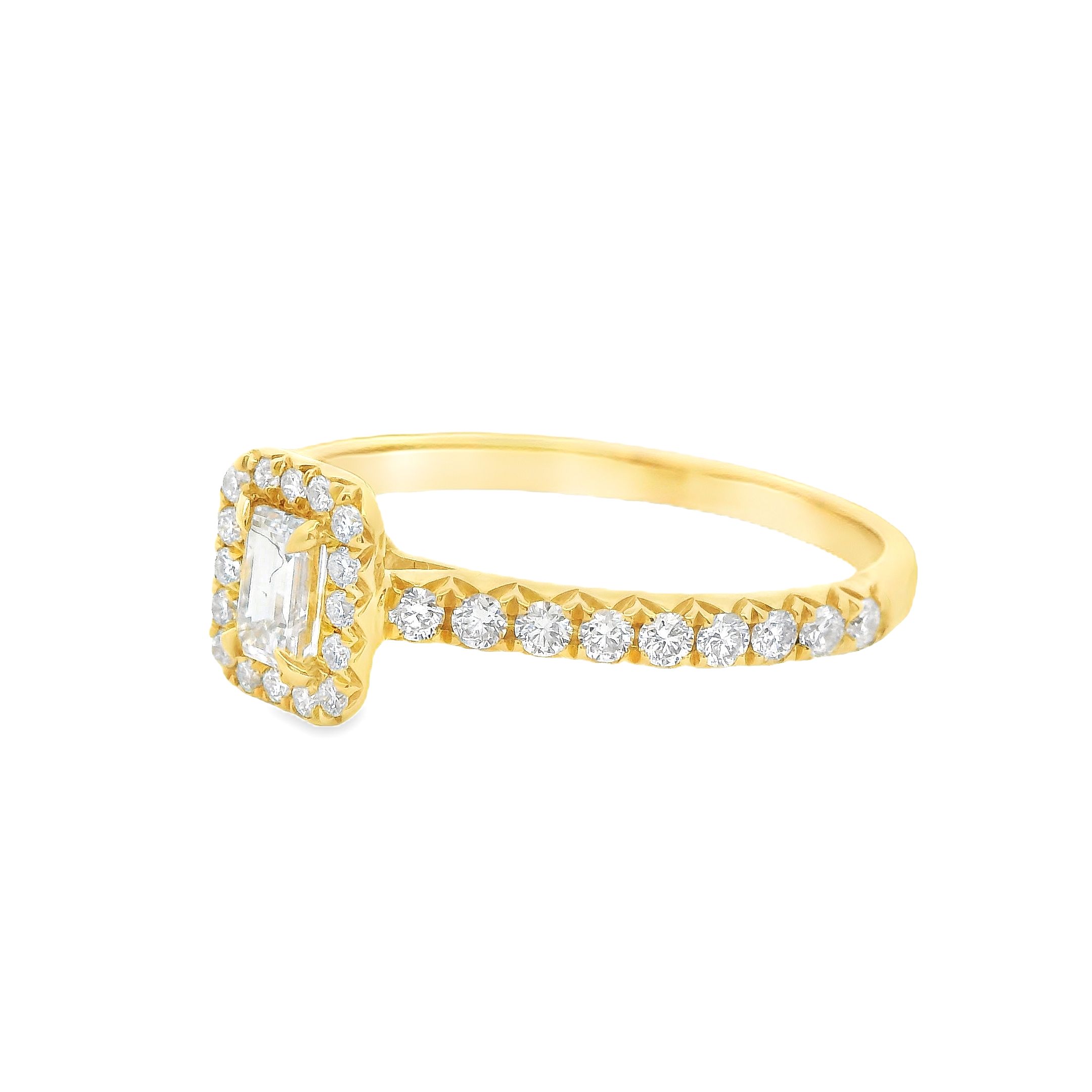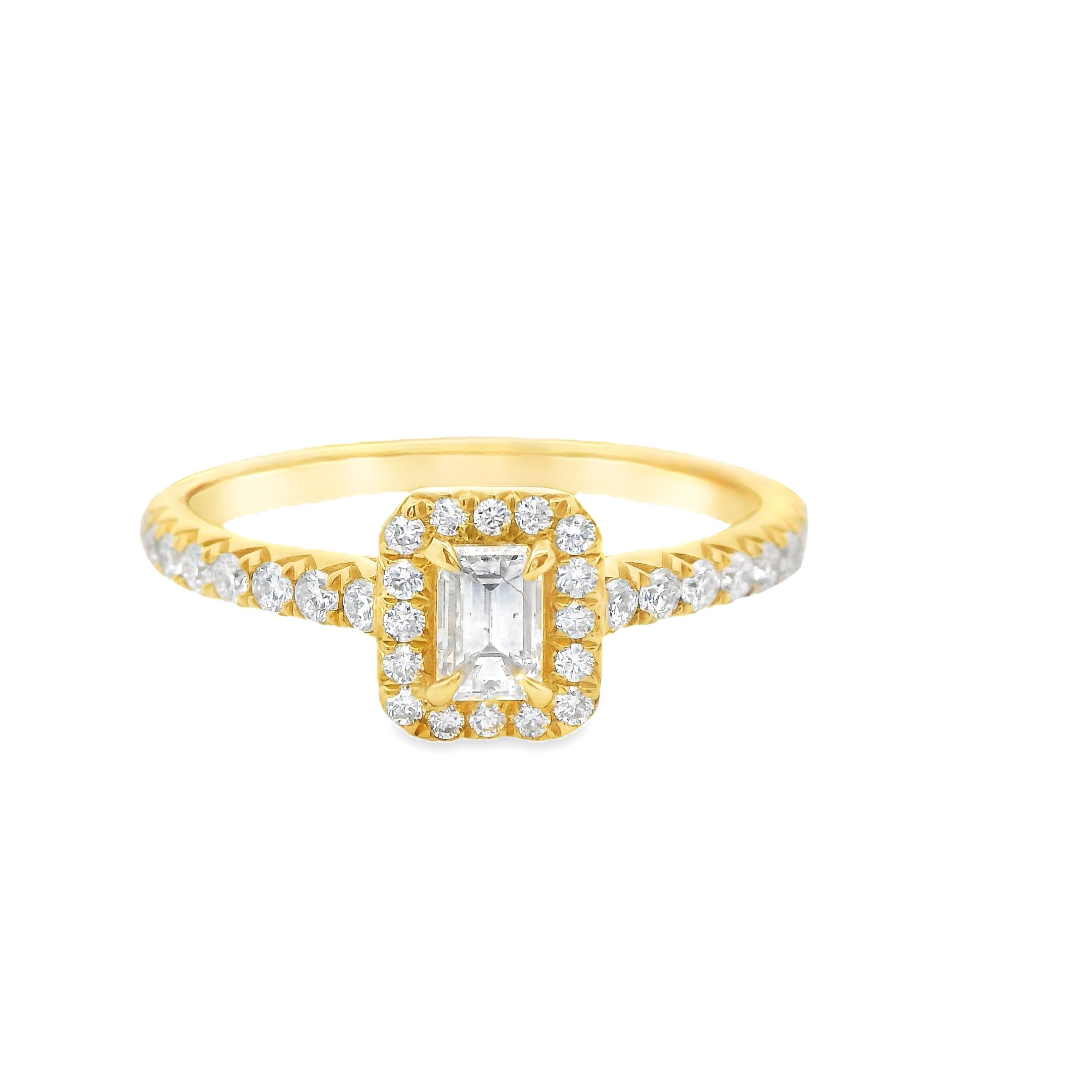 Deze prachtige ring van Louis Bros is vervaardigd uit 18 karaat  geelgoud (2.33 gr) en is gezet met 1 emerald geslepen diamanten met een totaalgewicht van 0.26crt. En 34 briljant met een totaal gewicht 0.33ct. De ring heeft een diameter van 7x6mm, minimale breedte van de ring is 2mm en. Deze ring straalt echt luxe uit! Het glanzende geelgoud in combinatie met de sprankelende baguette en briljant geeft een schitterend en verfijnd effect. Het is de perfecte ring voor een speciale gelegenheid of om jezelf te verwennen. Met deze ring om je vinger zul je zeker stralen!