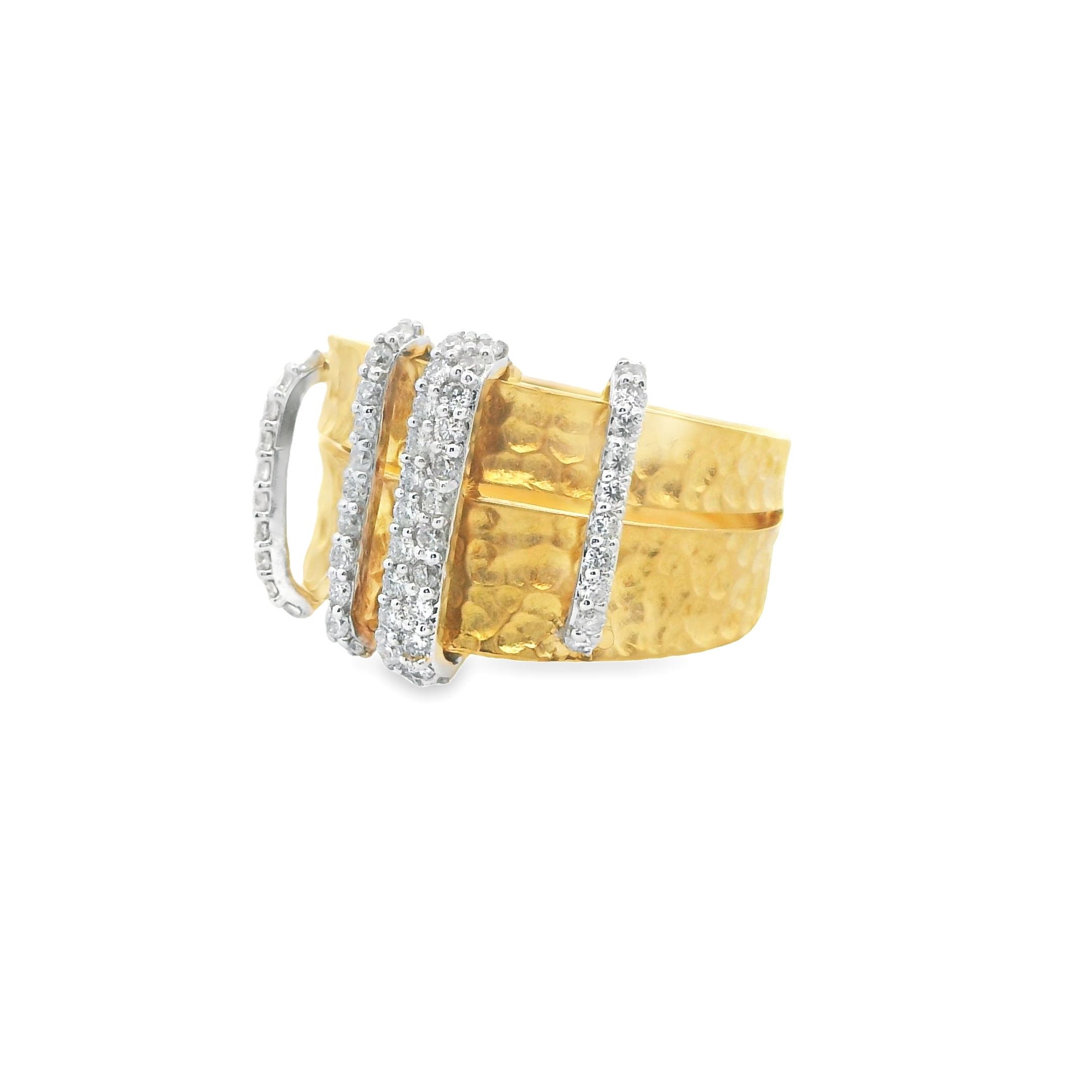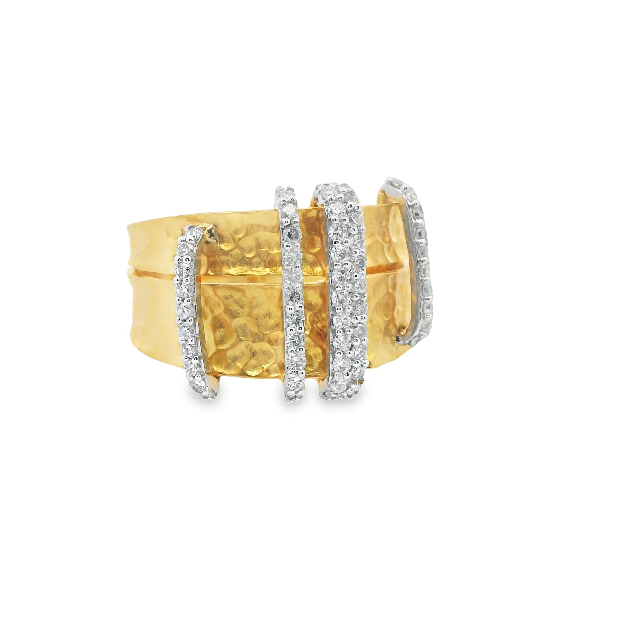 Deze exclusieve ring van Louis Bros is vervaardigd uit 18 karaat bicolor (6.93 gr.) en is gezet met 54 briljant geslepen diamanten met een totaalgewicht van 0.35 ct. De ring heeft een maximale breedte van 11 mm en dikte van 1.5 mm. Met deze ring om je vinger ben jij het stralende middelpunt bij elke gelegenheid. Deze ring bestaat uit onze lijn van exclusieve modellen sieraden met prachtige designs en van hoge kwaliteit.