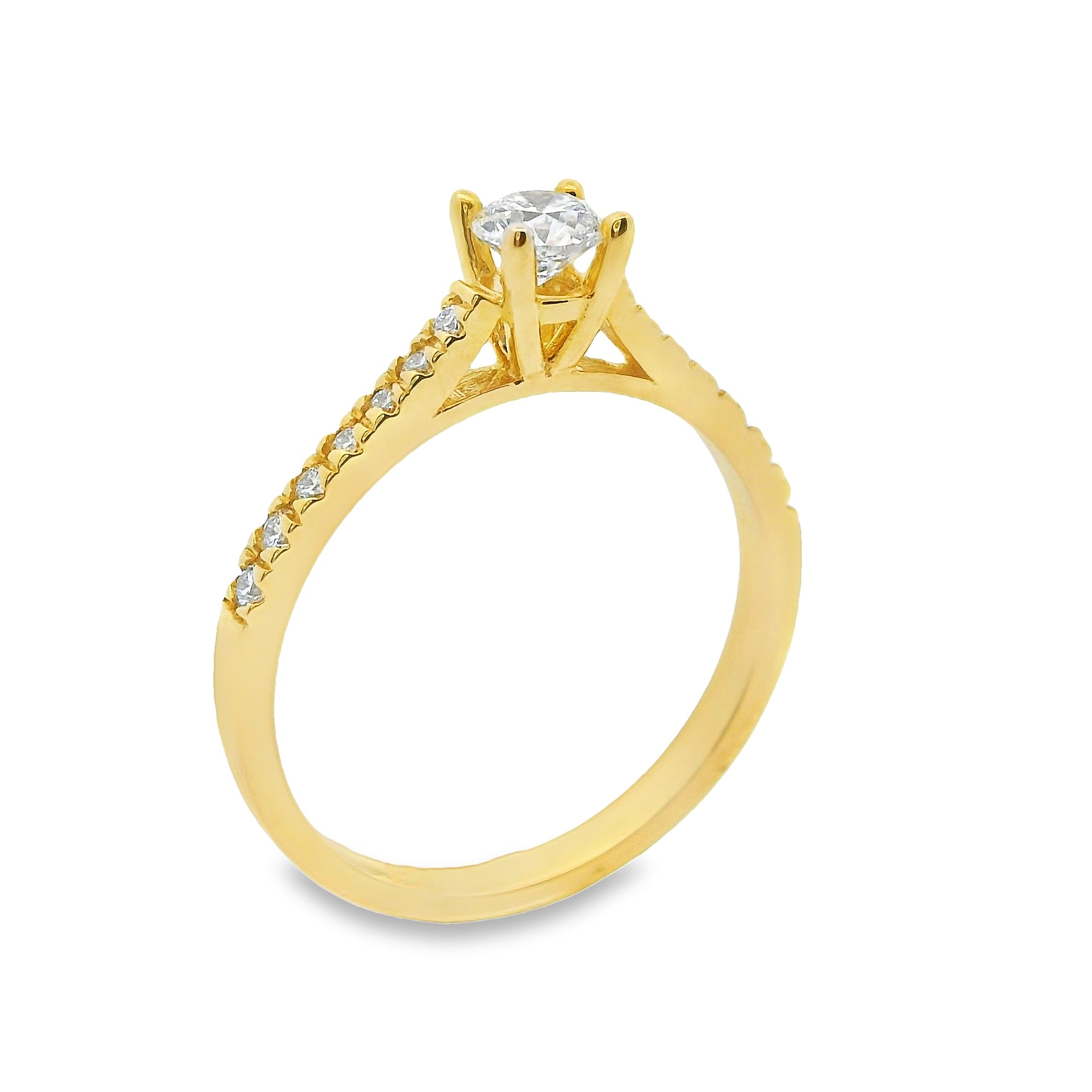 Deze ring van Louis Bros is vervaardigd uit 18 karaat geelgoud (2.52 gr.) en is gezet met en 15 briljant geslepen diamanten met een totaalgewicht van 0.34ct. De ring heeft een diameter van 4.7 mm, minimale breedte van 2 mm. en een hoogte van 6.5 mm. Deze ring straalt elegantie en verfijning uit. De glinsterende diamant in het midden trekt alle aandacht naar zich toe, terwijl de steentjes aan de zijkanten een extra vleugje schittering en glamour toevoegen. Het geelgoud geeft de ring een warme en klassieke uitstraling. Het is een tijdloos ontwerp dat perfect is voor elke gelegenheid, of het nu een speciale gebeurtenis is of gewoon voor dagelijks gebruik. Met deze ring om je vinger voel je je ongetwijfeld stralend en bijzonder. Deze ring bestaat uit onze lijn van exclusieve modellen sieraden met prachtige designs van hoge kwaliteit.