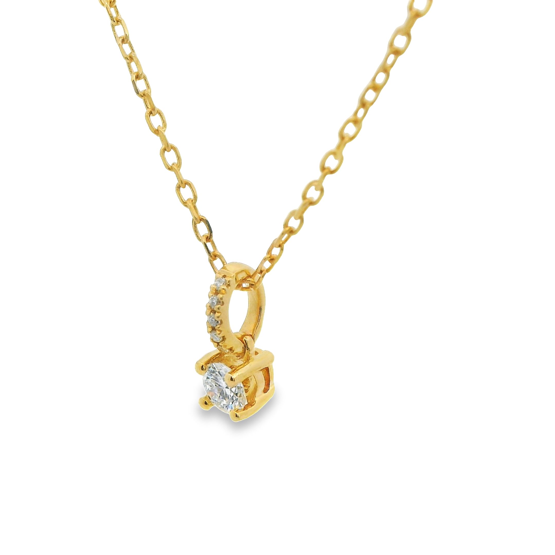 Deze hanger (met collier) van Louis Bros is vervaardigd uit 14 karaat geelgoud (1.88 gr.) en is gezet met 6 briljant geslepen diamanten met een totaalgewicht van 0.10 ct. De hanger heeft een diameter van 3 mm en een dikte van 3 mm.