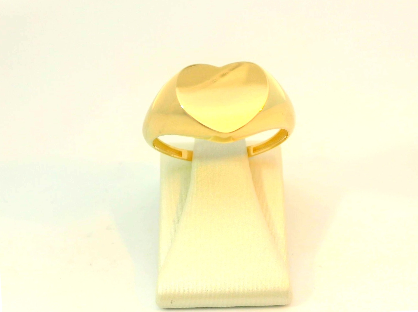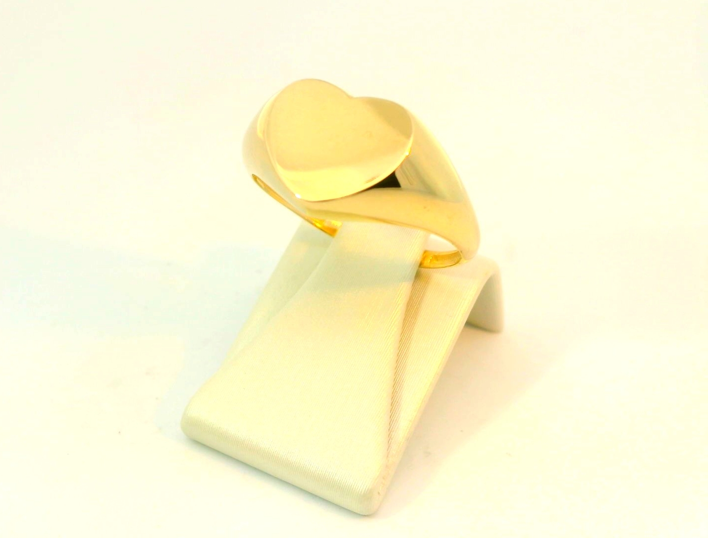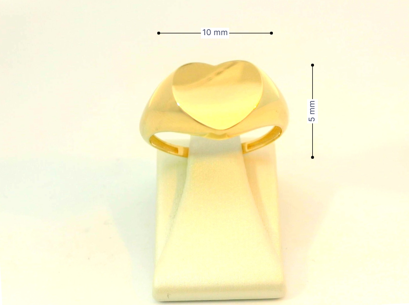 Deze prachtige geelgouden zegelring van 14 karaat heeft een unieke hartvorm, waardoor het een perfect cadeau is voor een geliefde. Het sieraad is van hoge kwaliteit en heeft een tijdloze uitstraling. Draag het als een statement piece aan je vinger voor een elegante en stijlvolle look. Maak indruk met deze schitterende zegelring.