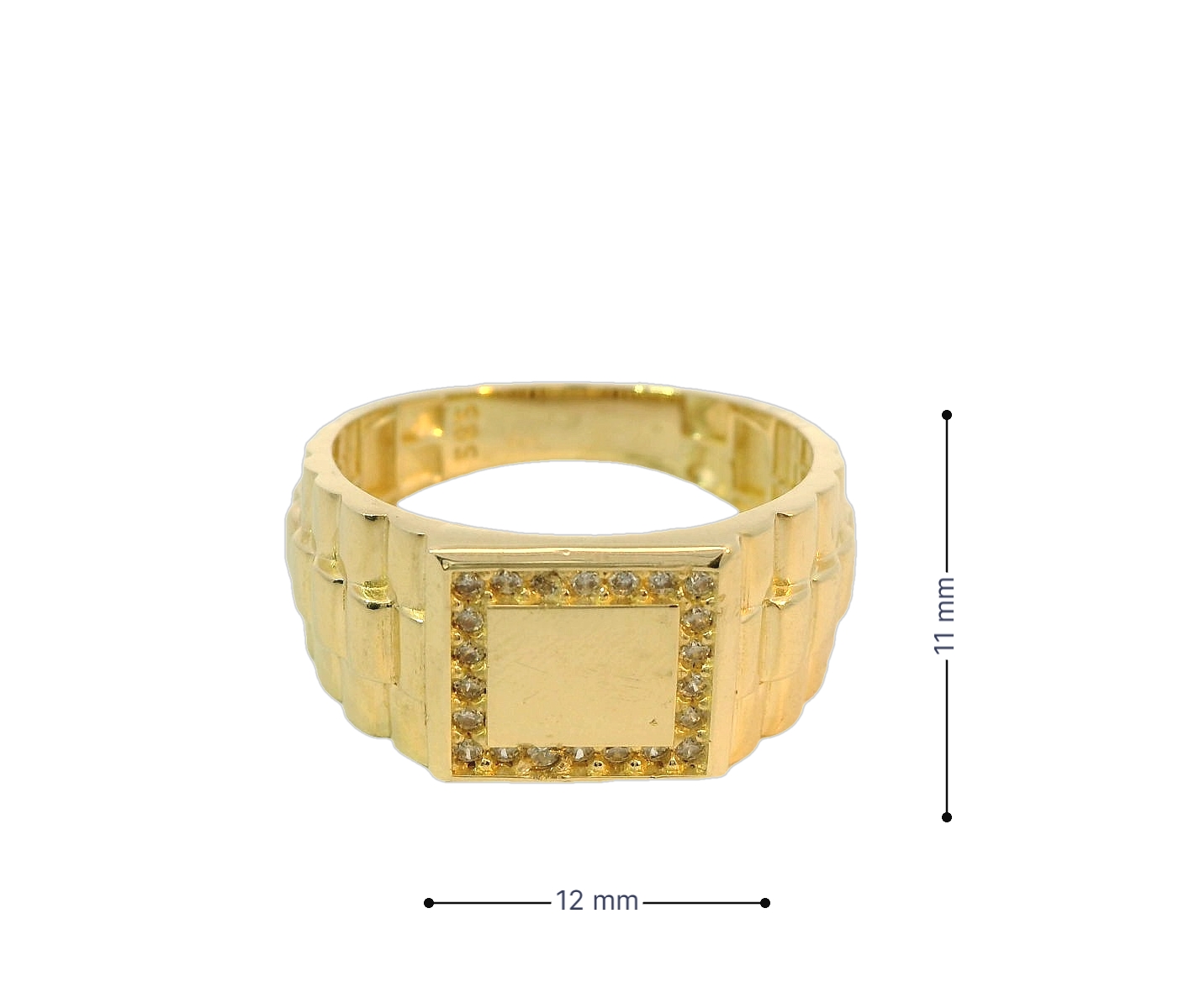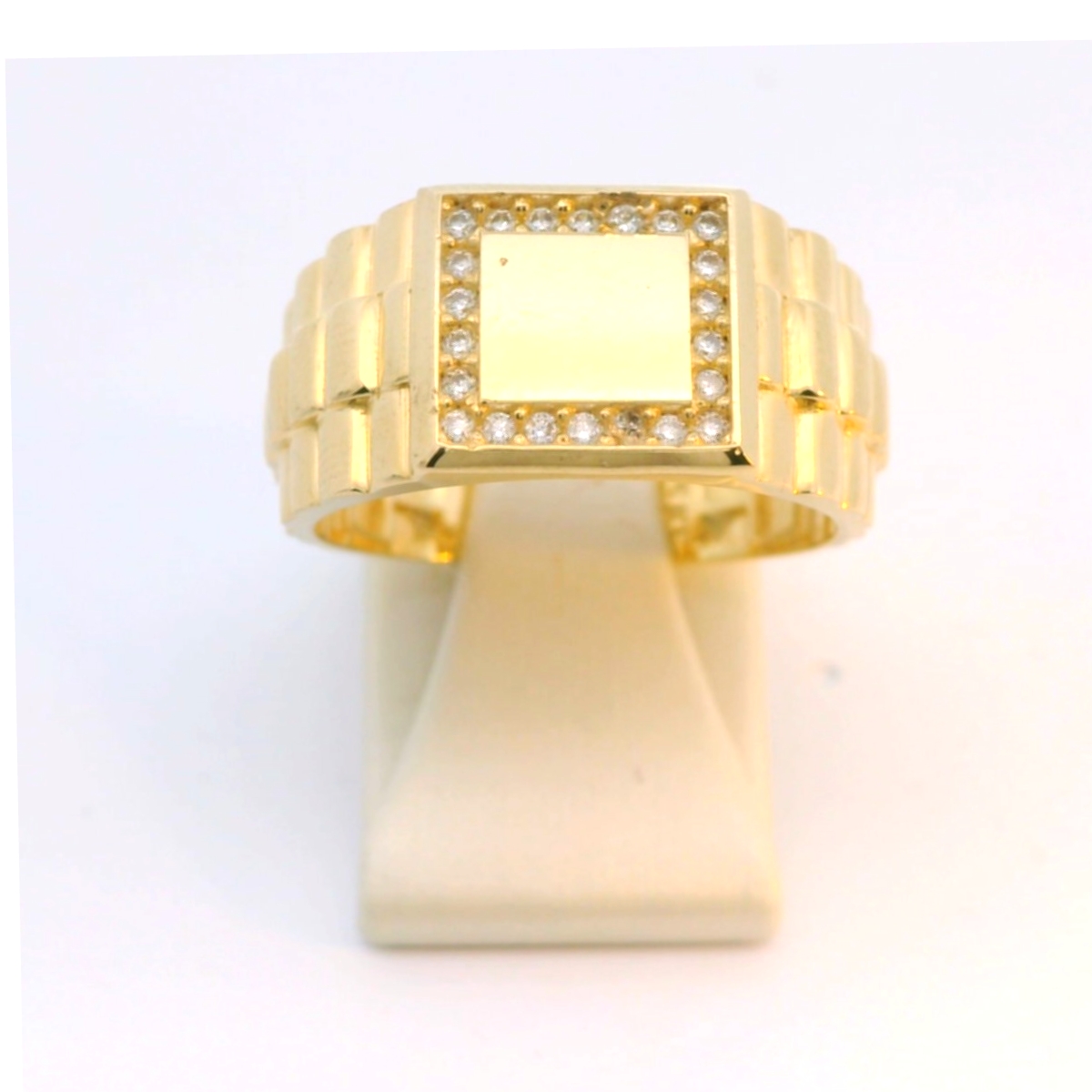 Deze prachtige zegelring is gemaakt van 14 karaat geelgoud en is versierd met schitterende zirkonia steentjes. De ring heeft een stoere uitstraling en is perfect voor heren die houden van een opvallend sieraad. Draag deze ring als statement piece om je outfit compleet te maken. Een echte eyecatcher voor elke gelegenheid!