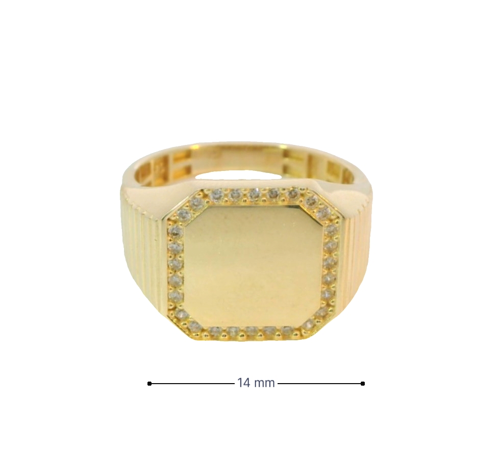 Deze geelgouden zegelring van 14 karaat voor heren is voorzien van een glinsterende zirkonia steen. Deze ring is perfect voor mannen die van stijlvolle accessoires houden. Draag deze ring als statement piece met je favoriete outfit en voeg een vleugje luxe toe aan elke look. Een tijdloos en elegant juweel dat zeker bewonderende blikken zal oogsten.