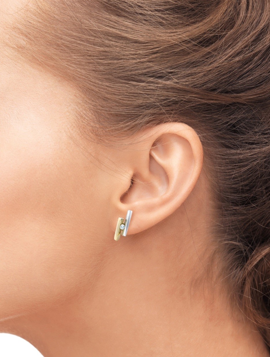 Halve oorring Penelope 14kts goud met briljant 2 x 0,04crt si/river