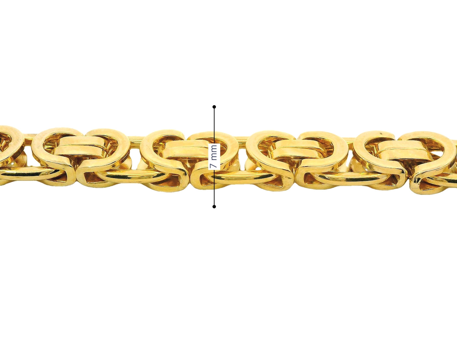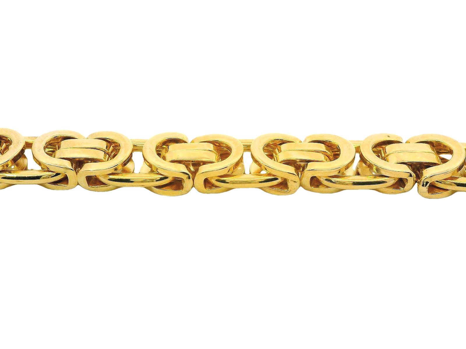Deze armband van Louis Bros is vervaardigd uit 14k geelgoud (27.31gr). De armband heeft een lengte van 21cm en een breedte van 7 mm. En een dikte van 3.5mm. Een echt gouden koningsarmband is een prachtig sieraad voor jaren. We hebben een flinke collectie armbanden in onze zaak.