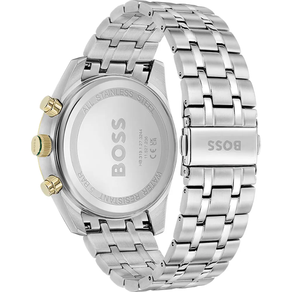 Dit Hugo Boss horloge heeft een kast gemaakt van Roestvrijstaal met een diameter van 44 mm en is voorzien van een metalen band. In de kast bevindt zich een Seiko Instruments Inc. kwaliteitsuurwerk en is afgewerkt met Mineraalglas.