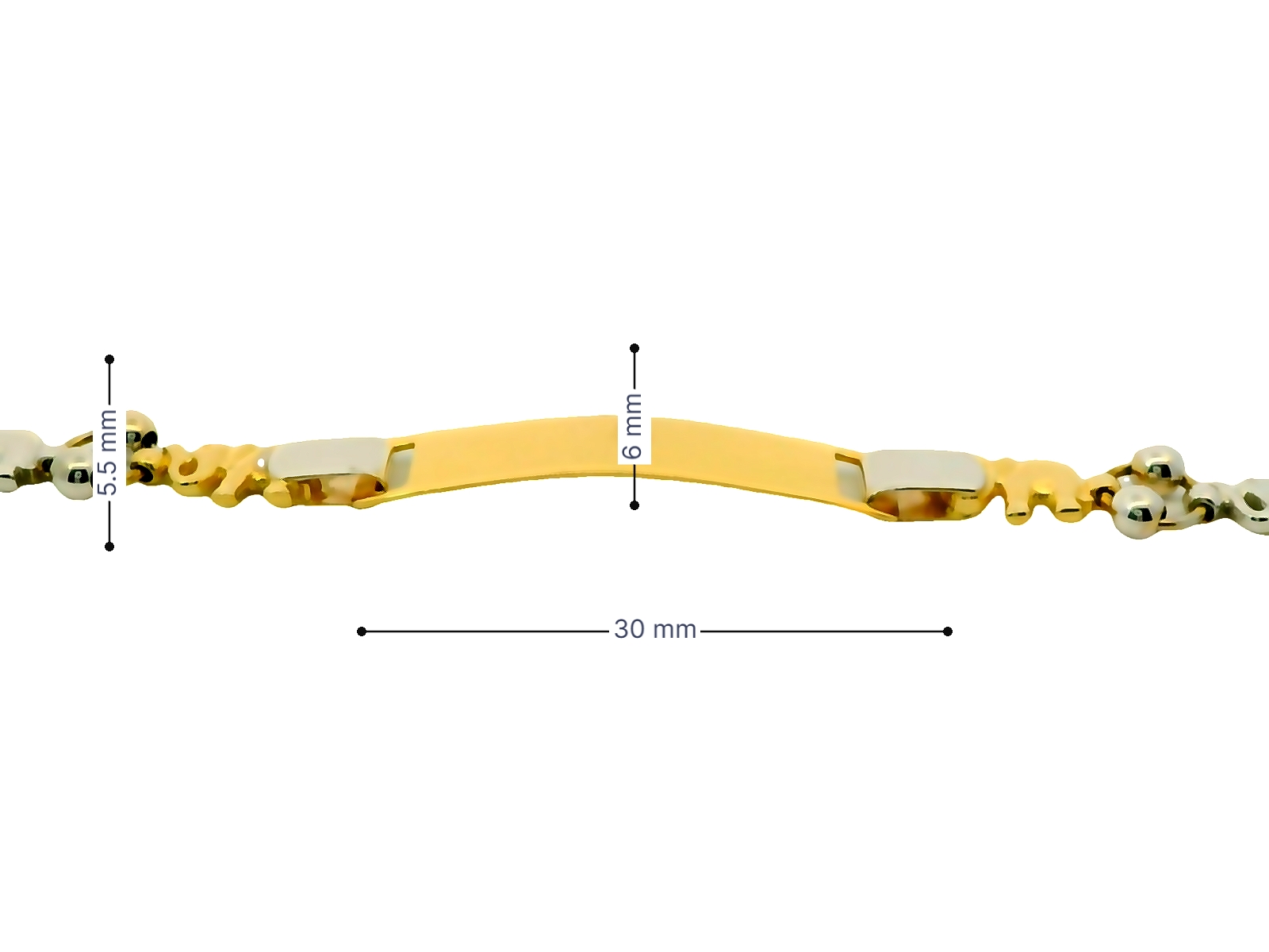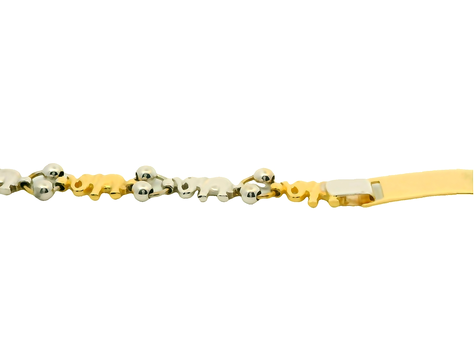 Dit prachtige kinderarmbandje is gemaakt van 14 karaat bicolor goud en heeft een graveerplaatje met een schattige olifant. Het armbandje is zowel geschikt voor jongens als meisjes. De beste manier om het te dragen is om het strak om de pols te laten zitten zodat het plaatje en de olifant goed zichtbaar zijn. Een perfect cadeau voor elk kind.