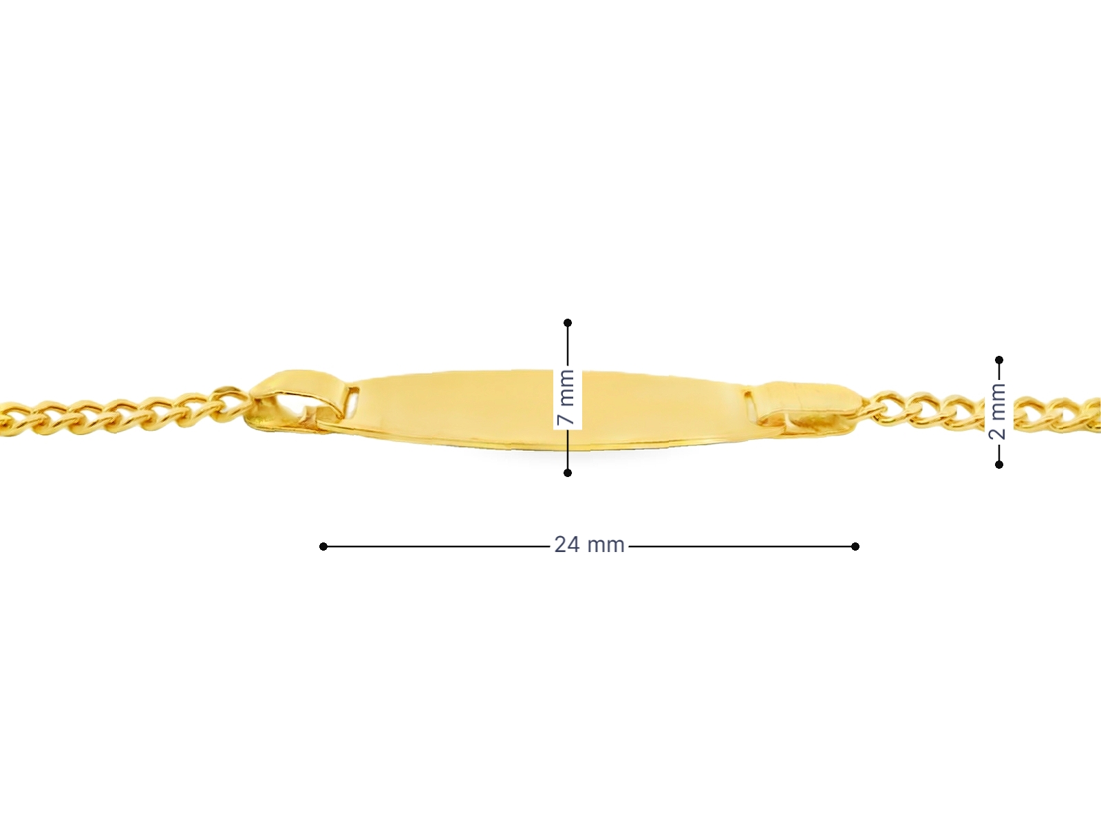 Dit prachtige kinderarmbandje is gemaakt van 14 karaat geelgoud en heeft een graveerplaatje waar een naam of speciale datum op gegraveerd kan worden. Het armbandje is perfect voor dagelijks gebruik of voor speciale gelegenheden. Het beste is om het armbandje alleen te dragen en op te bergen in een sieradendoosje wanneer het niet gedragen wordt. Geef dit unieke armbandje cadeau aan een speciaal kind in je leven.