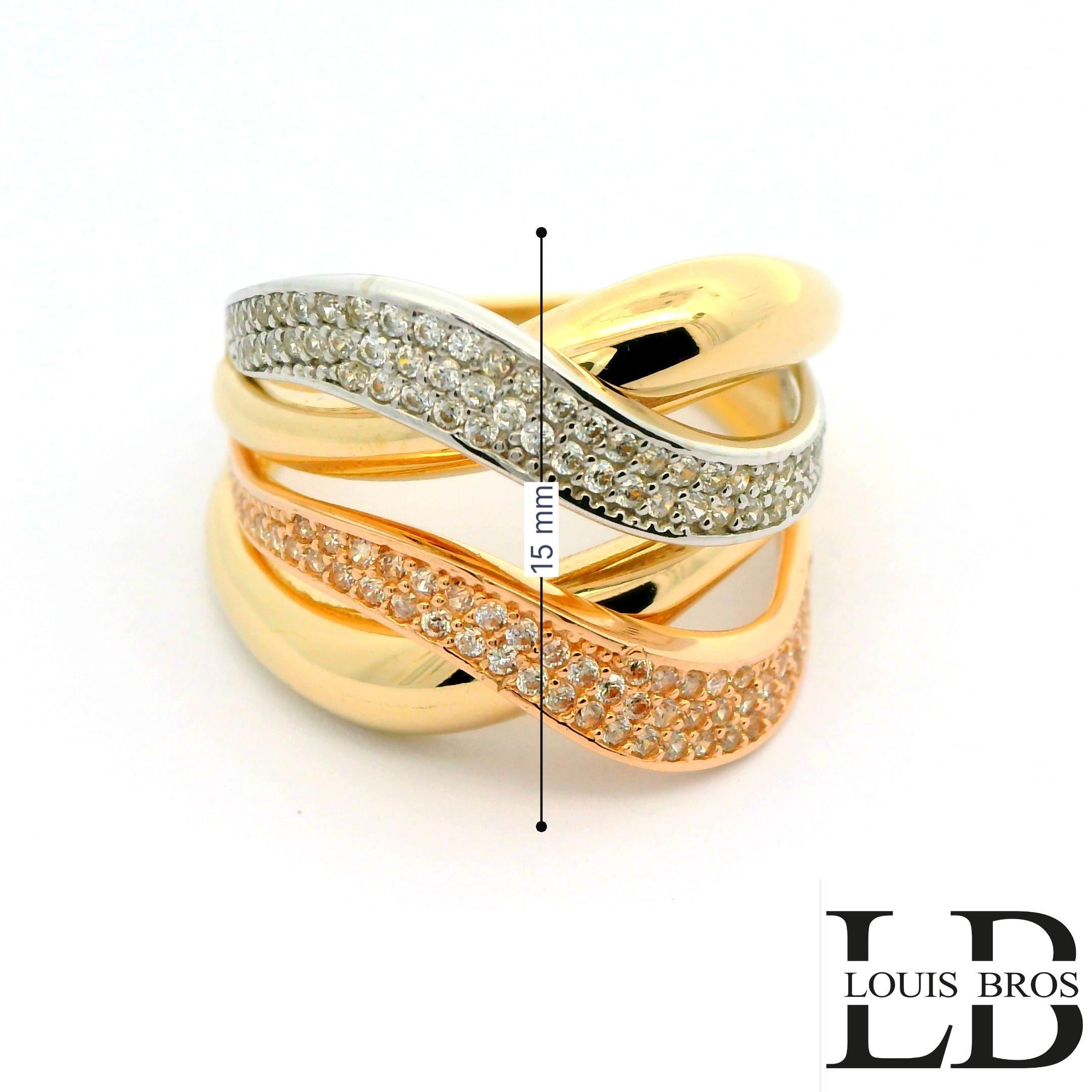 Een tijdloos en stijlvol sieraad dat perfect is voor dagelijks gebruik, maar ook bijzonder mooi bij feestelijke gelegenheden. Dankzij de combinatie van drie goudkleuren laat de ring zich makkelijk combineren met andere sieraden.