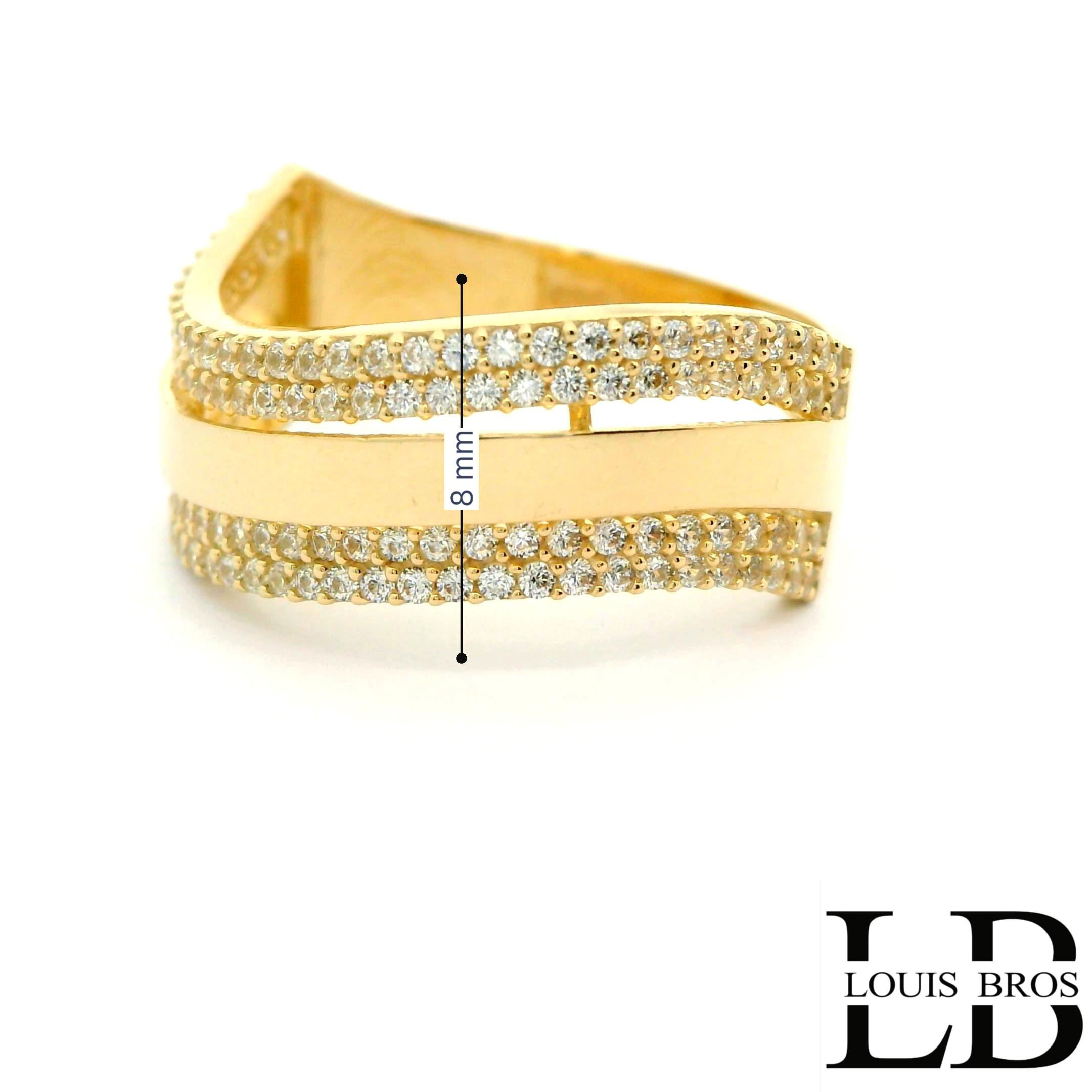 Deze 14 karaat geelgouden ring (2.89.gr) heeft een elegante en tijdloze uitstraling. De ring is bezet met schitterende zirkonia’s die het licht prachtig vangen en zorgen voor een verfijnde glans. Het warme geelgoud vormt een mooi geheel met de heldere stenen, waardoor de ring zowel stijlvol als draagbaar is. Een klassiek sieraad dat geschikt is voor dagelijks gebruik en voor bijzondere momenten.