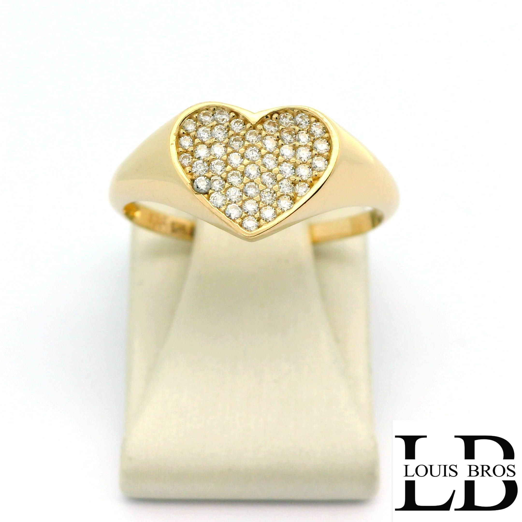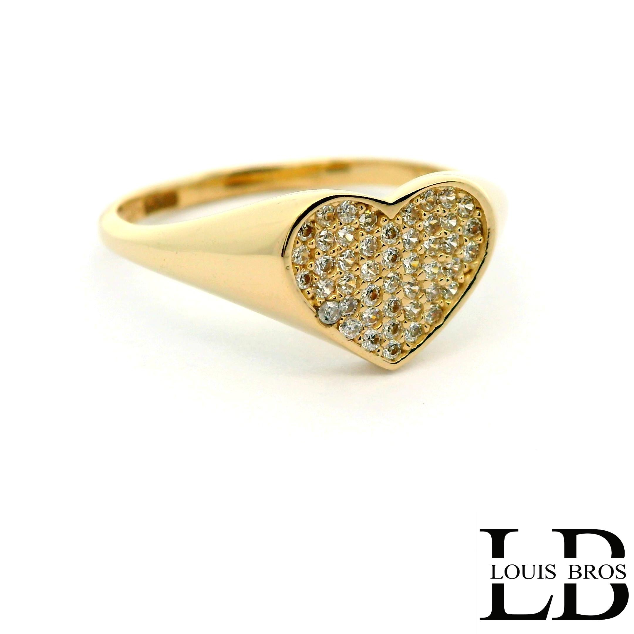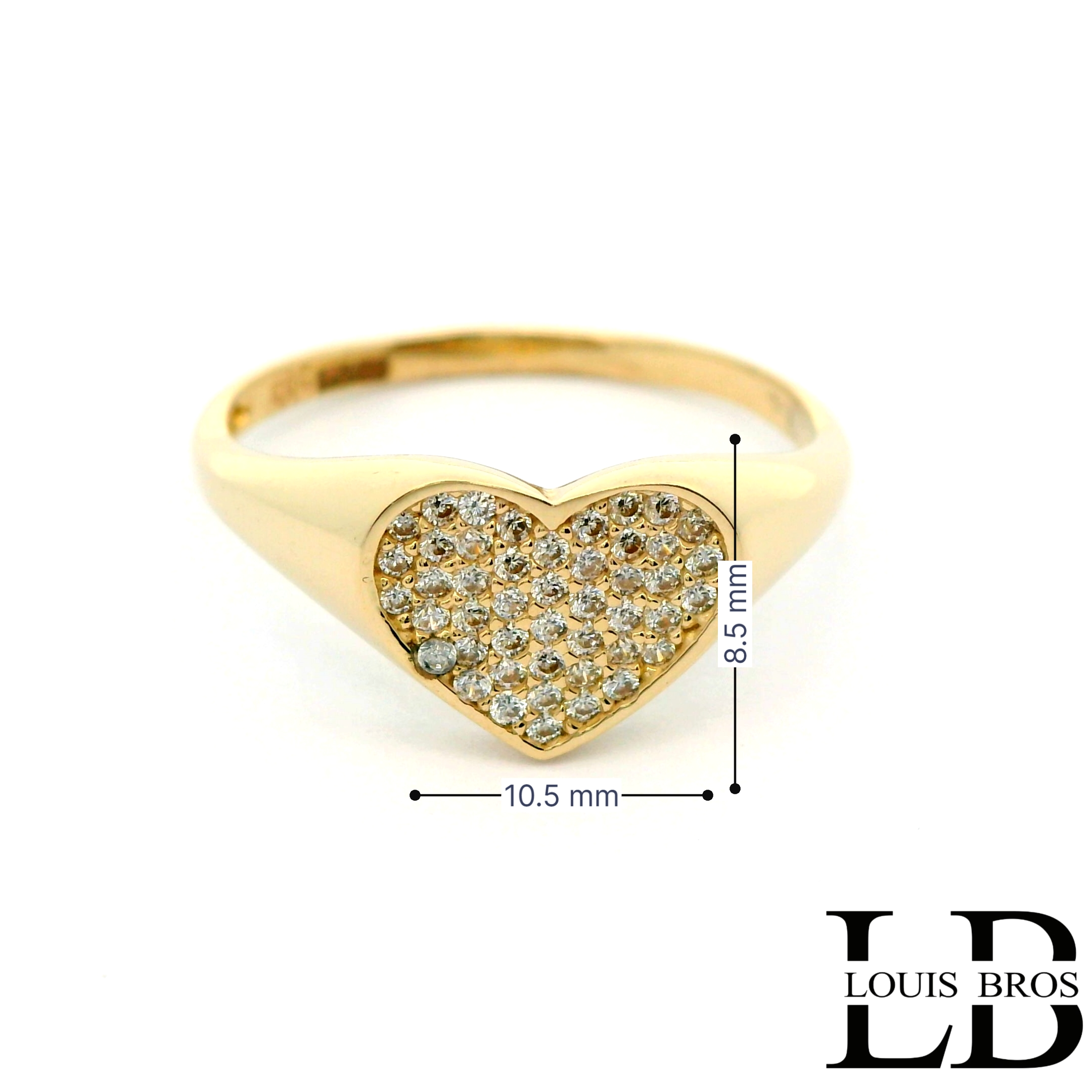 Deze verfijnde dames zegelring is vervaardigd uit hoogwaardig 14 karaat geelgoud (1.76 gr) en straalt pure elegantie uit. Het hartvormige zegel geeft de ring een romantische en vrouwelijke uitstraling. De bovenzijde is volledig bezet met fonkelende zirkonia’s, die zorgen voor een schitterende glans en een luxueuze look.