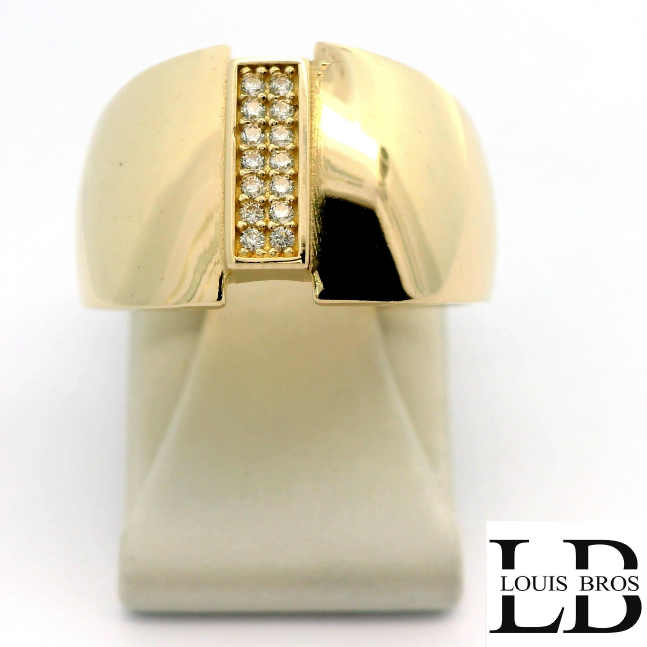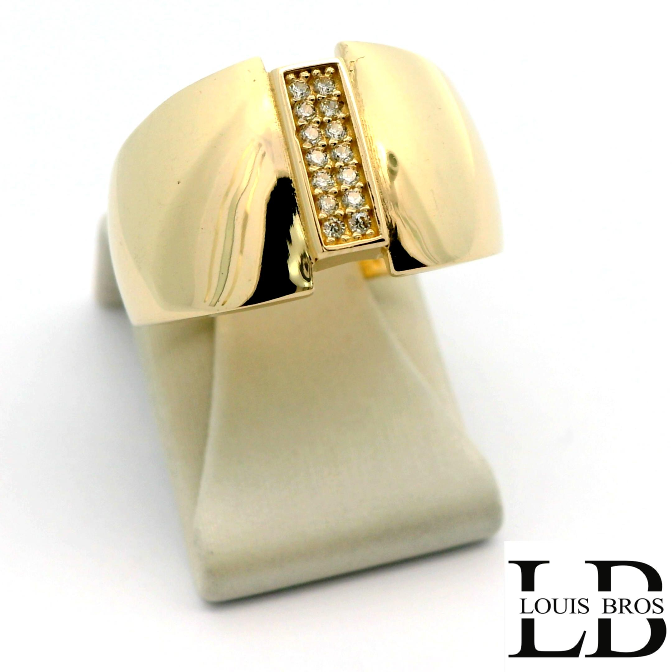 Deze 14 karaat geelgouden ring (4.18.gr) heeft een elegante en tijdloze uitstraling. De ring is bezet met schitterende zirkonia’s die het licht prachtig vangen en zorgen voor een verfijnde glans. Het warme geelgoud vormt een mooi geheel met de heldere stenen, waardoor de ring zowel stijlvol als draagbaar is. Een klassiek sieraad dat geschikt is voor dagelijks gebruik en voor bijzondere momenten.