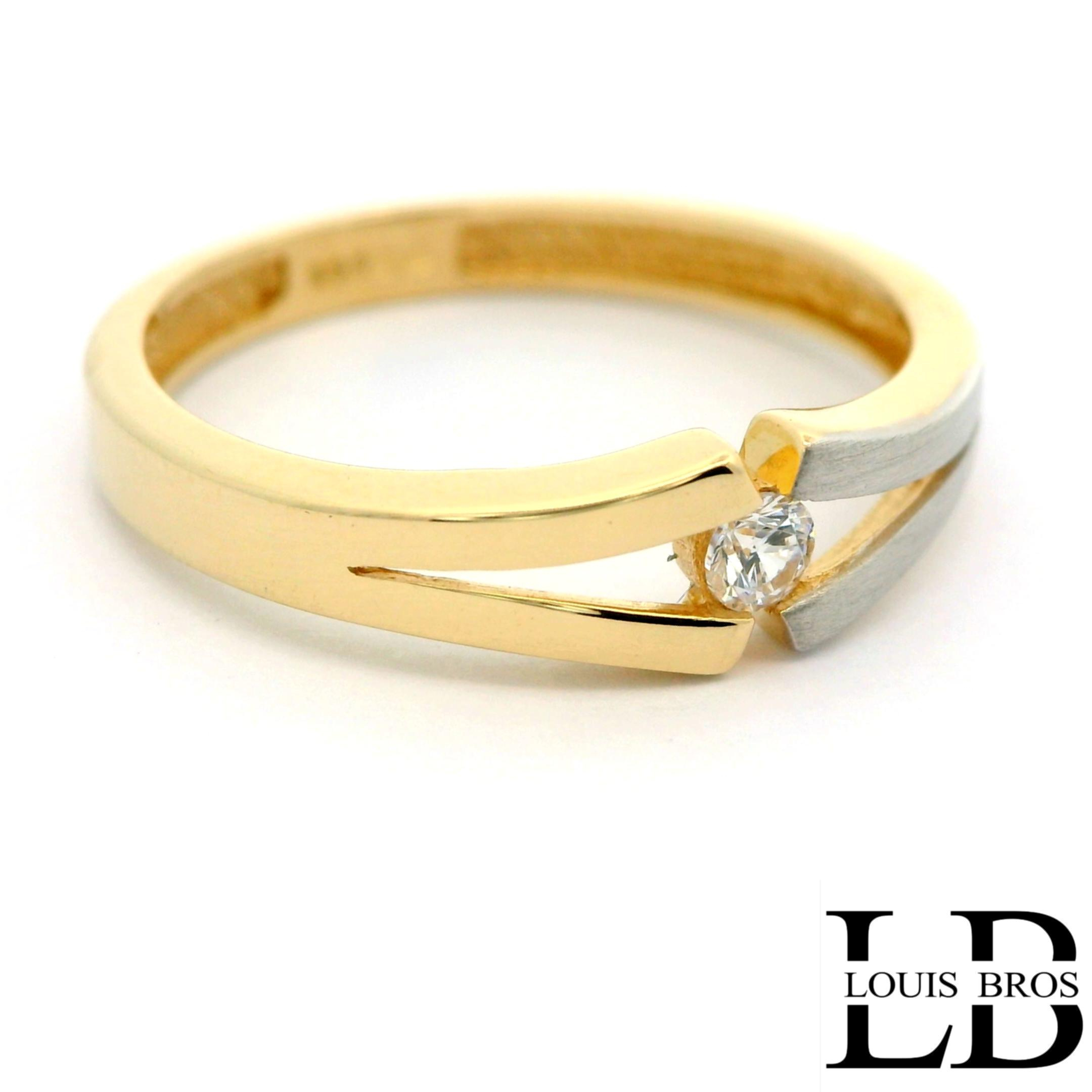 Deze elegante ring is vervaardigd uit 14 karaat bicolor goud (1.75 gr), een stijlvolle combinatie van wit- en geelgoud. Het tijdloze ontwerp wordt verfraaid met sprankelende zirkonia, die de ring een luxe en verfijnde uitstraling geven. Dankzij de subtiele glans en het contrasterende kleurenspel van het goud is dit sieraad zowel modern als klassiek, en geschikt voor iedere gelegenheid.