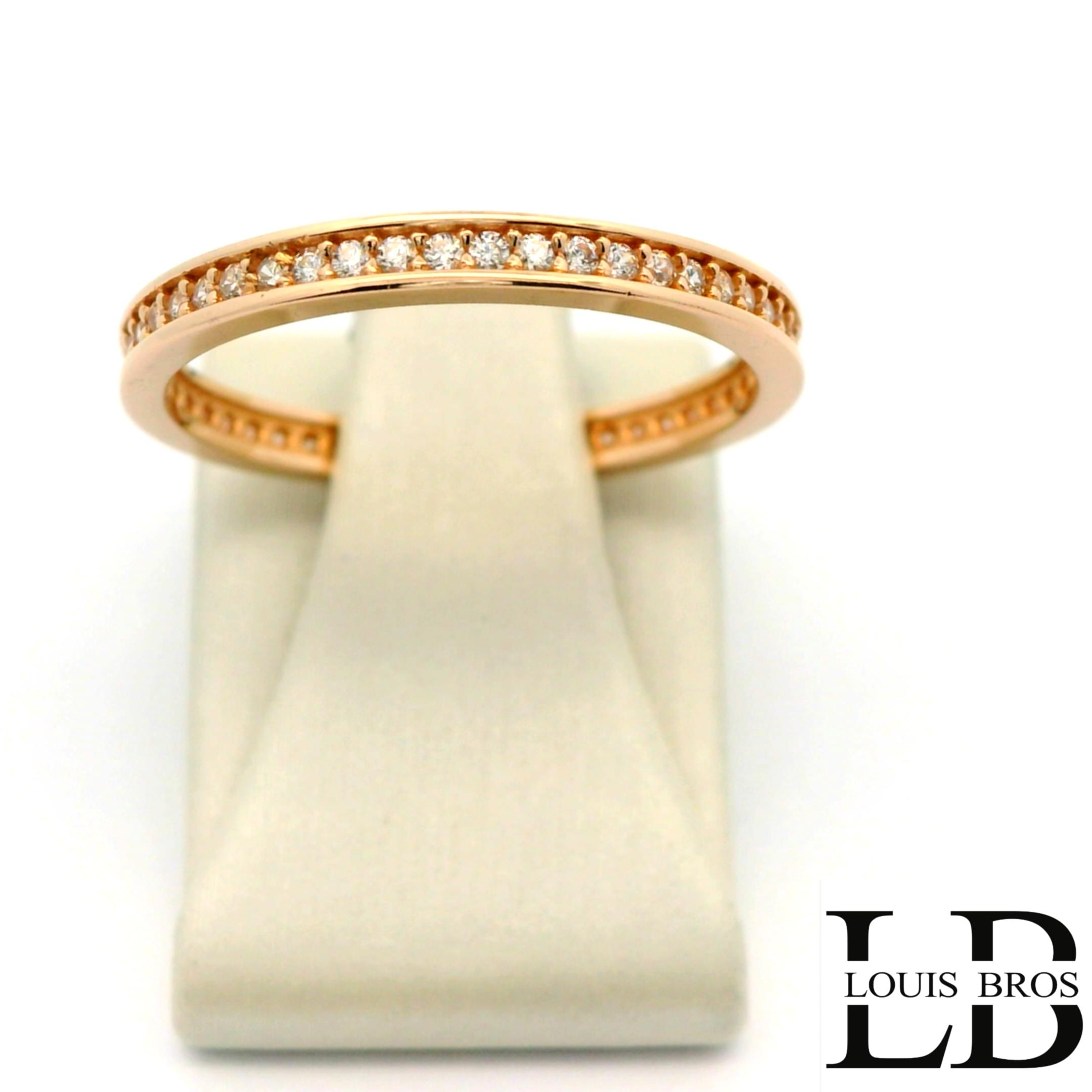 Deze verfijnde ring is vervaardigd uit 14 karaat roségoud (1.73 gr) en heeft een warme, romantische uitstraling. Het slanke en subtiele ontwerp wordt elegant verrijkt met fonkelende zirkonia’s, die het licht prachtig vangen en zorgen voor een luxe, maar ingetogen glans. Dankzij het minimalistische design is deze ring perfect voor dagelijks gebruik en ideaal om te combineren met andere sieraden. Een tijdloos en elegant sieraad dat elke look een zachte, vrouwelijke touch geeft.
