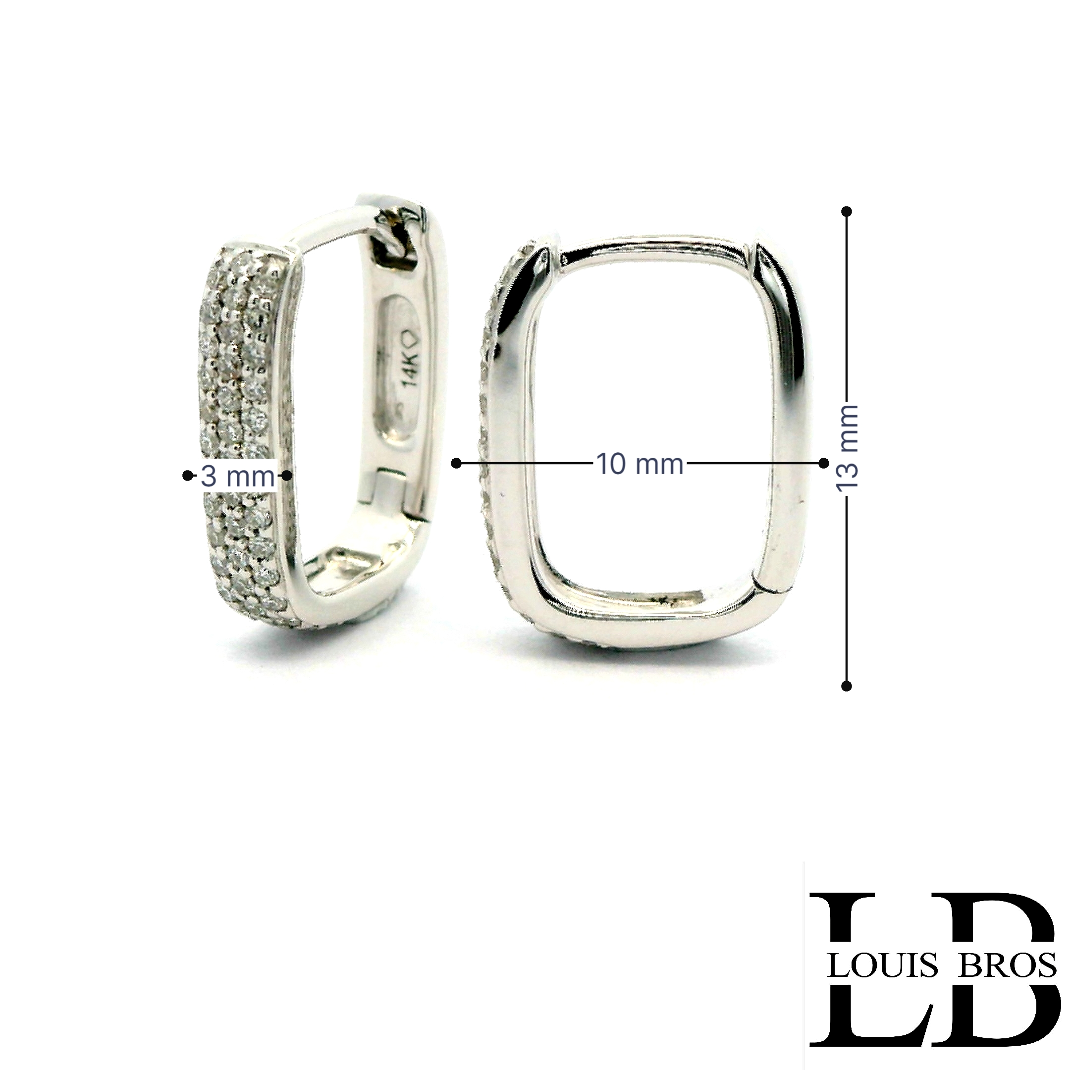 Deze elegante oorringen zijn vervaardigd uit 14 karaat witgoud (3. gr) en zijn gezet met 100 briljant geslepen diamanten met een totaalgewicht van 0.25crt. Het tijdloze rechthoekige design geeft de oorringen een moderne, stijlvolle uitstraling, terwijl de zorgvuldig gezette diamant zorgt voor een subtiele, luxe schittering. Dankzij de strakke lijnen en het ingetogen ontwerp zijn deze oorringen perfect voor zowel dagelijks gebruik als speciale gelegenheden. Een tijdloos sieraad dat moeiteloos elke look compleet maakt.