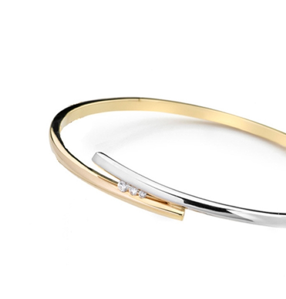 Deze mooie 14 karaat bicolor gouden armband van R&C is echt een plaatje aan de vrouwenpols. Door de ronde vormen in combinatie met drie diamantje in het midden zorgt ervoor dat deze armband tijdloos en draagbaar is voor dagelijks gebruik en voor speciale gelegenheden.