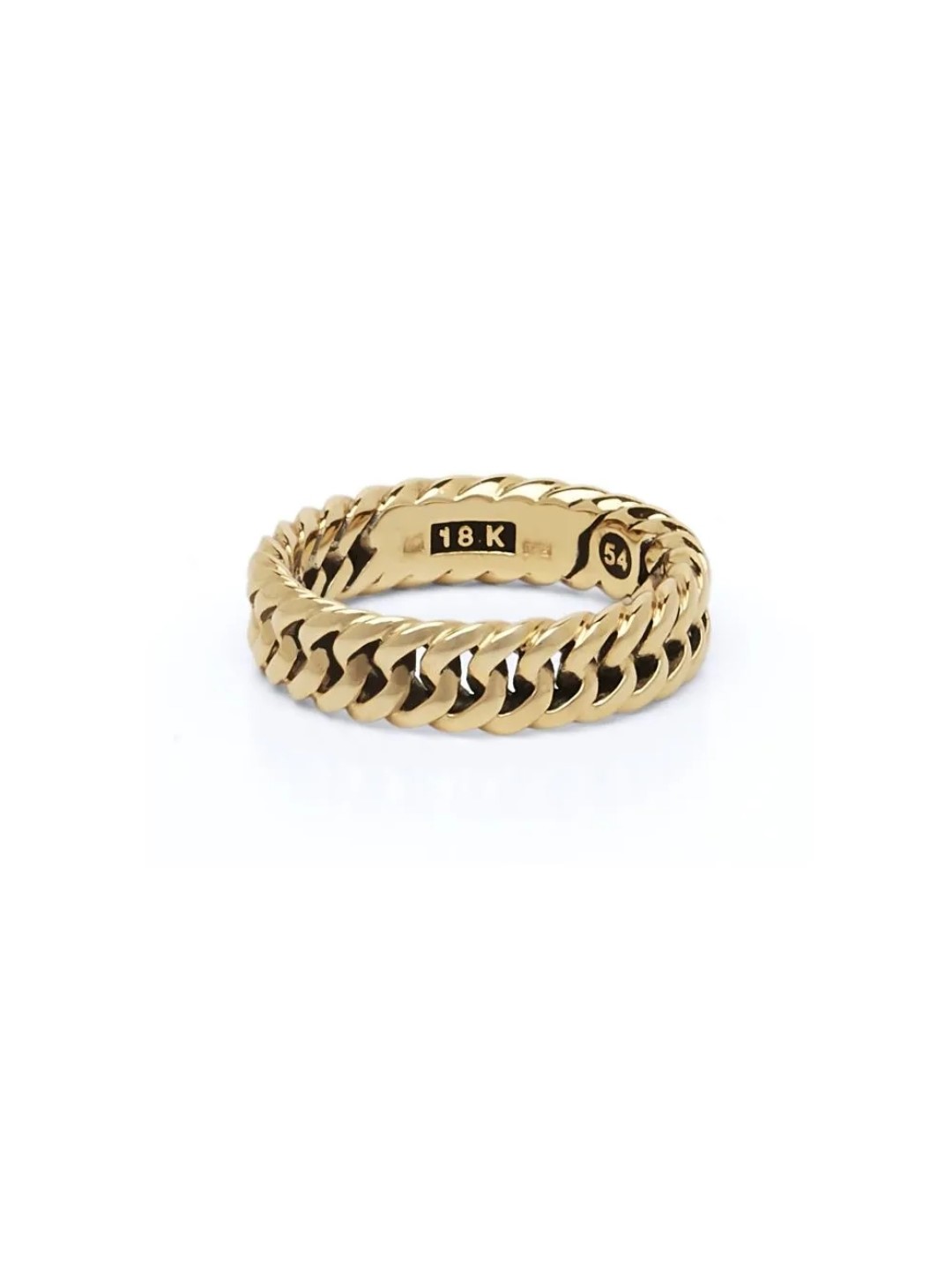 De gouden Chain ring is een slankere versie van de Chain ring uit de bestselling Heritage collectie. Omgetoverd in 18 karaats geelgoud. Handgemaakt en tijdloos zoals alle Buddha to Buddha sieraden. De ring laat zich perfect combineren met andere Buddha to Buddha sieraden en wordt verpakt in een luxe geschenkverpakking. Deze ring valt in de categorie smalle ringen.