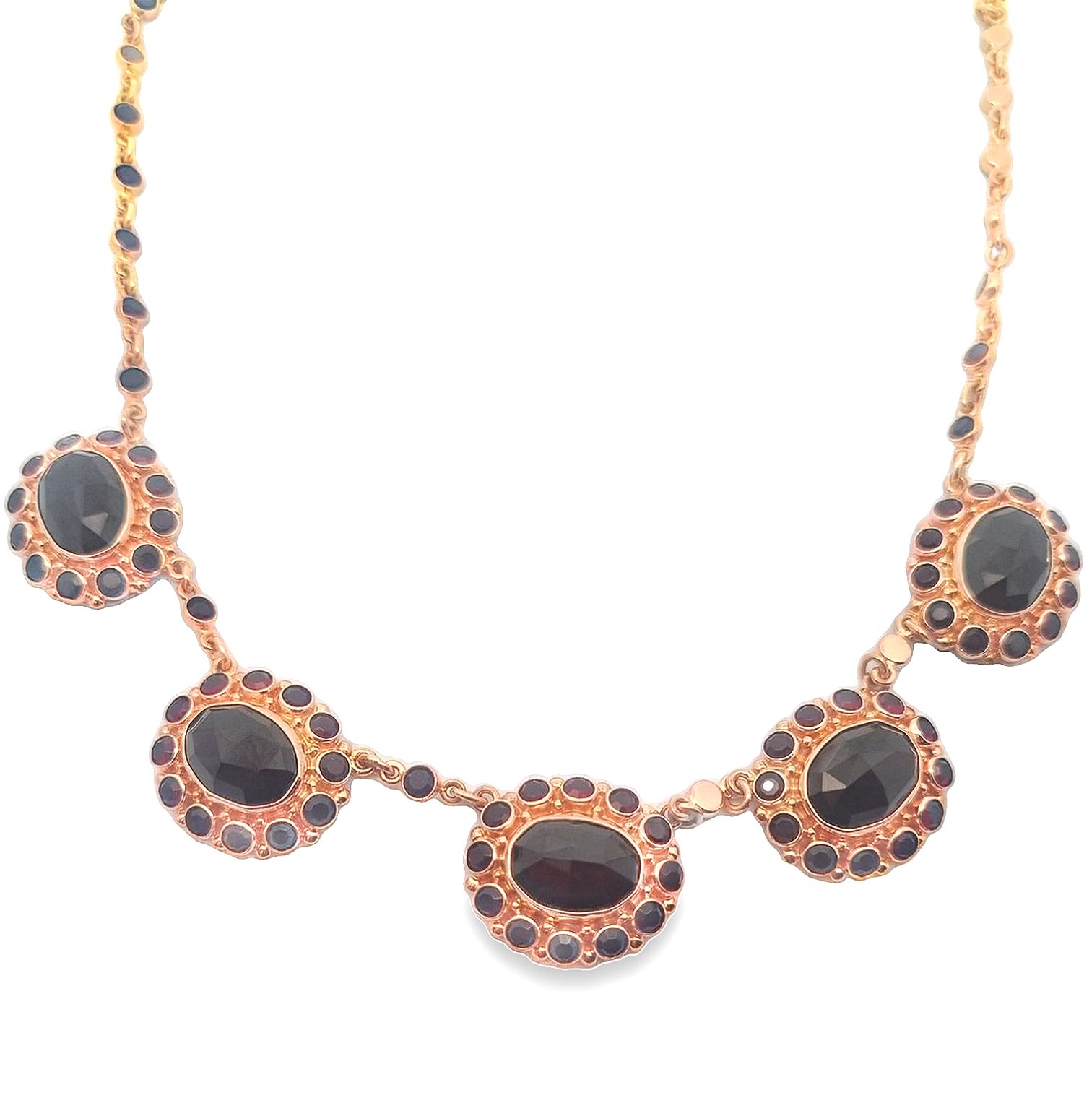 Dit betoverende collier is vervaardigd uit 14 karaat roségoud en versierd met een prachtige granaat. Het collier is tweedehands en heeft een charmante vintage uitstraling, die een gevoel van tijdloze elegantie oproept. De warme tint van het roségoud in combinatie met de diepe, rijke kleur van de granaat maakt dit sieraad een unieke en stijlvolle aanvulling op elke juwelencollectie. Ondanks dat het collier tweedehands is, verkeert het in uitstekende staat en is het klaar om een nieuw hoofdstuk te beginnen met zijn volgende eigenaar.