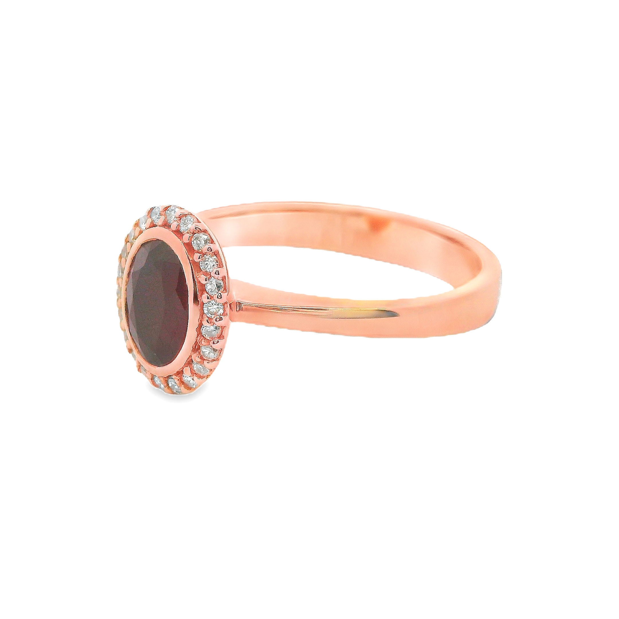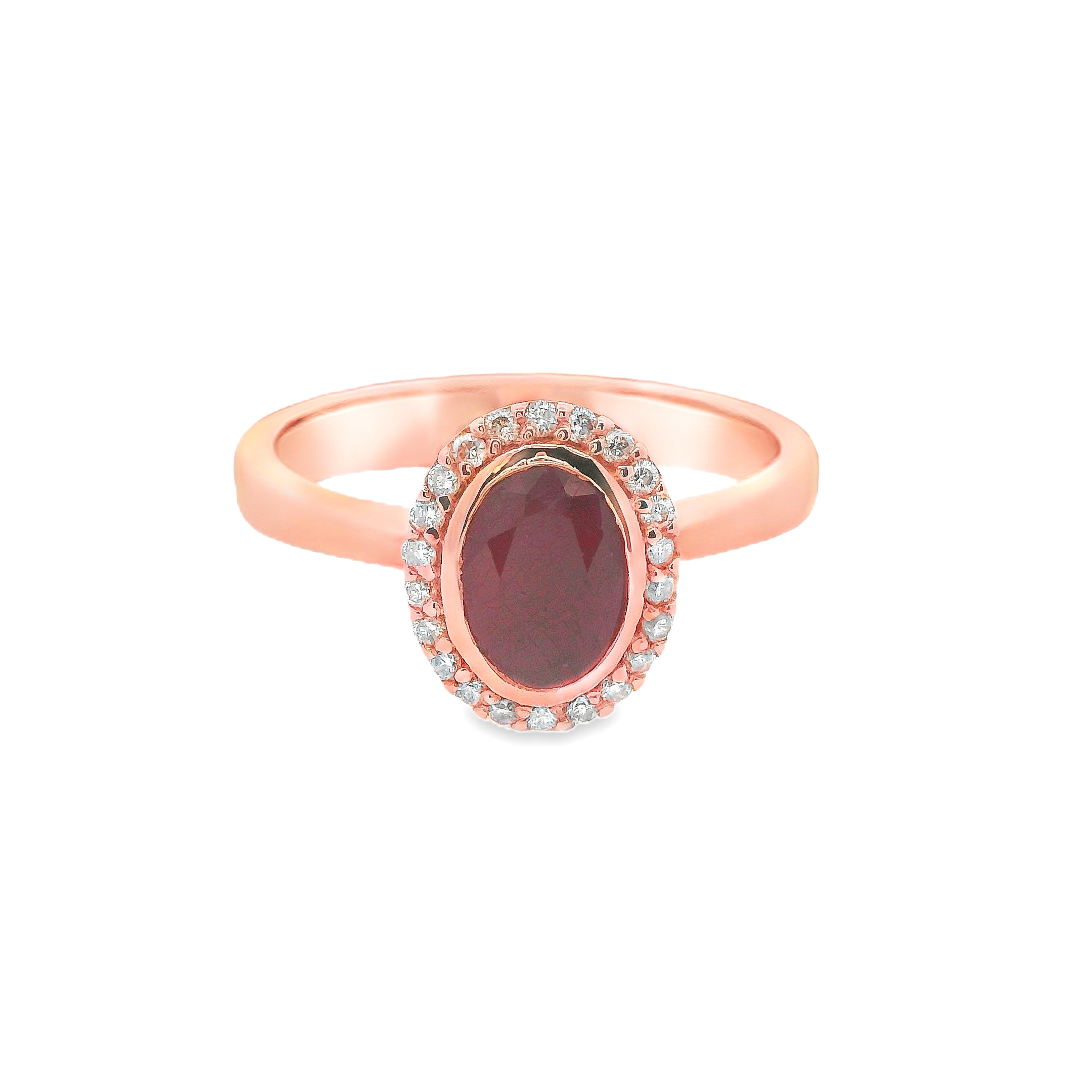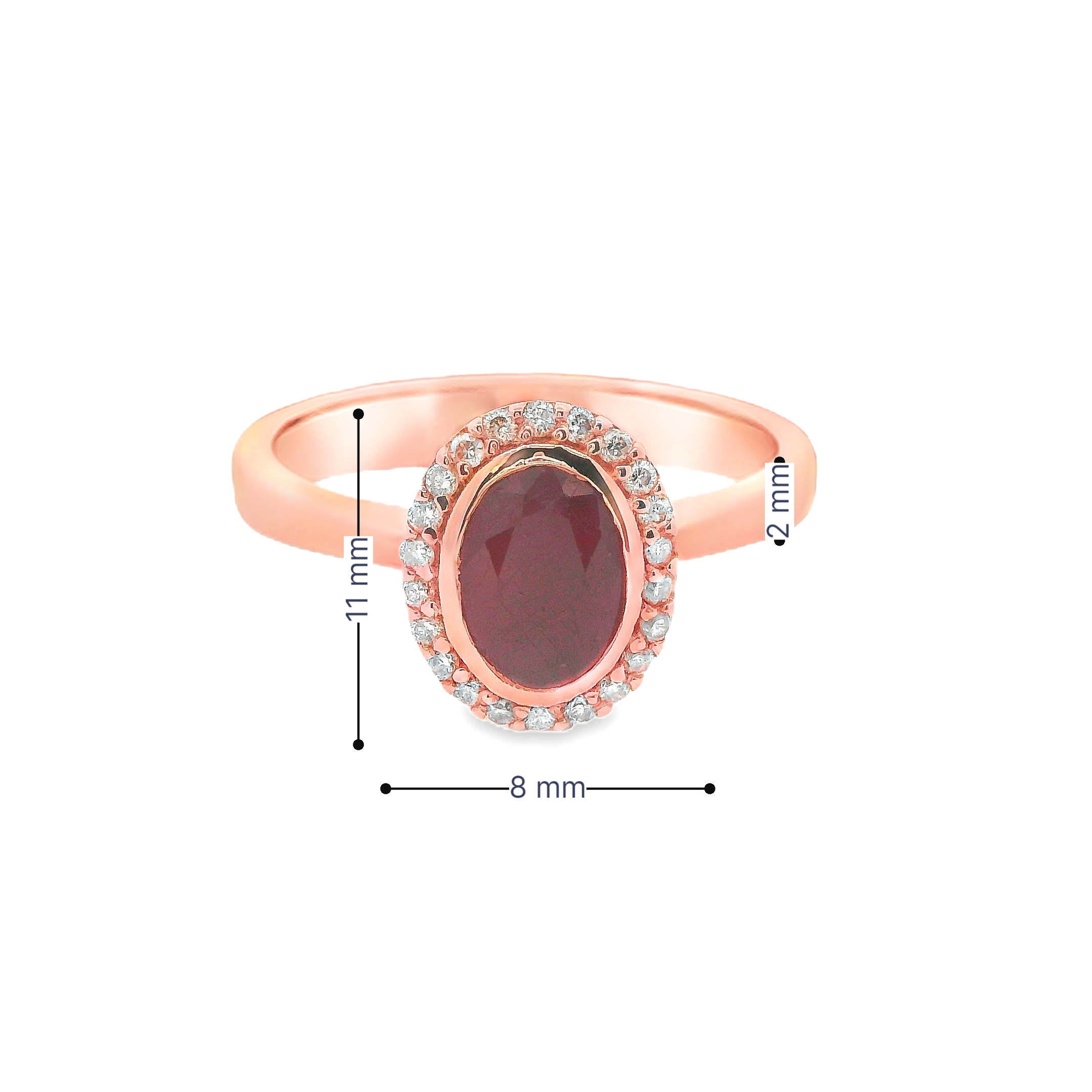 Deze ring van Louis Bros is vervaardigd uit 14 karaat roségoud (3.74 gr.) en is gezet met 22 briljant geslepen diamanten met een totaalgewicht van 0.11ct, en 1 robijn 1.05ct. De ring heeft een diameter van 11x9 mm, minimale breedte van 2 mm. Deze ring met robijn en omliggende diamanten is een prachtig en elegant sieraad. Het warme roségoud vormt een romantische en verfijnde basis voor de ring. In het midden schittert een diepe, rode robijn, die symbool staat voor passie en liefde. Rondom de robijn zijn fonkelende diamanten geplaatst, die de ring een extra vleugje glamour en sprankeling geven. Deze combinatie van roségoud, robijn en diamant maakt de ring perfect voor bijzondere gelegenheden en als een waardevol cadeau. Een roségouden ring met robijn en diamanten is een tijdloos juweel dat elegantie en stijl uitstraalt.