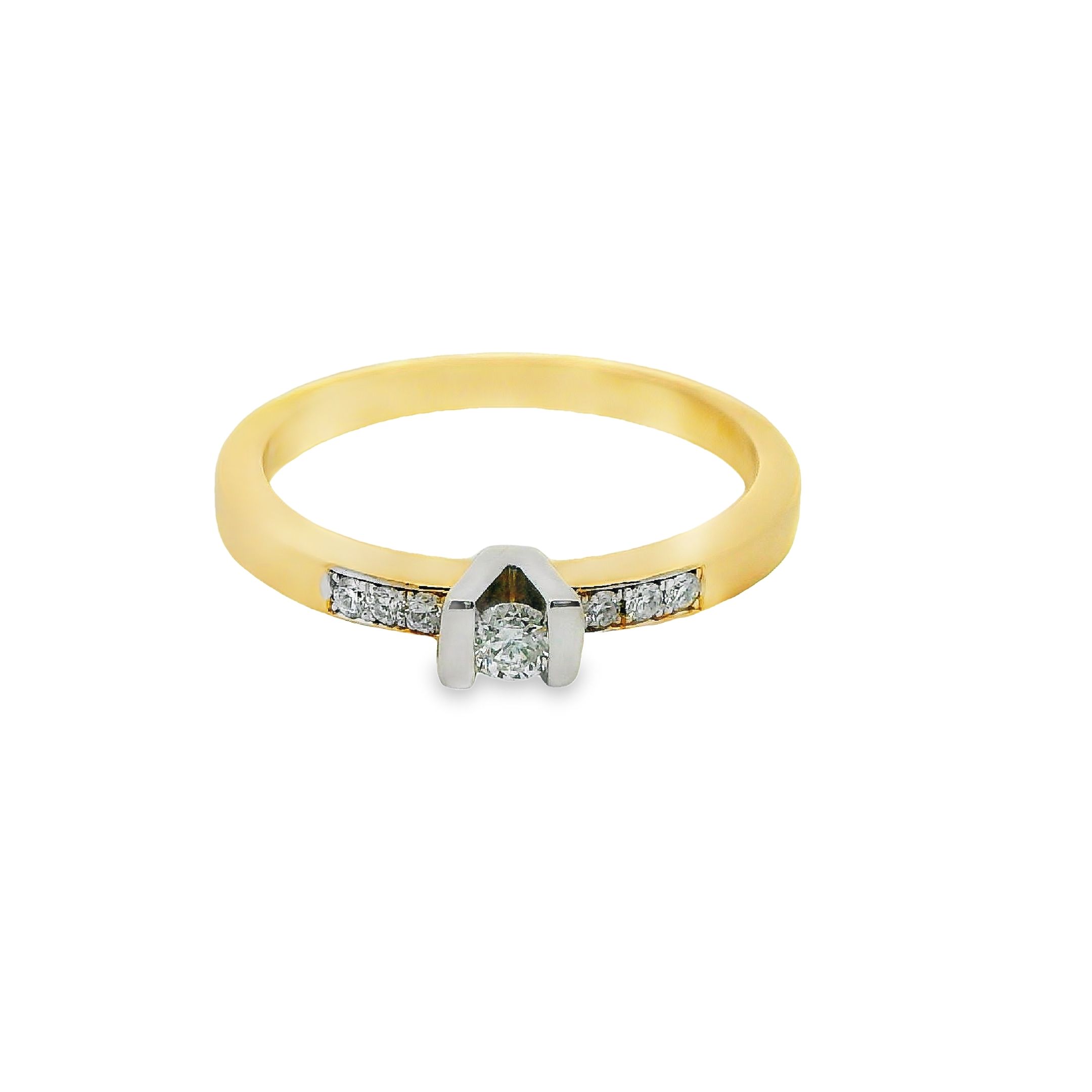 Deze ring van Louis Bros is vervaardigd uit 14 karaat geelgoud met wit rhodium (3.85 gr.) en is gezet met 7 briljant geslepen diamanten met een totaalgewicht van 0.15 ct. In een solitair sieraad wordt één enkele diamant gezet, die daardoor in het middelpunt van de belangstelling staat. De solitairs zijn klassiek en heel elegant. Ze passen bij elke outfit en zijn tijdloos.