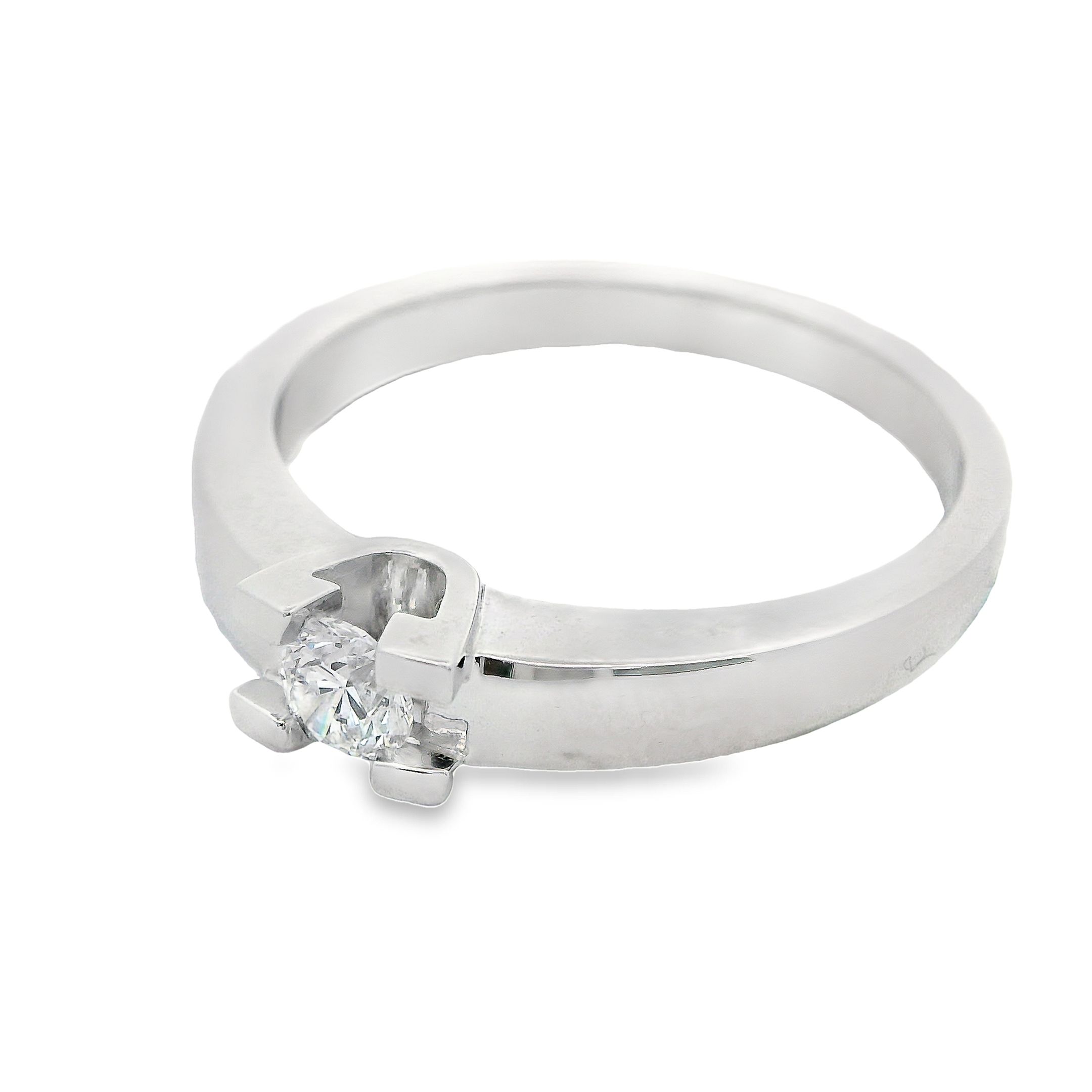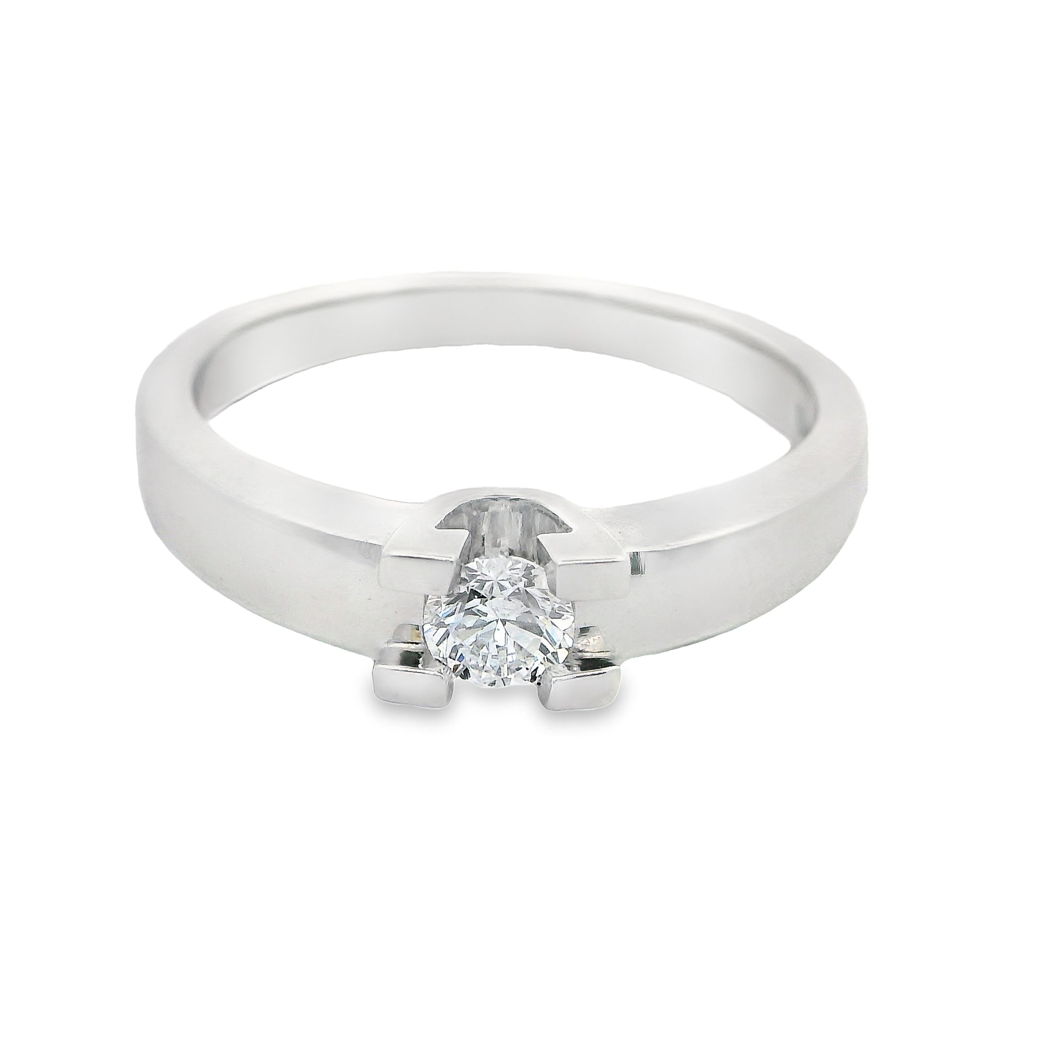 Deze ring van Louis Bros is vervaardigd uit 14 karaat witgoud (3.51 gr.) en is gezet met 1 briljant geslepen diamanten met een totaalgewicht van 0.15 ct.In een solitair sieraad wordt één enkele diamant gezet, die daardoor in het middelpunt van de belangstelling staat. De solitairs zijn klassiek en heel elegant. Ze passen bij elke outfit en zijn tijdloos.