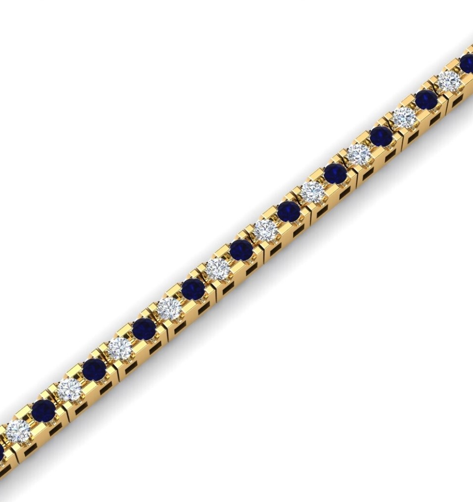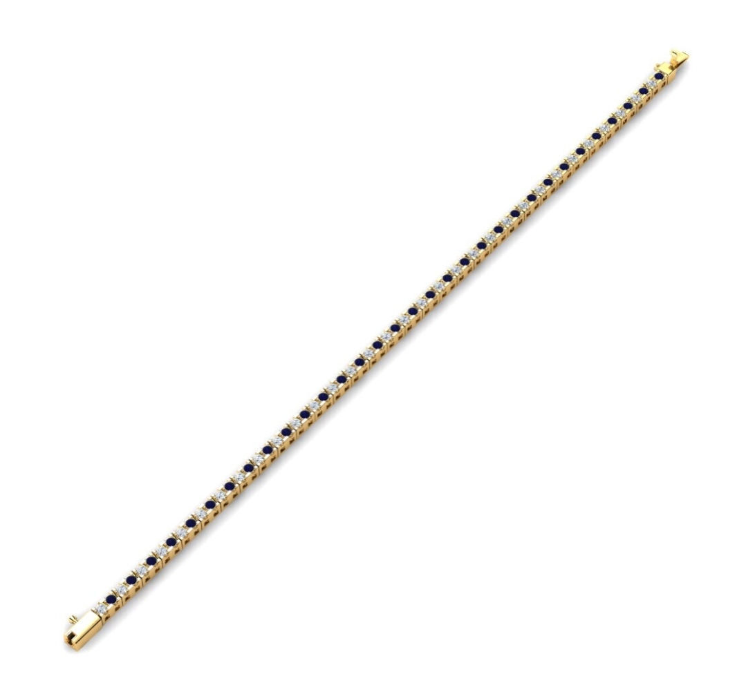 Deze tennisarmband van Louis Bros is vervaardigd uit 14 karaat witgoud (7.12 gr.) en is gezet met 38 briljant geslepen diamanten met een totaalgewicht van 1.25 ct en 38 saffier met een totaalgewicht van 1.76ct .De armband heeft een lengte van 19 cm. En een breedte van 2.16 mm.