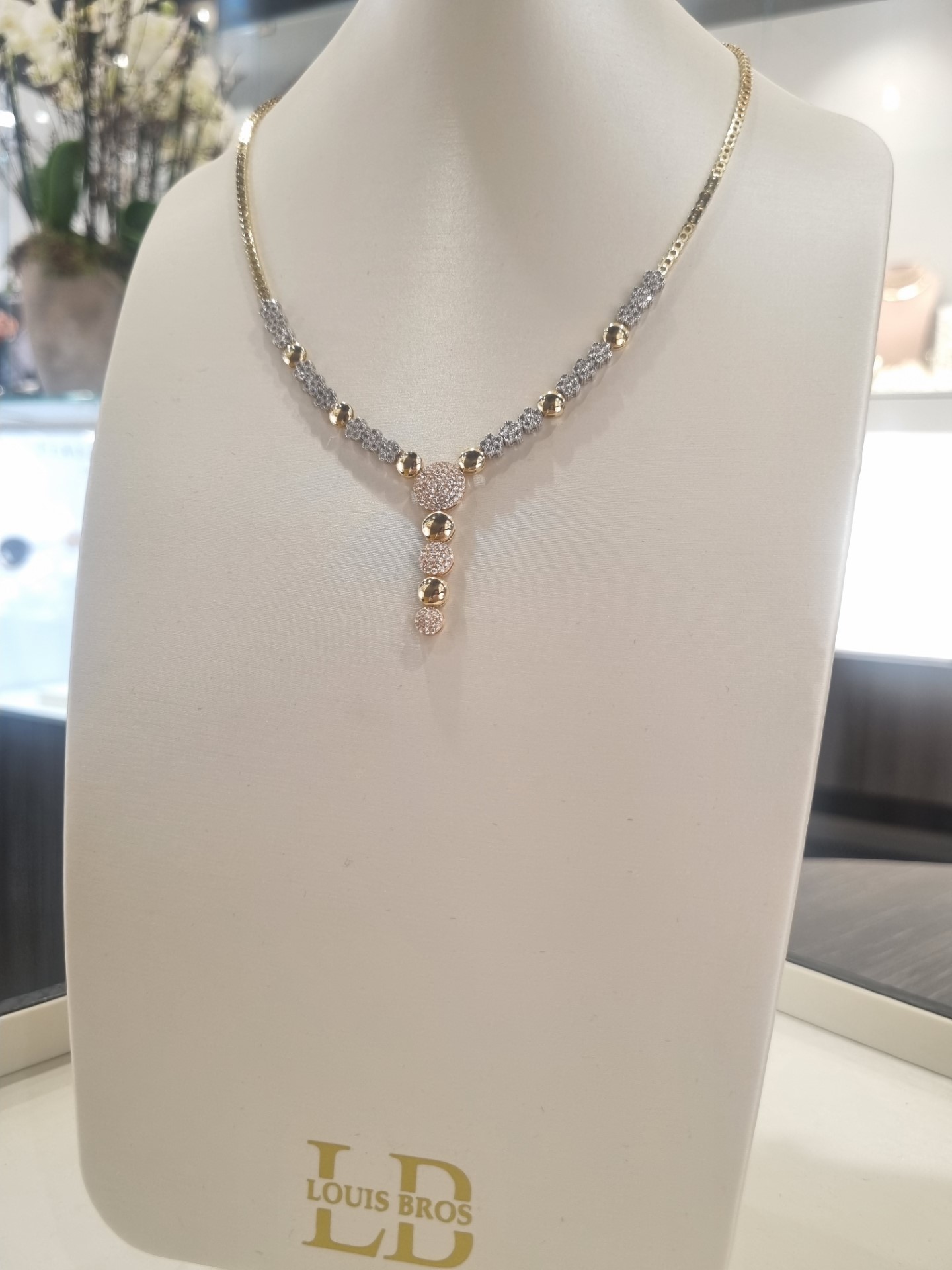 Dit prachtige collier van Louis Bros (14 gr) is een ware eyecatcher en een perfecte toevoeging aan je sieradencollectie. Het collier is gemaakt van 14 karaat tricolor en gezet met schitterende zirkonia stenen. De transparante stenen schitteren prachtig in het licht en geven het collier een luxe uitstraling. Dit collier heeft een lengte van 50cm en een dikte van 1.7 mm en maximale breedte van 4 mm.