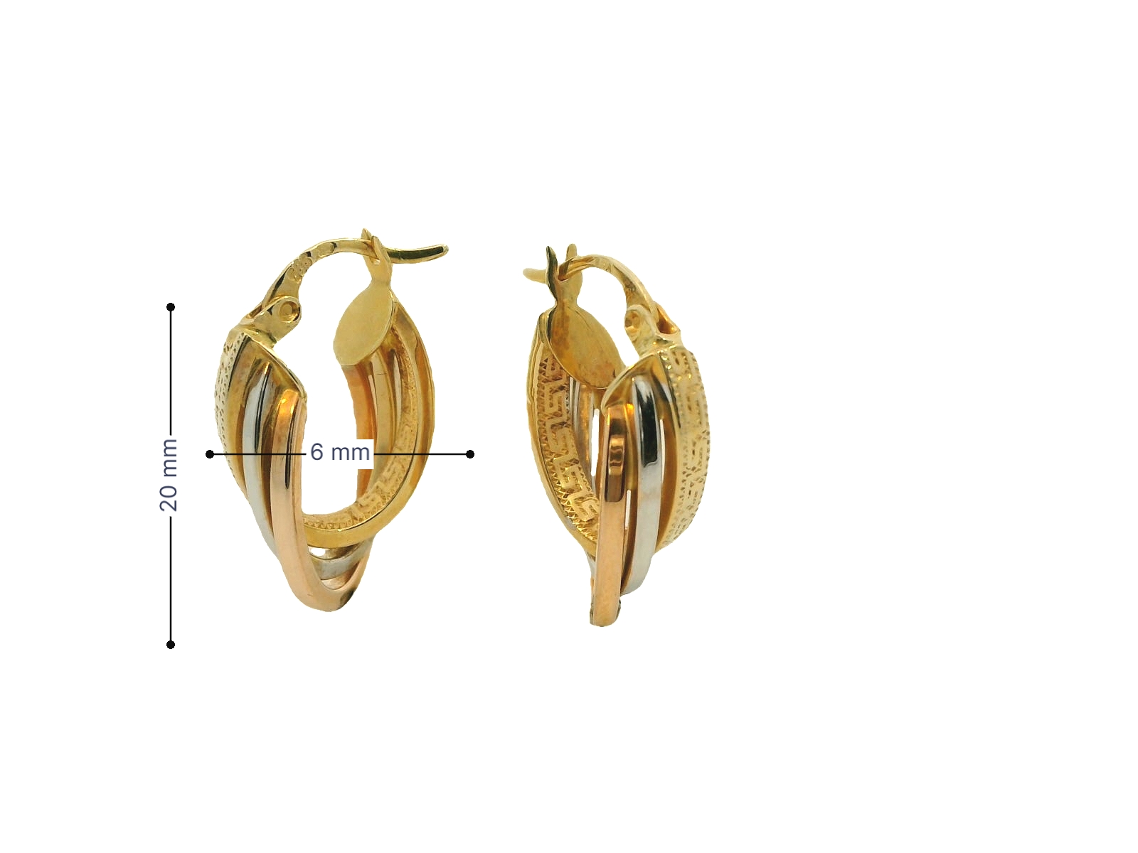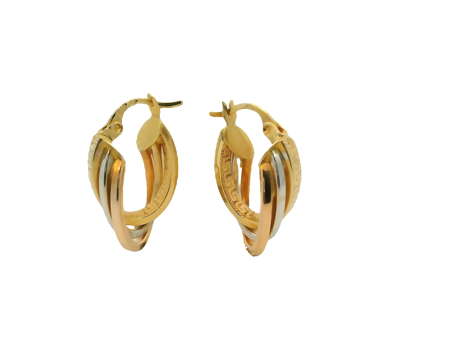 Deze prachtige tricolor gouden oorringen (2.85 gr) in een elegante ovale vorm zijn een ware eyecatcher. Het unieke ontwerp combineert de warme tinten van geel-, rosé- en witgoud, wat zorgt voor een harmonieuze en verfijnde uitstraling. De ovale vorm voegt een moderne twist toe aan het klassieke sieraad, waardoor deze oorringen perfect zijn voor zowel dagelijks gebruik als bijzondere momenten. Een stijlvolle keuze voor wie op zoek is naar een opvallend, maar toch tijdloos accessoire.