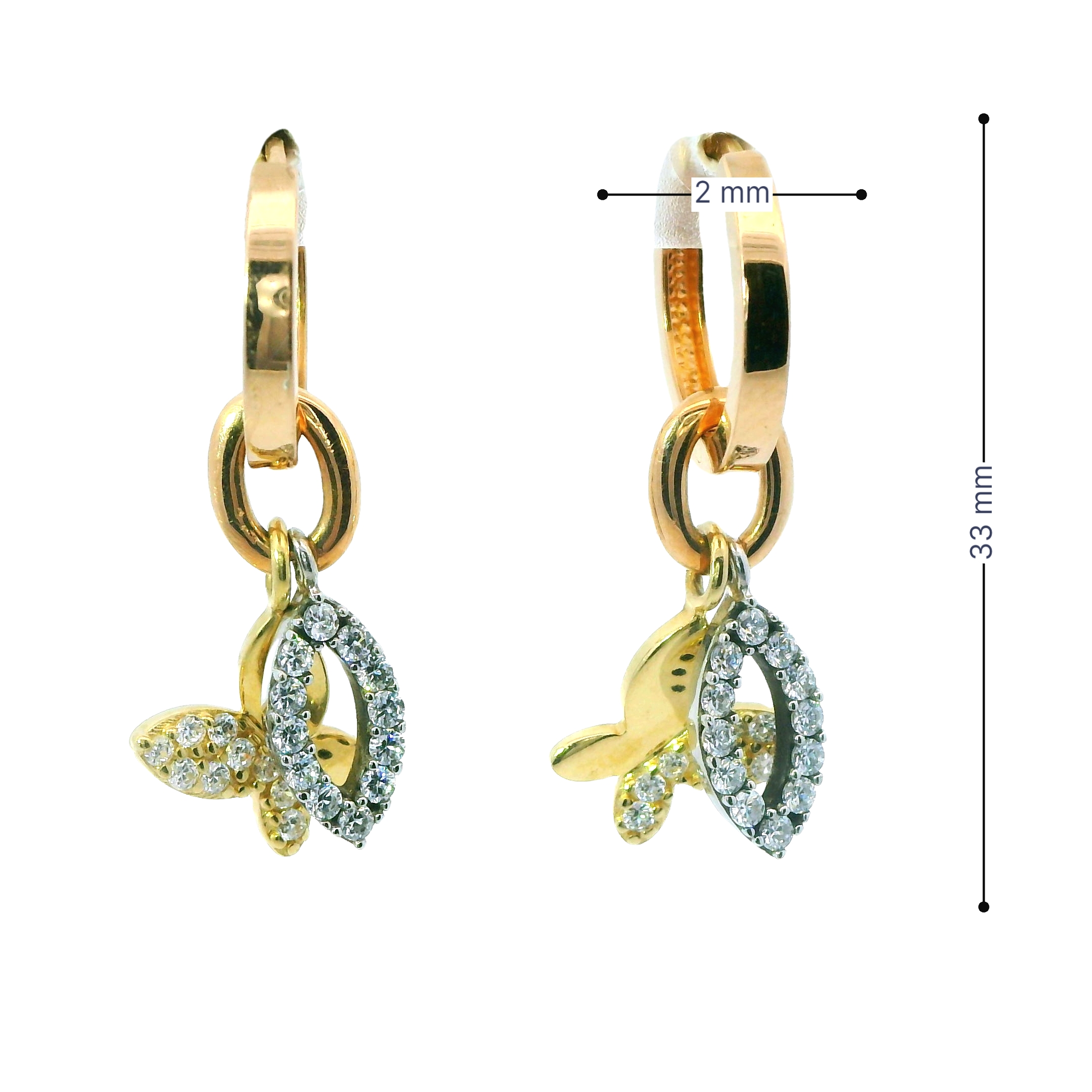 Deze tricolor oorringen combineren de rijke tinten van geel-, wit- en roségoud voor een unieke en stijlvolle uitstraling. De oorringen zijn voorzien van verfijnde hangers die elegant bewegen en zijn afgewerkt met sprankelende zirkonia's, die een vleugje glamour toevoegen. De perfecte balans tussen kleur en schittering maakt deze oorringen een tijdloze keuze, ideaal om elke outfit een extra dosis elegantie te geven.