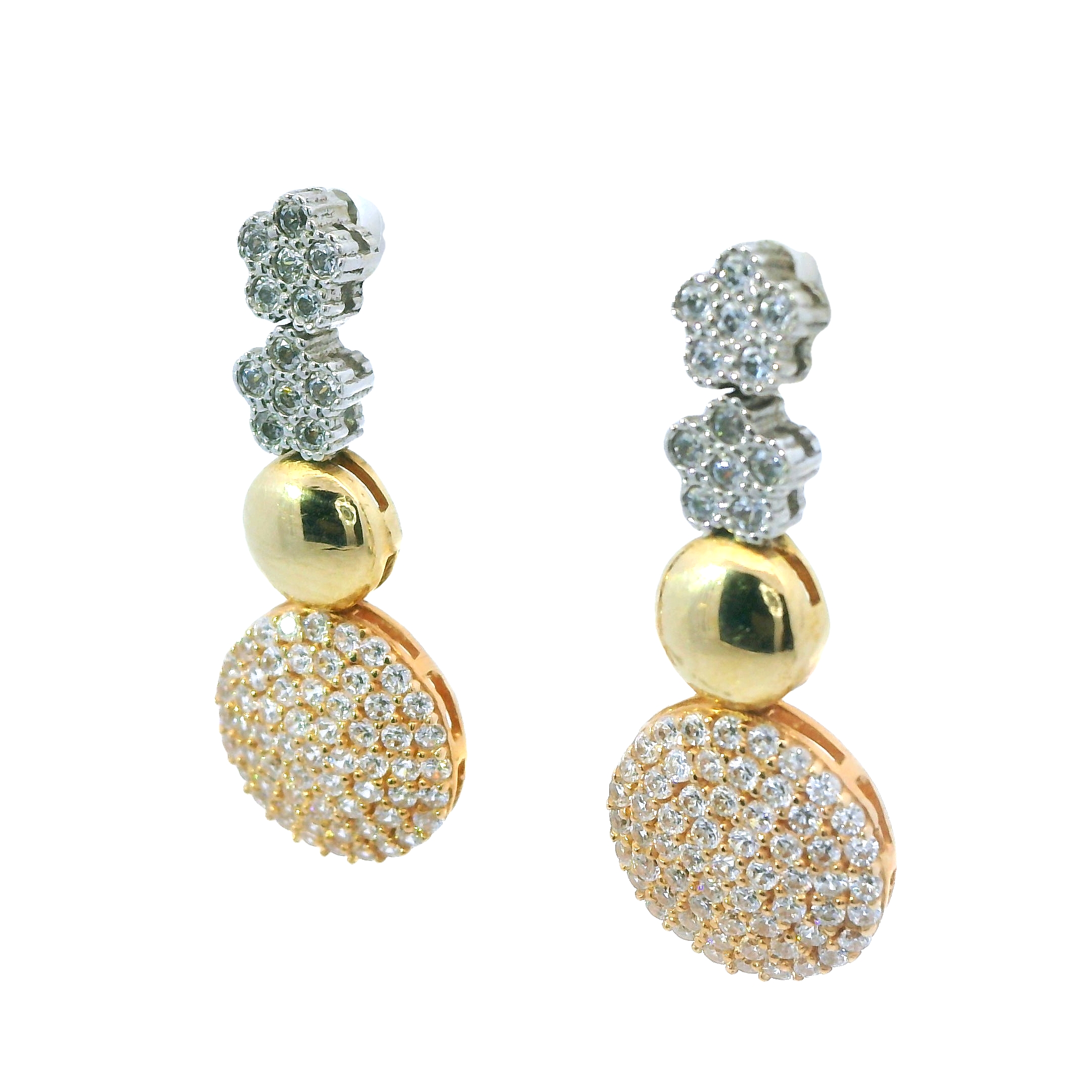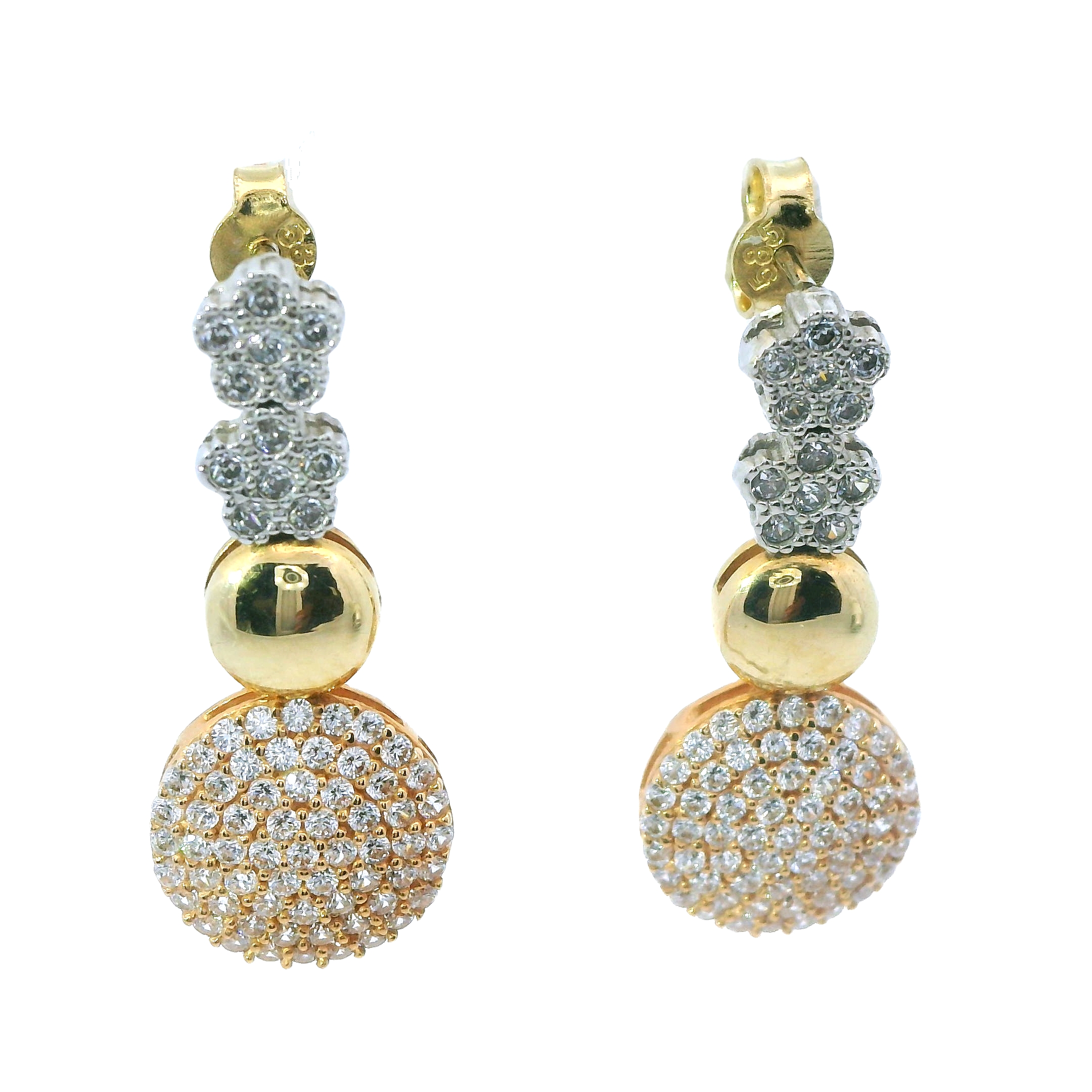 Deze oorstekers van Louis Bros zijn vervaardigd uit 14 karaat tricolor met zirkonia (3.30 gr.).