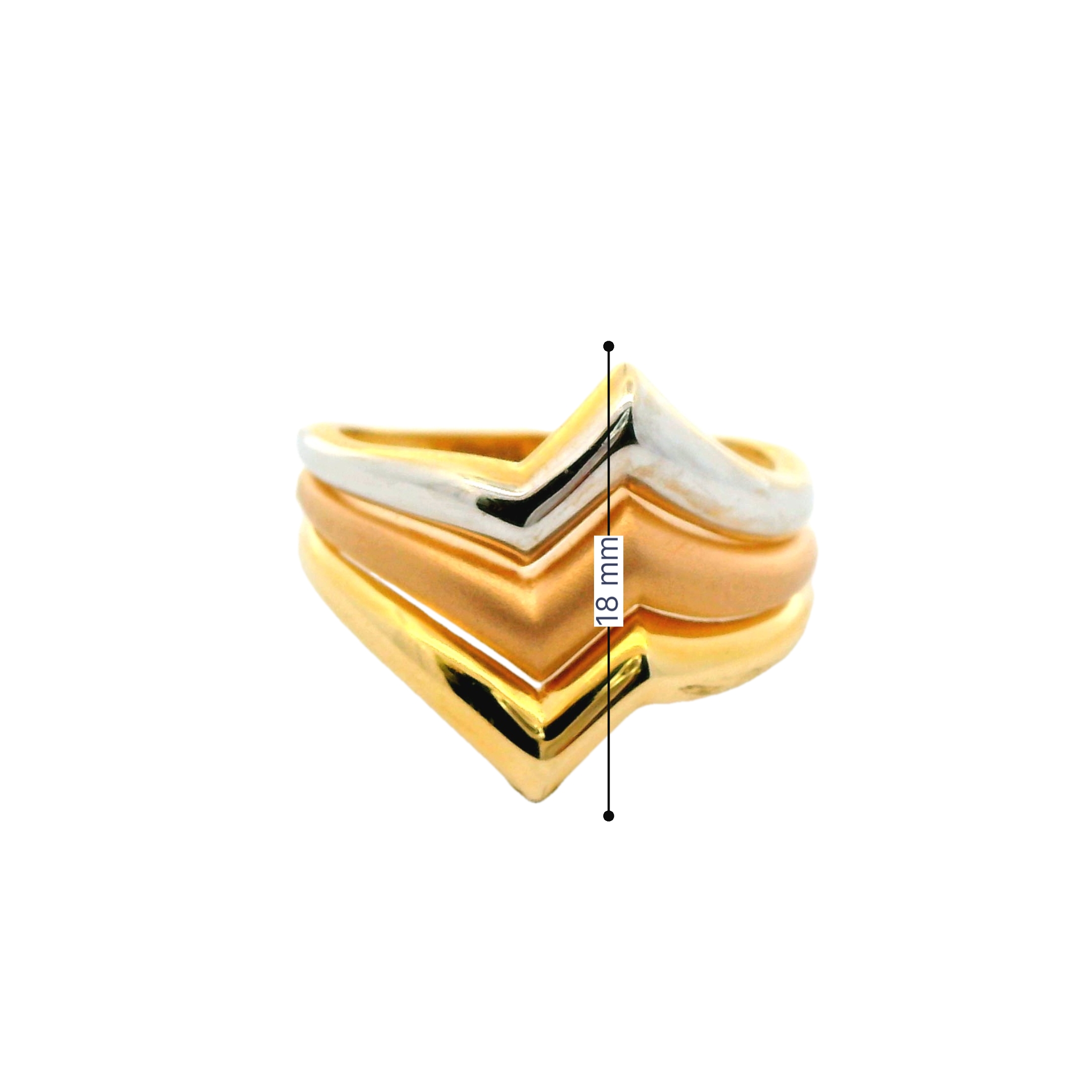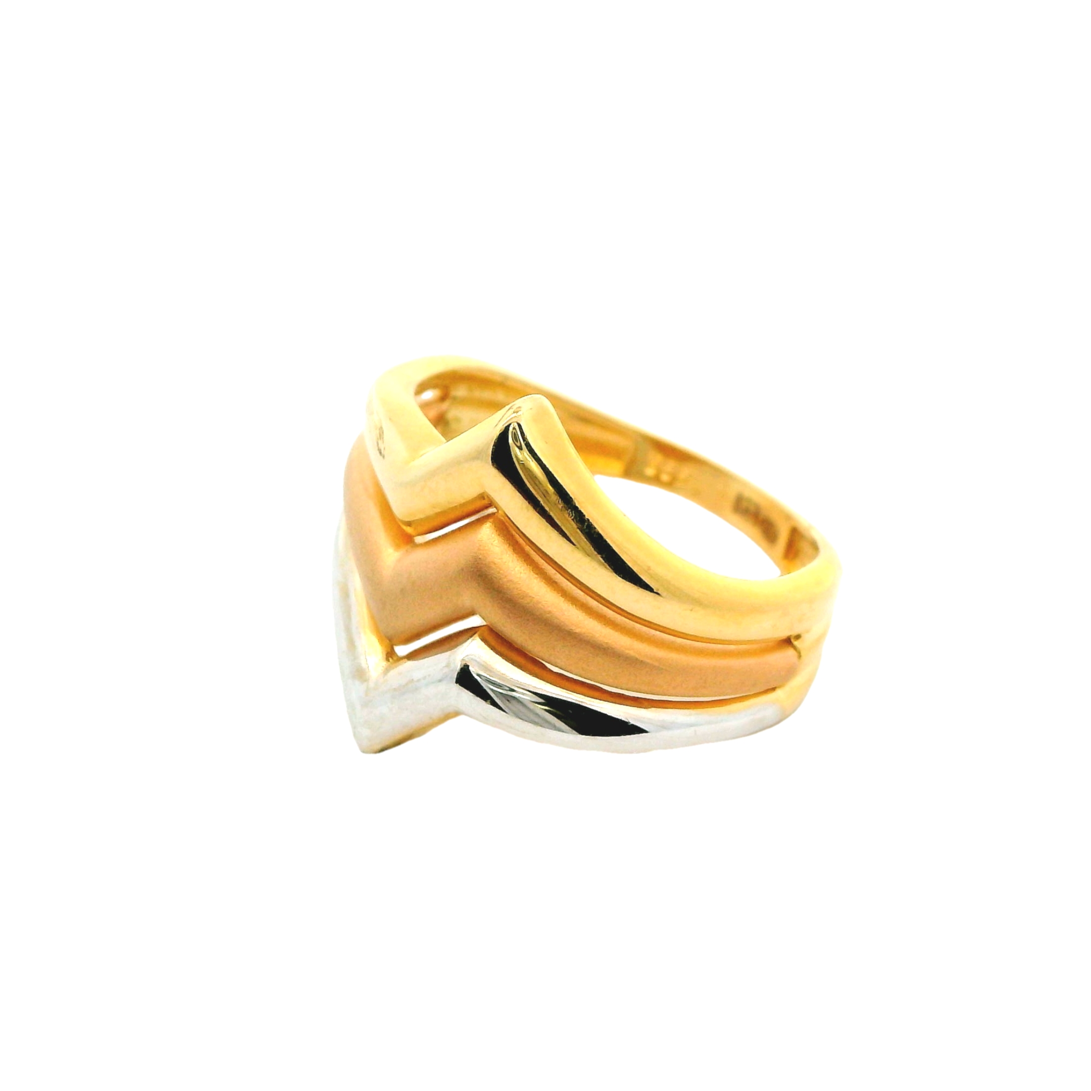 Deze ring met een mooi design is een elegante keuze voor iedereen die houdt van verfijnde sieraden. Deze bijzondere ring combineert drie soorten goud - geel, wit en roségoud - tot een harmonieuze en stijlvolle creatie. Het unieke ontwerp speelt met kleuren en materialen, waardoor de ring een opvallend en tijdloos sieraad wordt. Ideaal voor speciale gelegenheden of als dagelijks accessoire, voegt deze tricolor gouden ring een vleugje luxe toe aan elke outfit.