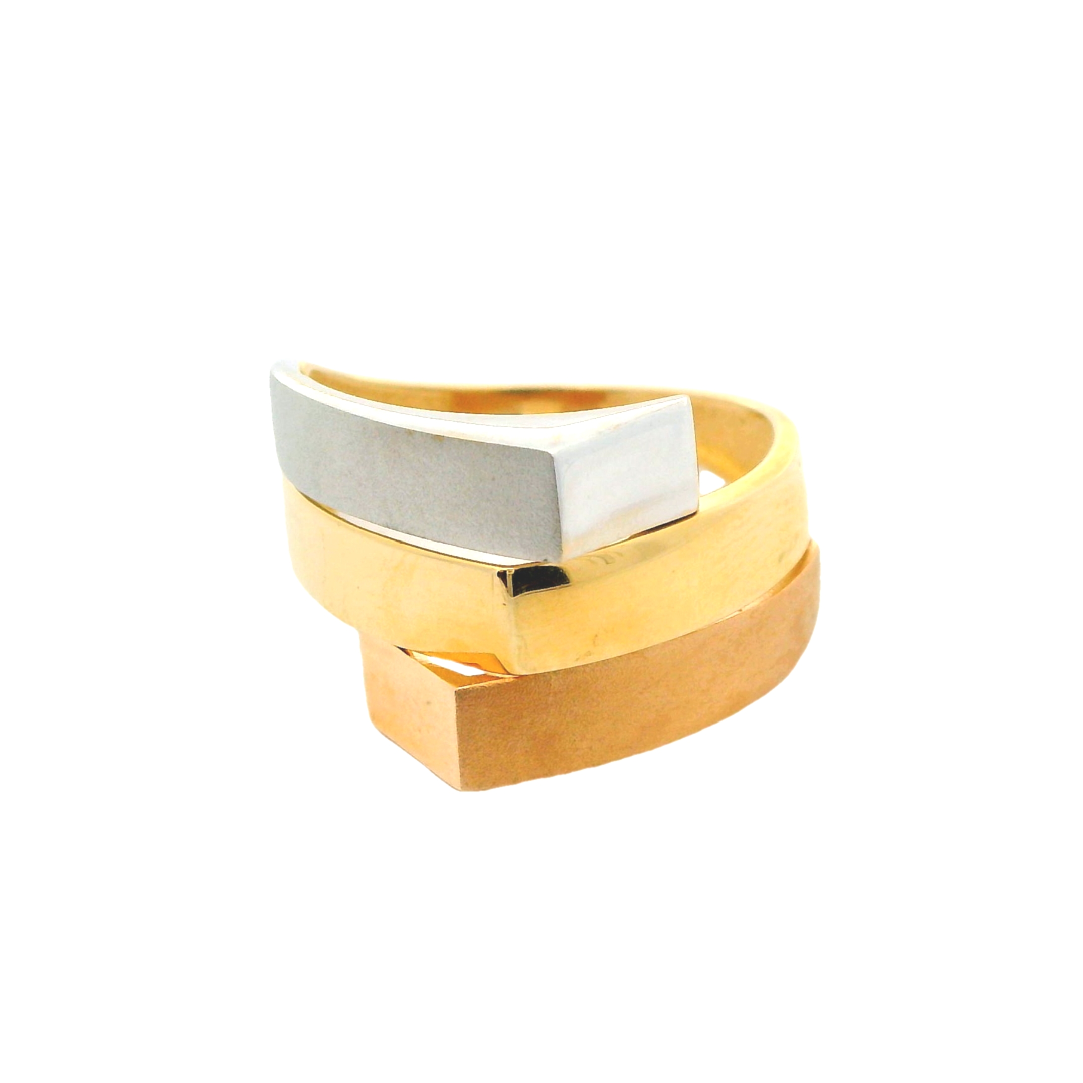 Deze ring met een mooi design is een elegante keuze voor iedereen die houdt van verfijnde sieraden. Deze bijzondere ring combineert drie soorten goud - geel, wit en roségoud - tot een harmonieuze en stijlvolle creatie. Het unieke ontwerp speelt met kleuren en materialen, waardoor de ring een opvallend en tijdloos sieraad wordt. Ideaal voor speciale gelegenheden of als dagelijks accessoire, voegt deze tricolor gouden ring een vleugje luxe toe aan elke outfit.