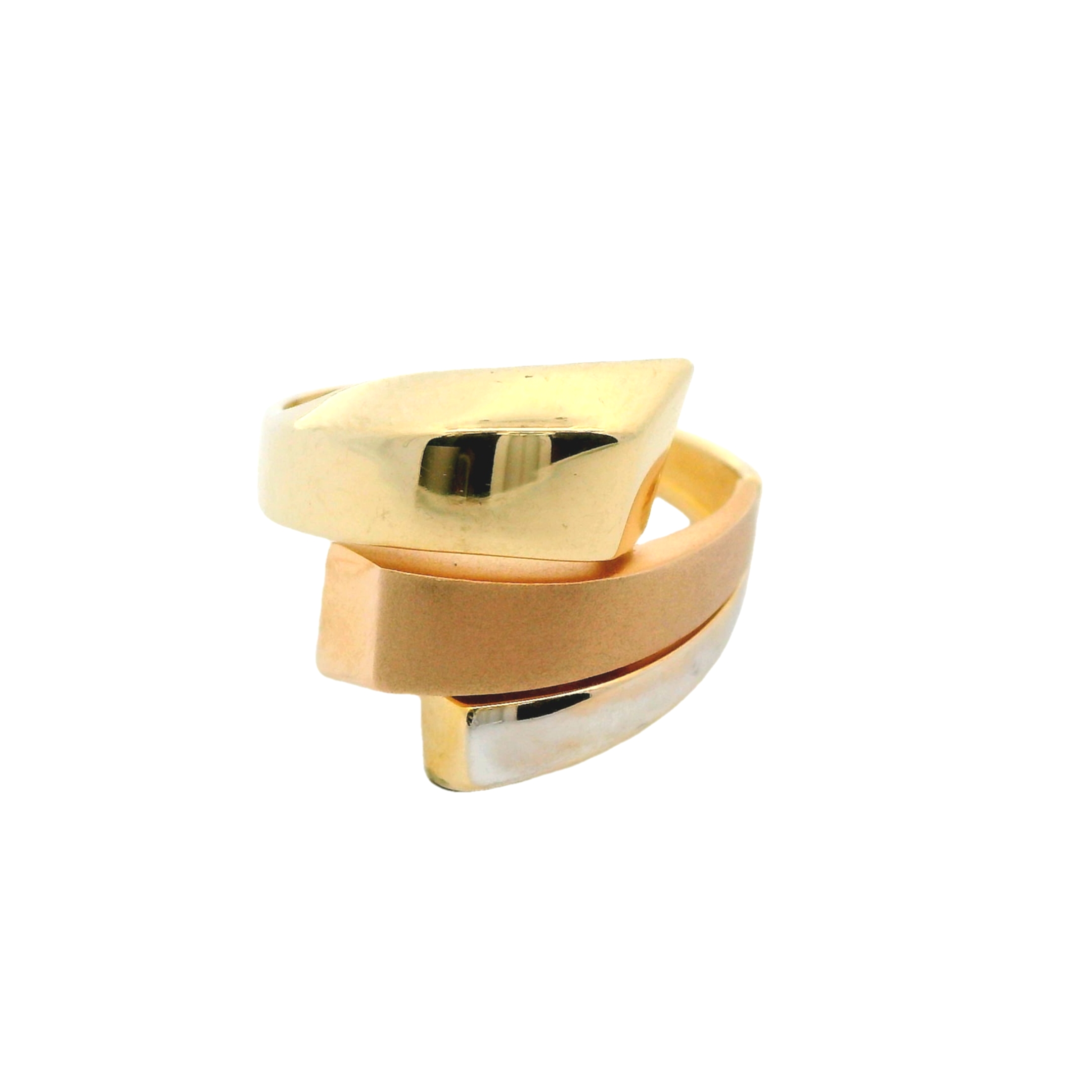 Deze ring van Louis Bros is vervaardigd uit 14 karaat tricolor (4 gr.).