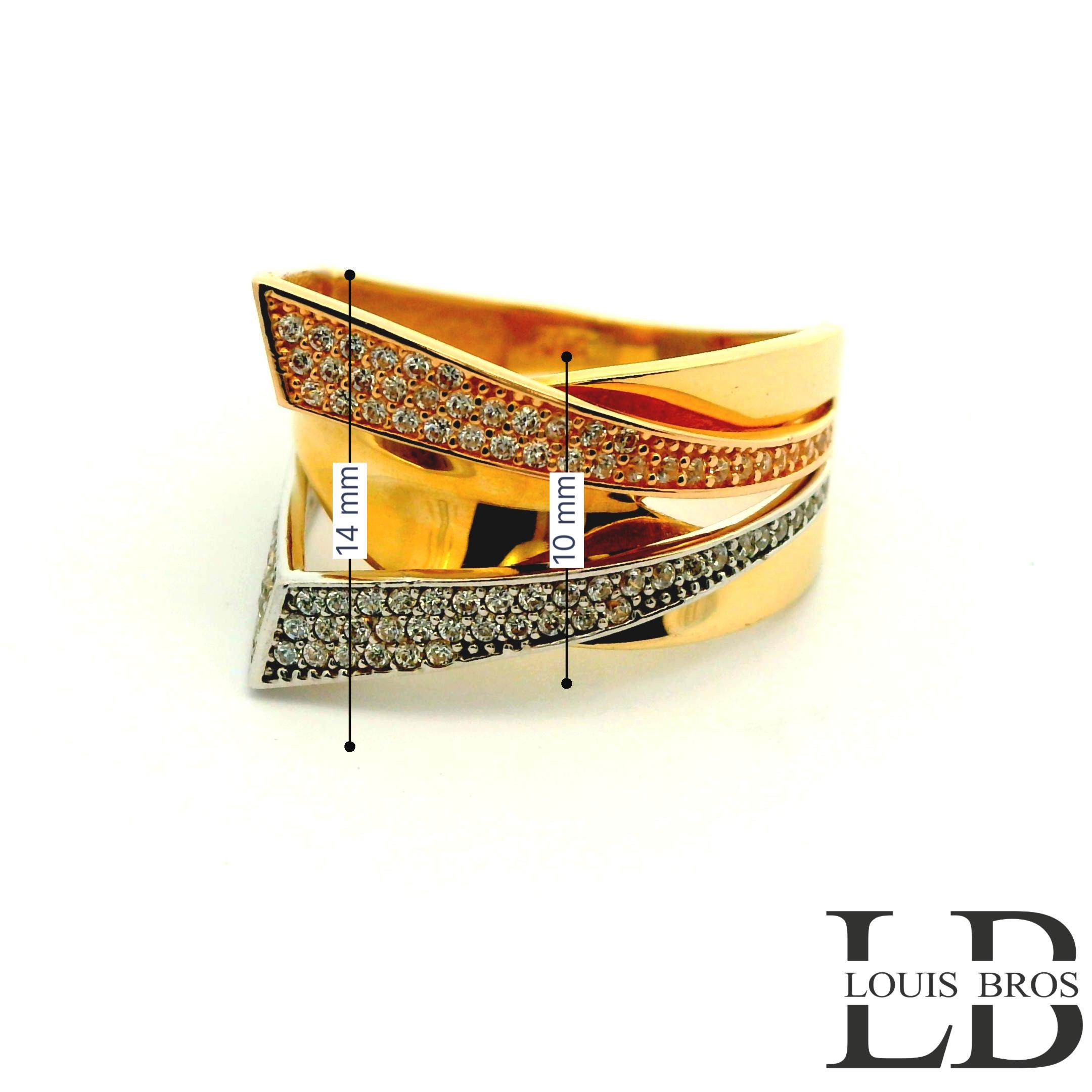 Deze schitterende ring is vervaardigd uit 14 karaat tricolor goud (4.68 gr), waarbij geel-, wit- en rosegoud op elegante wijze samenkomen. Het speelse kleurenspel geeft de ring een unieke en luxe uitstraling. De ring is verder verrijkt met fonkelende zirkonia’s, die zorgen voor een sprankelende schittering bij iedere beweging.