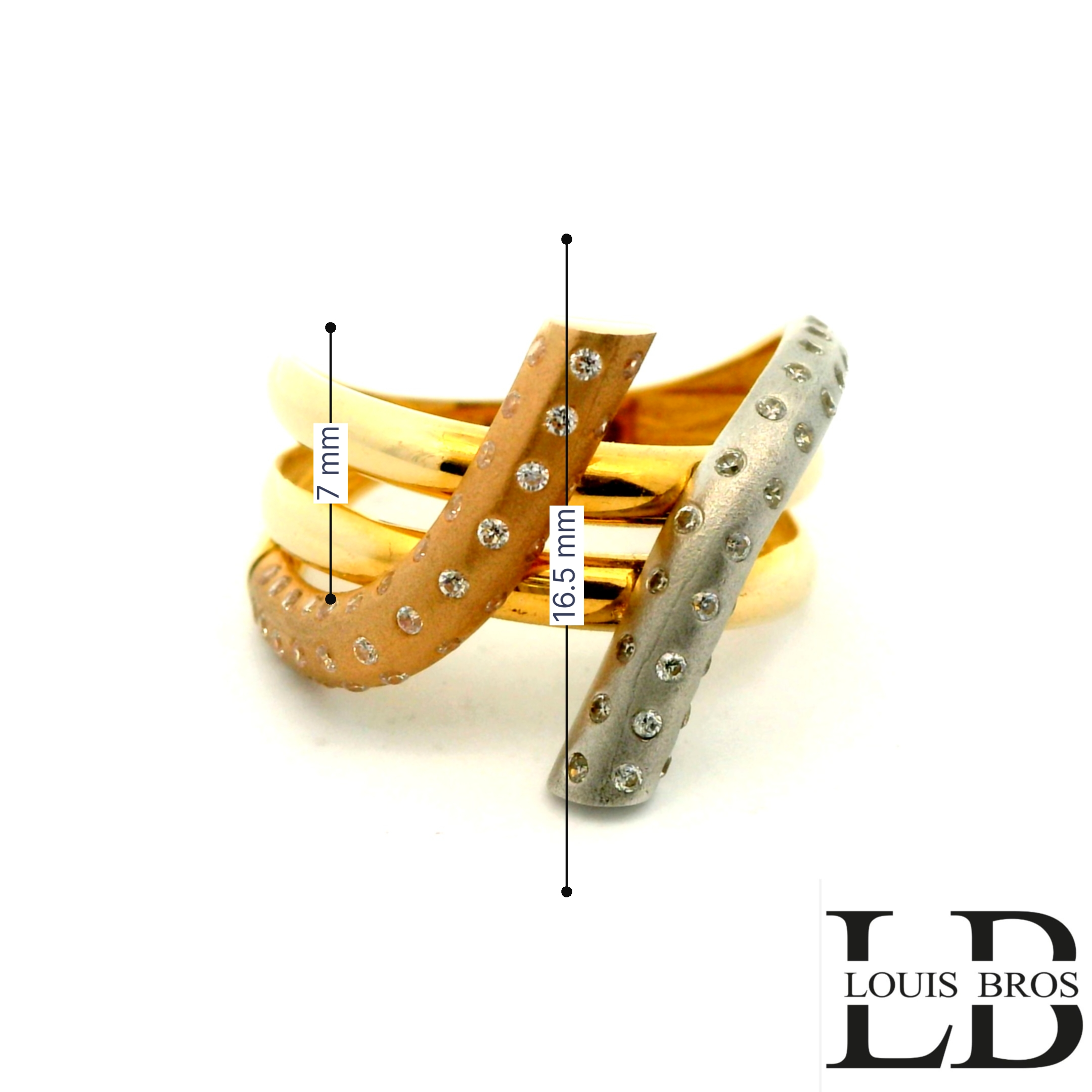 Een tijdloos en stijlvol sieraad dat perfect is voor dagelijks gebruik, maar ook bijzonder mooi bij feestelijke gelegenheden. Dankzij de combinatie van drie goudkleuren laat de ring zich makkelijk combineren met andere sieraden.